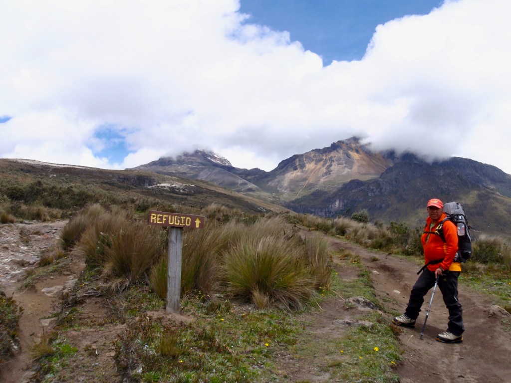 We had booked our mountaineering on line back home before we arrived through Andes Climbing so everything was set up and ready to go when we arrived. The following day we took a $2.50 bus ride to a town one hour south called Machachi. Not all that much in this small town but super friendly atmosphere, unique restaurants and a street vendor that sells some strange ice cream cone looking whipped meringue thing for a dollar. The following day our adventure started; hiking and altitude training. Our guide, Patricio from Andes Climbing, picked us up at 7:00 and one hour later after a muddy and sloppy drive we started our hike at 3600m ASL into the hills. After an exhausting 4 hours through fog, clouds, rain and rocks we summited El Corazon at 4571m. A quick hop, skip and a jump we were back at the vehicle into town.