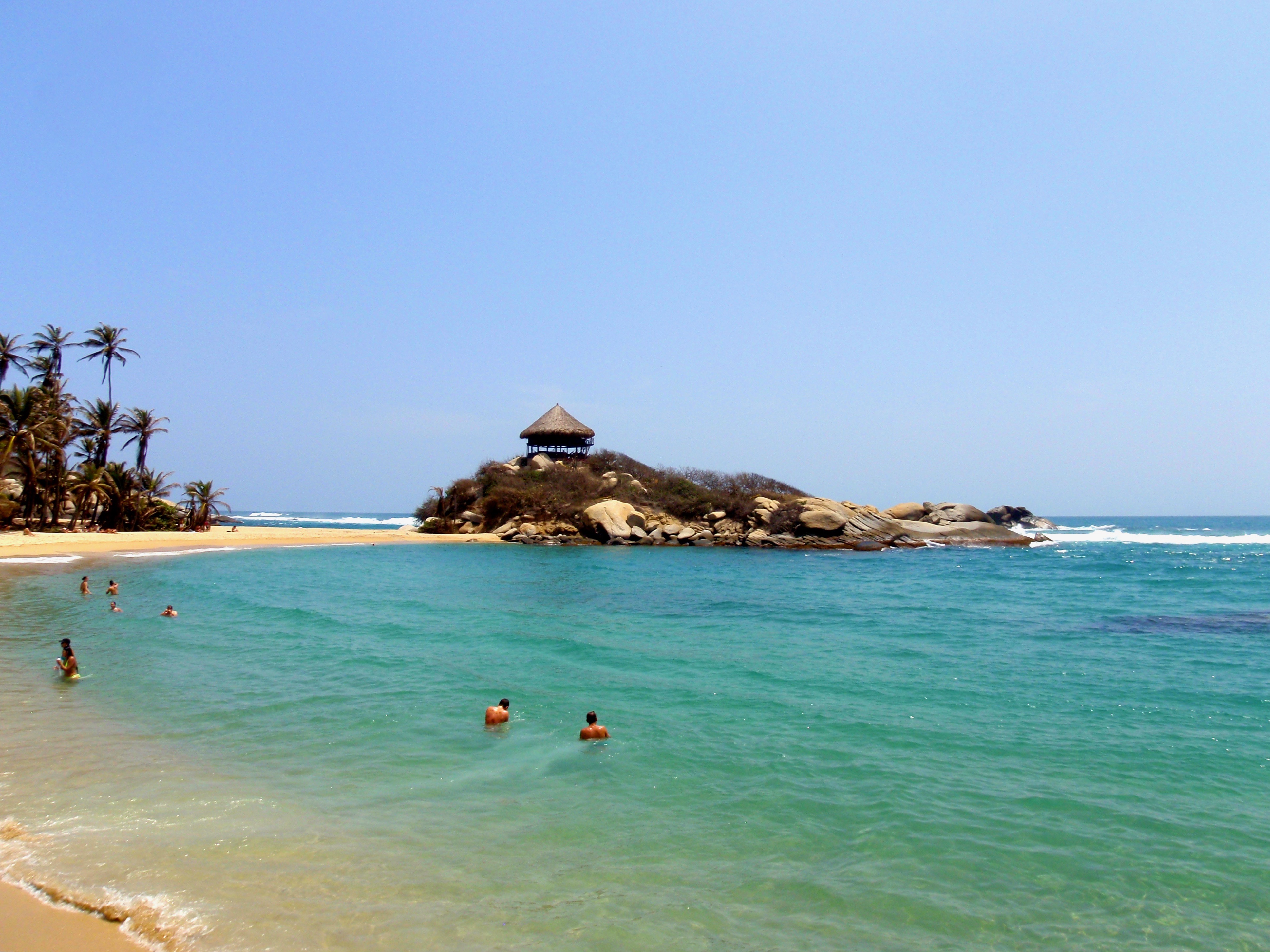 With much hesitation we decided we would check out Tayrona National Park. It was $39,500 COP each to enter and you could stay as long as you wanted. This was truly the gem of Colombia, great choice, a must go experience. Blue waters, palm trees, and large boulders. We hiked into Arrecifes village, checked our bags into the lockers and reserved our place to stay. Two of the twenty hammocks in a mosquito netted wooden frame were $12,000 COP per person per night. They had showers, a great little restaurant and a group of hissing ducks that guarded the bathrooms. If you have ever slept in a hammock for a full night you will know that not much sleep was had. Two nights of that made for us being very tired and sore. Our days were spent hiking to various beaches like Cabo San Juan. This was a really busy beach that boat tours would bring day trips to, but still an amazing couple of days in the sun. Our final morning exit hike out was delayed due to a bird that stood on Shannon’s backpack and refused to get off, then decided to leave here a little present at the last minute, ha ha.
