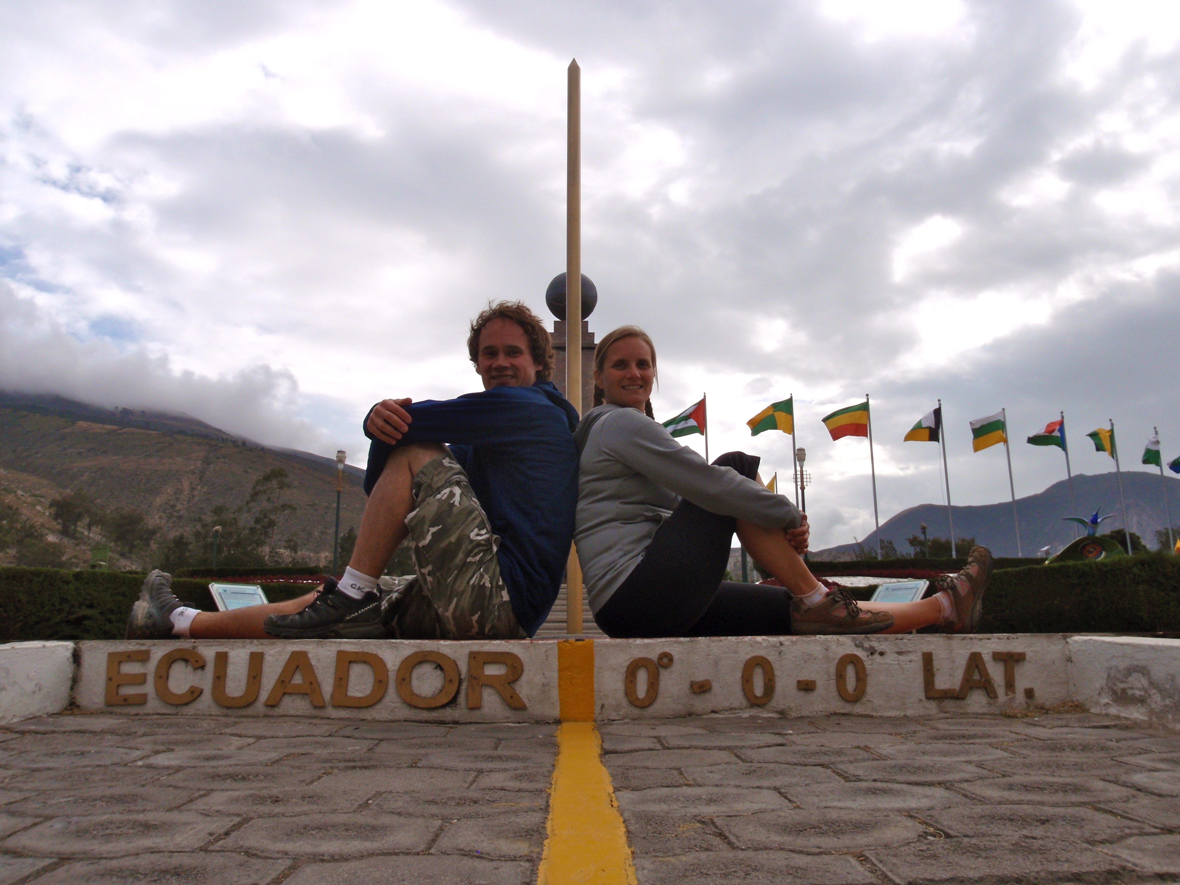 We traveled a couple hours from Salento to Armenia on the bus and got in a taxi. We gave him a piece of paper with the address of the hostel we wanted to go to but he said no. He said “no bad, bad, bad”. Instead he just drove us away and took us to Confortel Hotel and even brought our bags in and spoke to the front desk. It was a good choice. Headed out to walk around and do a bit of shopping. The following day we were up early and at Nascar speeds we were at the airport for our flight to Bogota. We got on the plane and taxied down the runway when the plane suddenly stopped. We waited around and watched as it looked like they were jumping the plane to get it going again. Arrived in Bogota and had only a few hours to wait around before our connecting flight back to Quito, Ecuador. A free shuttle took us to the Quito Airport Suites which was really close to the airport (the Quito airport is quite a distance out of town). We met a nice couple (Ron and Maegan) and the following day headed out for the final day of our 6 week holiday with them to Mitad del Mundo (the Equator).