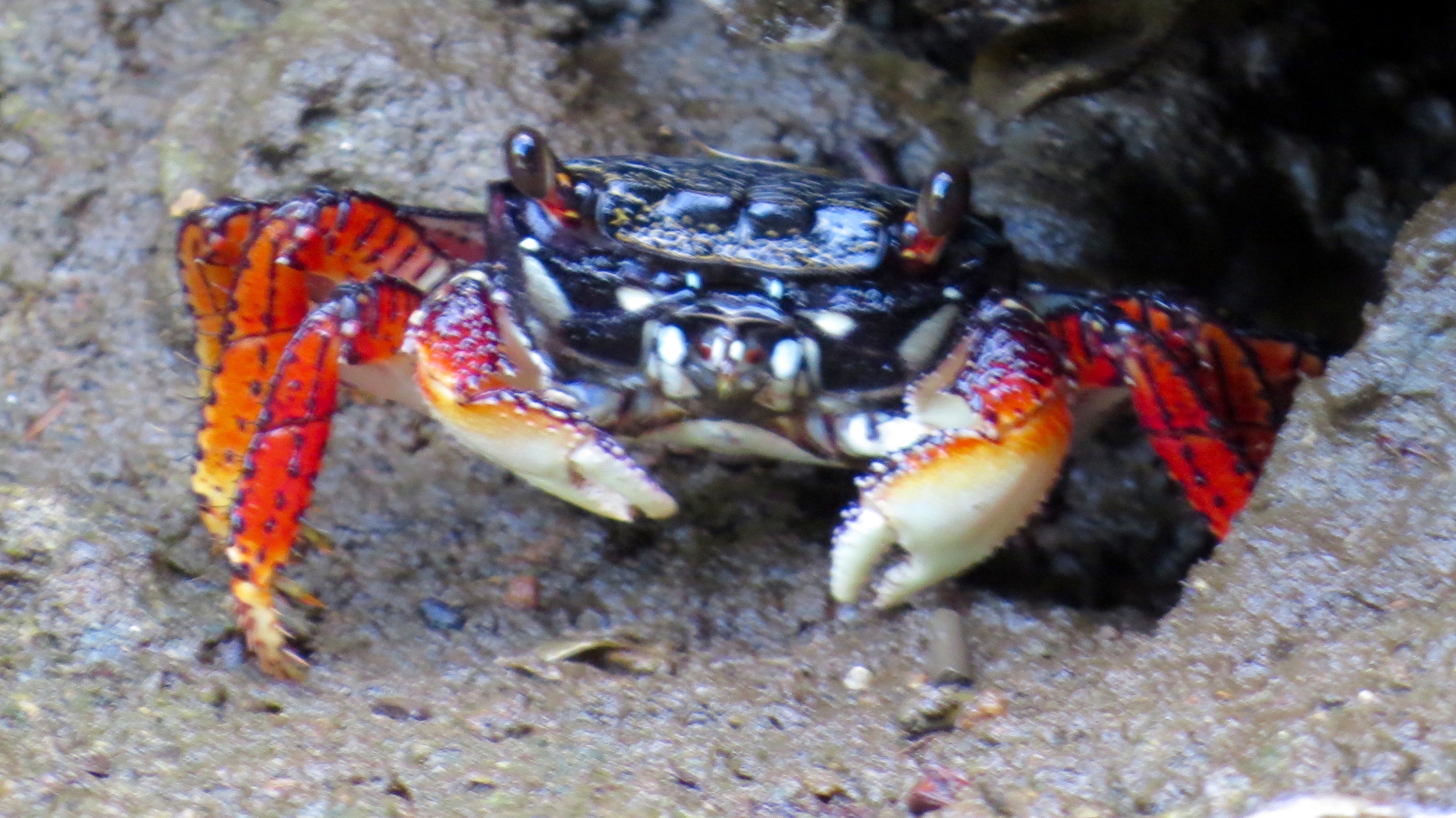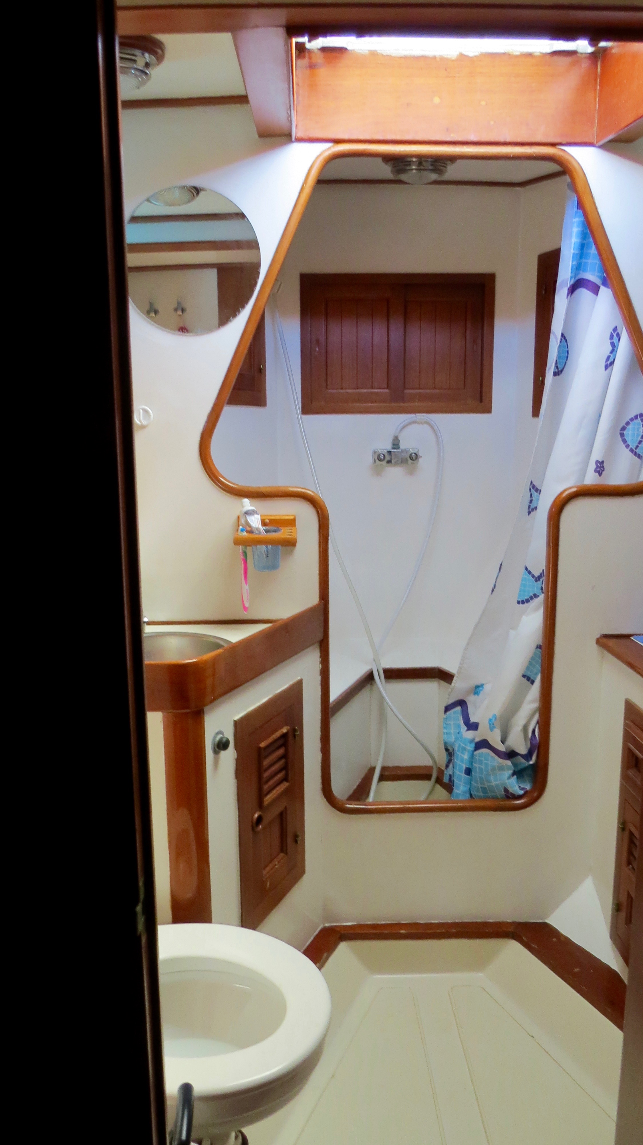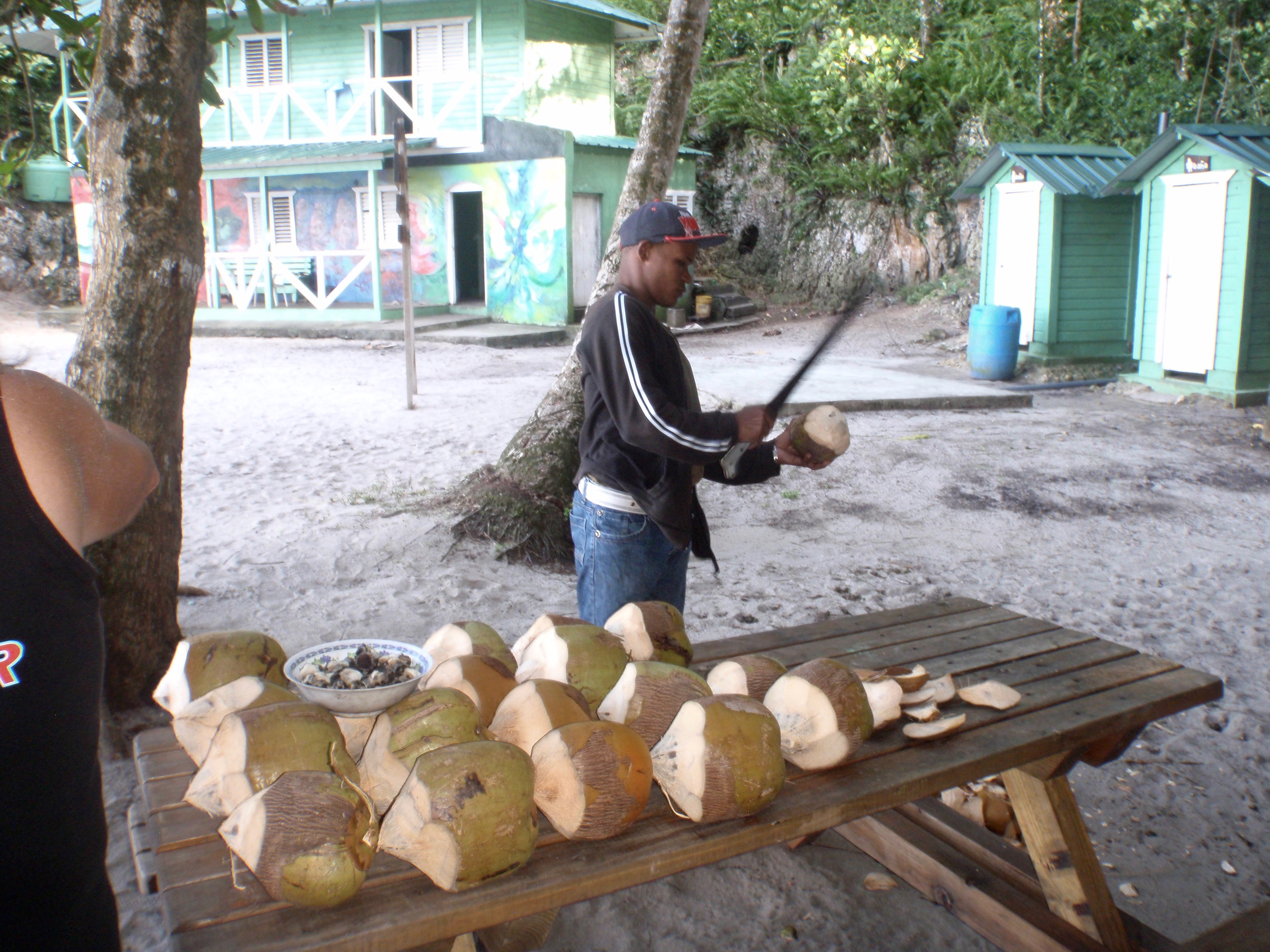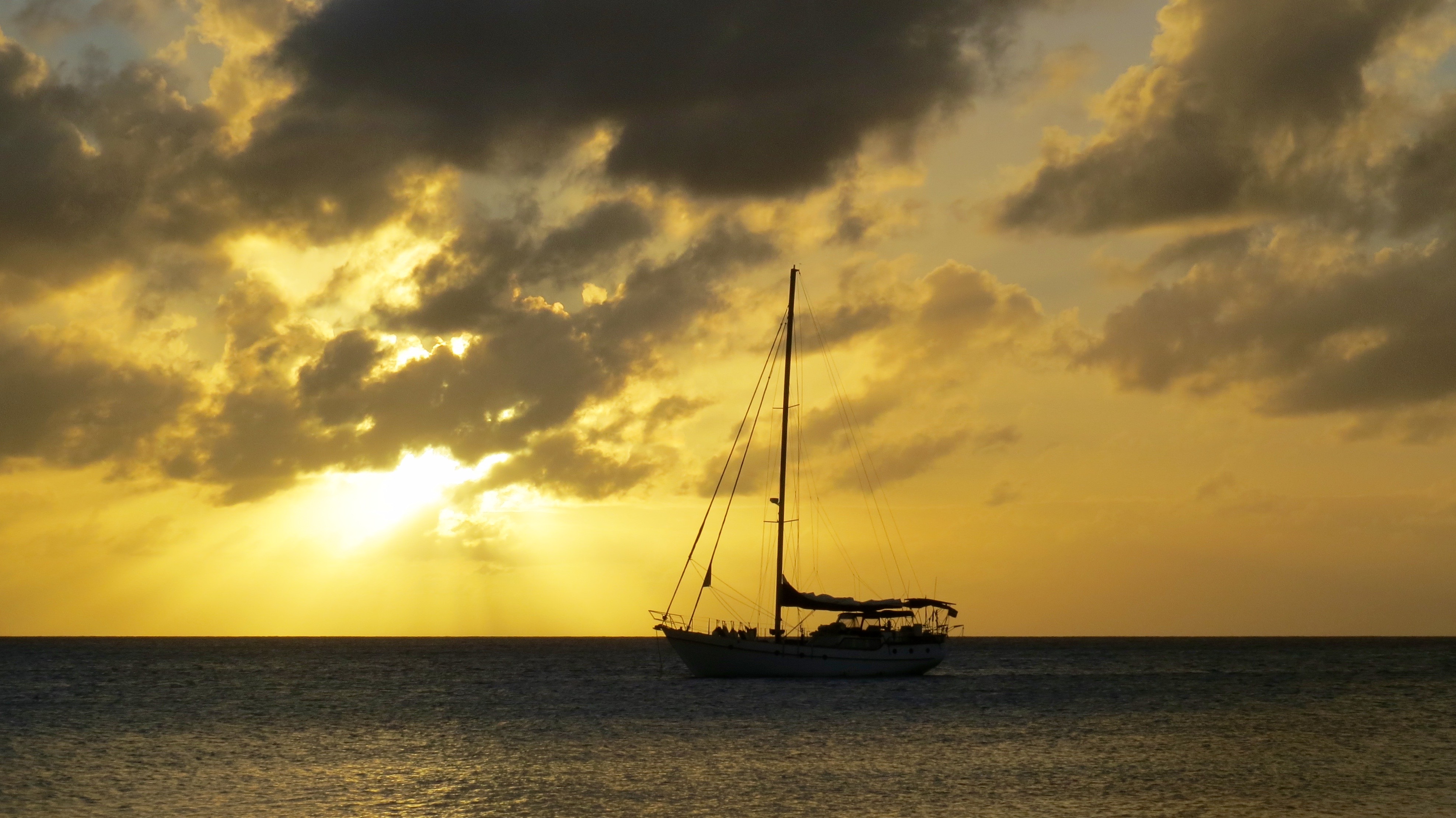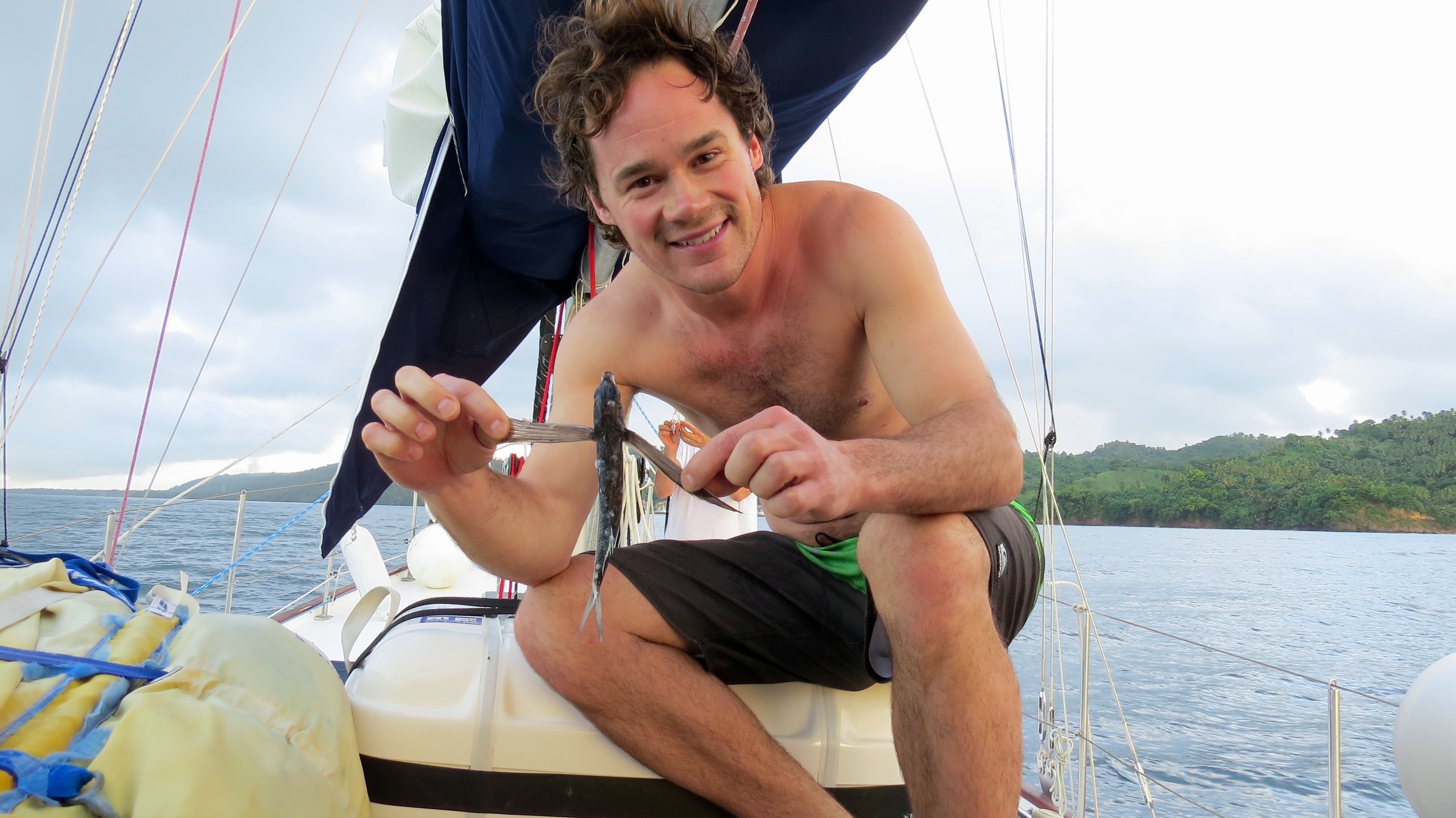 Next day we set sail west again to Aguadilla a further 8 hours by boat. Again, Shannon was still feeling sick. December 19, one of our big sails, we headed from Puerto Rico across the open ocean to Dominican Republic, a 23 hour sail. I felt great, Shannon was ill. Eric threw in a fishing line and caught a 36″ Dorado and then just after that I caught my first ever fish, a 30″ Dorado. Lots of food for us to eat now. During the big crossings everyone took turns doing night watch. We just had make sure we were going the right direction, no boats were in our way, and that the GPS and auto pilot were still doing their job properly. Shannon was exempt from night watch as her stomach was not well. She went to bed and woke up just before we pulled into Samana Bay, Dominican Republic. Throughout the night we also managed to catch about 20 flying fish on the boat deck as they would fly on board and smash into the side. The weather was very cooperative for us as it rained off and on the last few days but temperature was very warm. We pulled into the Puerto Bahia Resort Marina, a 5-star resort, where after a couple short hours after immigration and customs made there rounds we were aloud on solid ground. We got the boat all hooked up to fresh water and power, cleaned all the saltwater off the vessel, gave the insides a wipe down then off to explore the resort. We were granted full access to all the facilities while staying in the marina. Very luxurious with hot showers, infinity pool, fitness centre and even a Christmas tree. It would rain off and on so we were constantly running back and forth to the boat to open and close the roof hatches. Shannon and I found ourselves regularly enjoying the sunset from the pool then relaxing on the boat deck gazing to the sky and watch the stars. We flagged down a rickshaw in the streets and headed into Samana to buy food and supplies for the boat, 45 pesos = $1 US. We spent 3 nights at the marina enjoying life by the pool and relaxing waiting for a sea storms to pass. Ron and I were often tinkering with odd jobs and fixing the boat. The next day we sailed 2 hours across the bay to anchor for a few nights in the National Park, Los Haitises. There was lots to explore here. Eric, Pnina, Shannon, and I jumped in the dingy and went to find a place to get on shore. We came across a small dock and there was one little shack with someone selling coconuts. We walked down some trails within the park where we came across some caves with more paintings and carvings etched on the walls. Things were a bit challenging as we were mostly stumbling around in the dark though. A flash light would have been ideal in this situation really. After a couple hours we puttered back to the sailboat where Jo and Ron made us umbrella rum drinks with the coconuts we brought back. The evening consisted of a swim, a lay in the hammock, a tasty meal and then we watched the movie Dead Calm under the stars before bed. In the morning we took the dingy for a couple hours to some different caves and brought lights this time so we could see where we were going. Once back on the boat we saw loads of tourists passing by us on catamarans and large speedboats off to see the caves etc which we had already explored by ourselves. I was having quite the trouble sleeping at night as it was super hot and humid. I was stuck in a circle of opening and closing the hatch as the heat would build with the hatch closed and the rain falling down on my face when the hatch was open.