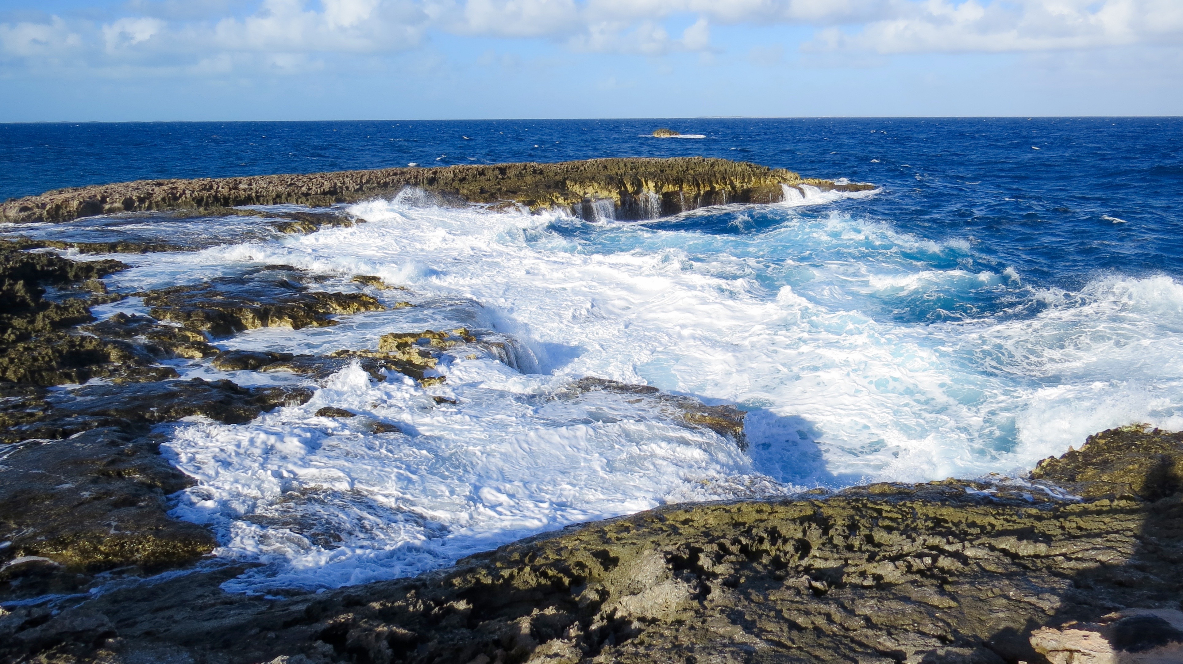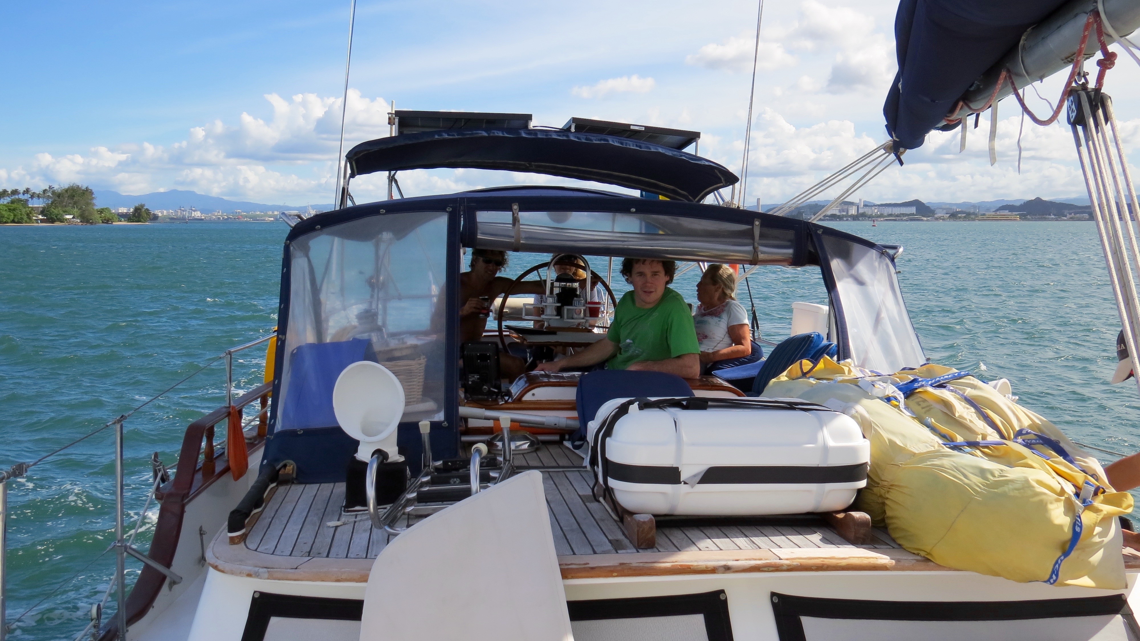 December 28, the day has finally come to sail. Jo had given Shannon some sea sickness pills to take and we were hoping for the best as this was our longest sail yet (36 hours). We motored out of the marina then sails up and we were off. About 2 hours into the sail once we hit open water the swells gained in size. The swells were now about 4m high and Shannon was not feeling well at all. While she was sea sick barfing into a plastic bag we heard yelling beside the boat. We looked over and there was a local man standing in a small row boat with a fishing net line out. We had nearly smashed into him. We were very startled as we were a few miles off shore and there seemed to be a lot on the go at this moment. We then noticed there were 2 other guys swimming in the water around us. We are still not sure if they were in the boat and jumped as they saw us coming or not but needless to say, a close call for them and I don’t think that anyone got hurt. On a more positive note, Shannon felt much better after barfing. She could now eat a bit and make the most of the day sailing then headed to bed down in Ron and Jo’s bed for the night. Ron and I stayed up top through the darkness. I ventured below deck in the morning to give Shannon a snuggle and tell her we were almost to Grand Turk.