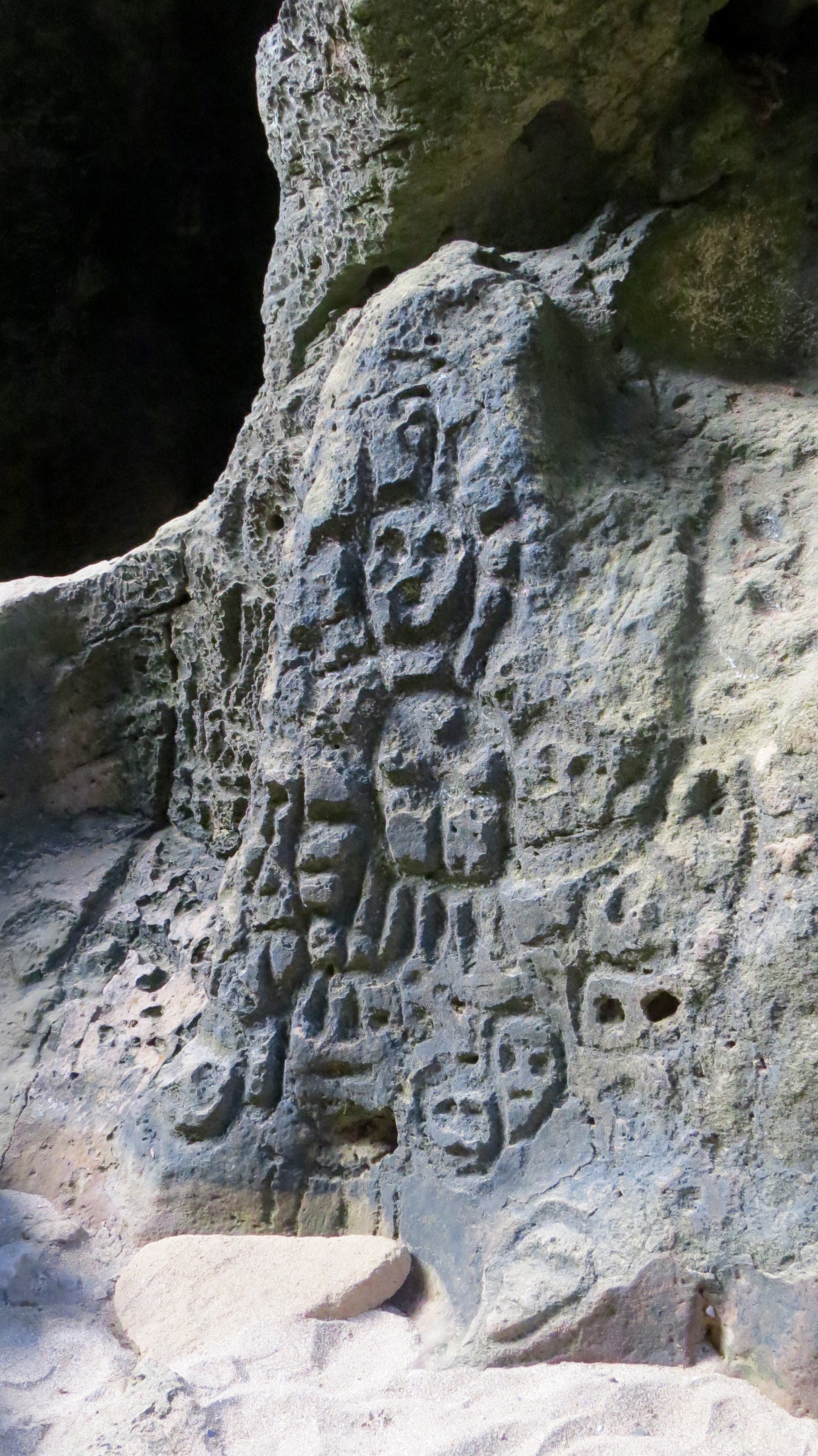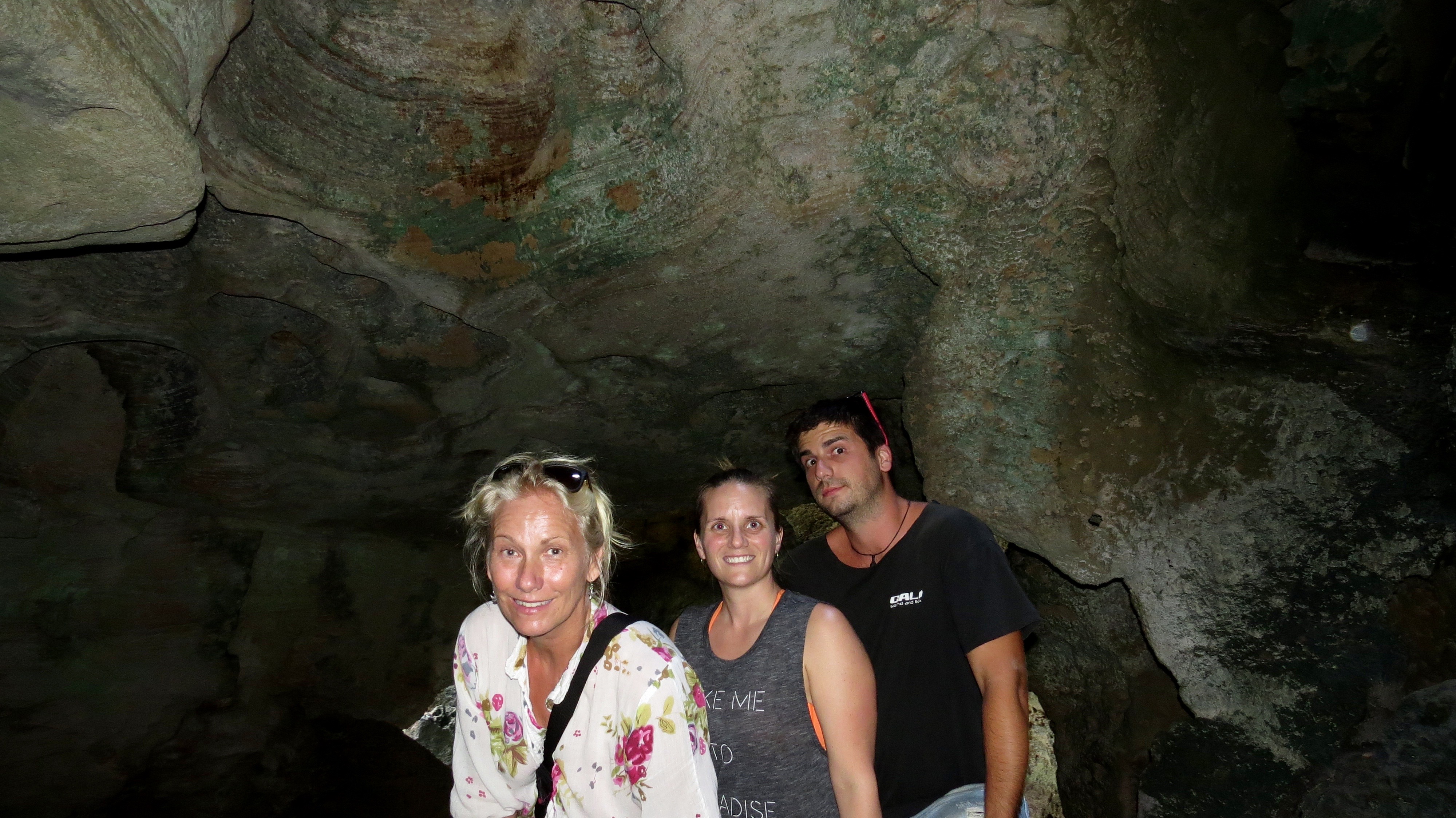 Everything was set up via email and once we arrived in San Juan we no longer had any means of contacting Ron and Jo if we had issues finding them. They instructed us to meet them at the Club Nautico harbor, so once off the plane we took a taxi there. Turns out this is a posh resort that you must be a member to enter. So we walked a little ways carrying our cumbersome duffle bag across a bridge to another dock and hoped we would be able to find them. Sure enough Ron and Jo pulled up in a little dingy and away we went to Atraxia. This is where we also meet the two other crew members, Eric and Pnina. Ron went over safety rules of the boat and for the next 3 weeks this was our new family. We zipped back to San Juan and explored the old town with cobblestone streets and pastel coloured buildings, had some dinner and hopped back onto the boat for the night. We are off in the morning heading west to the other side of the island, a town called Arecibo. First day sailing and Shannon was a bit rough, sea sickness was setting in. She was thinking this could be a long trip feeling this way. She was totally fine when the sailboat was not moving though, so that was a plus. We got to our destination for the night and dropped anchor, jumped in the ocean for a nice swim then dinner and drinks to celebrate the boat getting us to where we wanted to be, safely. The next morning was an explore the island day. Pnina, Eric, Jo, Shannon and I pooled together and rented a car to drive around. Our big attraction was the Arecibo Observatory, where Golden Eye was filmed. Once we arrived we soon learned that it was closed, for the year. Major renovations or something like that. We drove the country side with no real destination after that. Stopped in a small town for ice cream and Shannon found a sundress to buy for $4. Jo heard of some caves that we should visit along the coast. We spent a couple hours there exploring the tunnels and taking in the carvings.