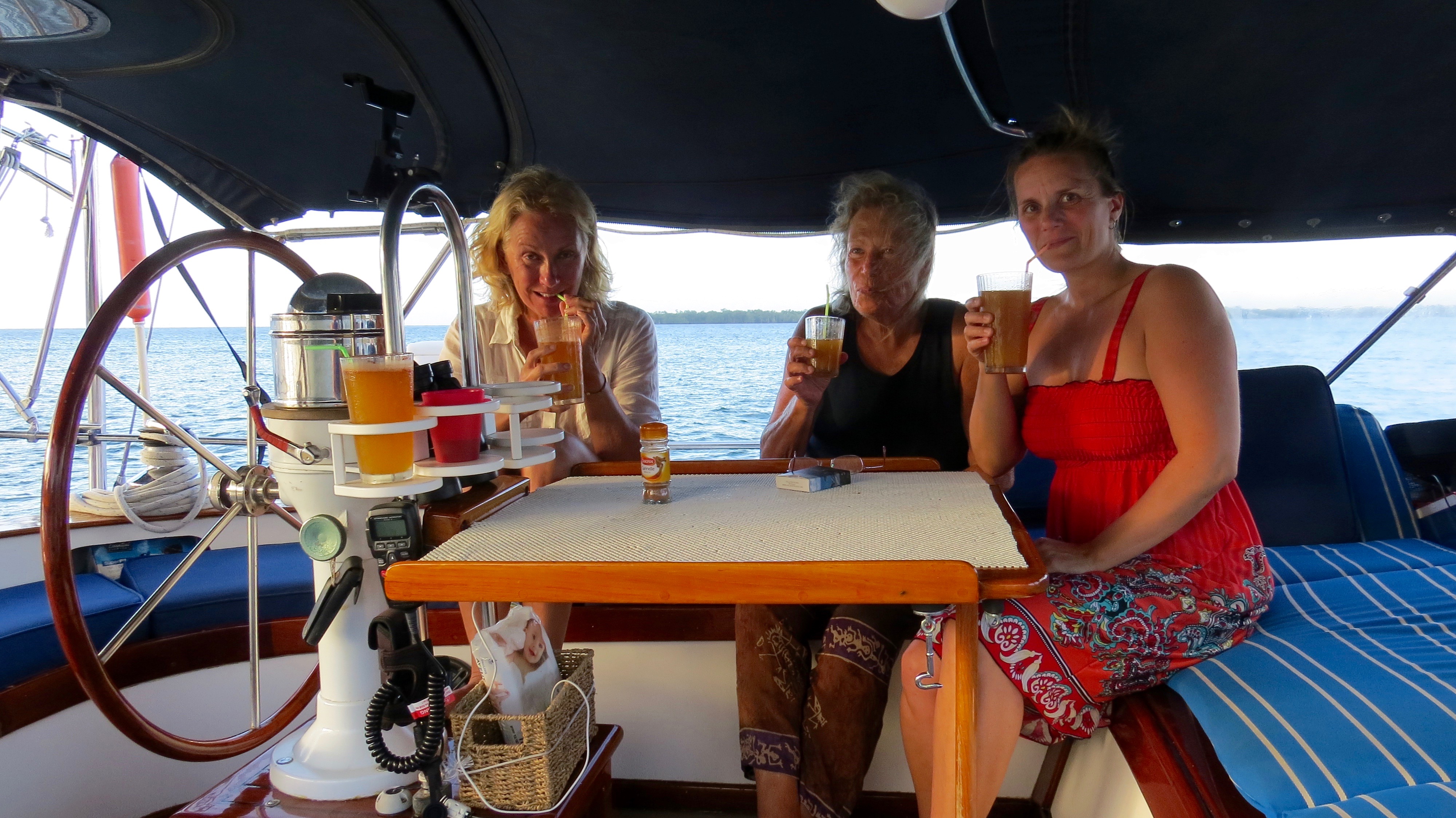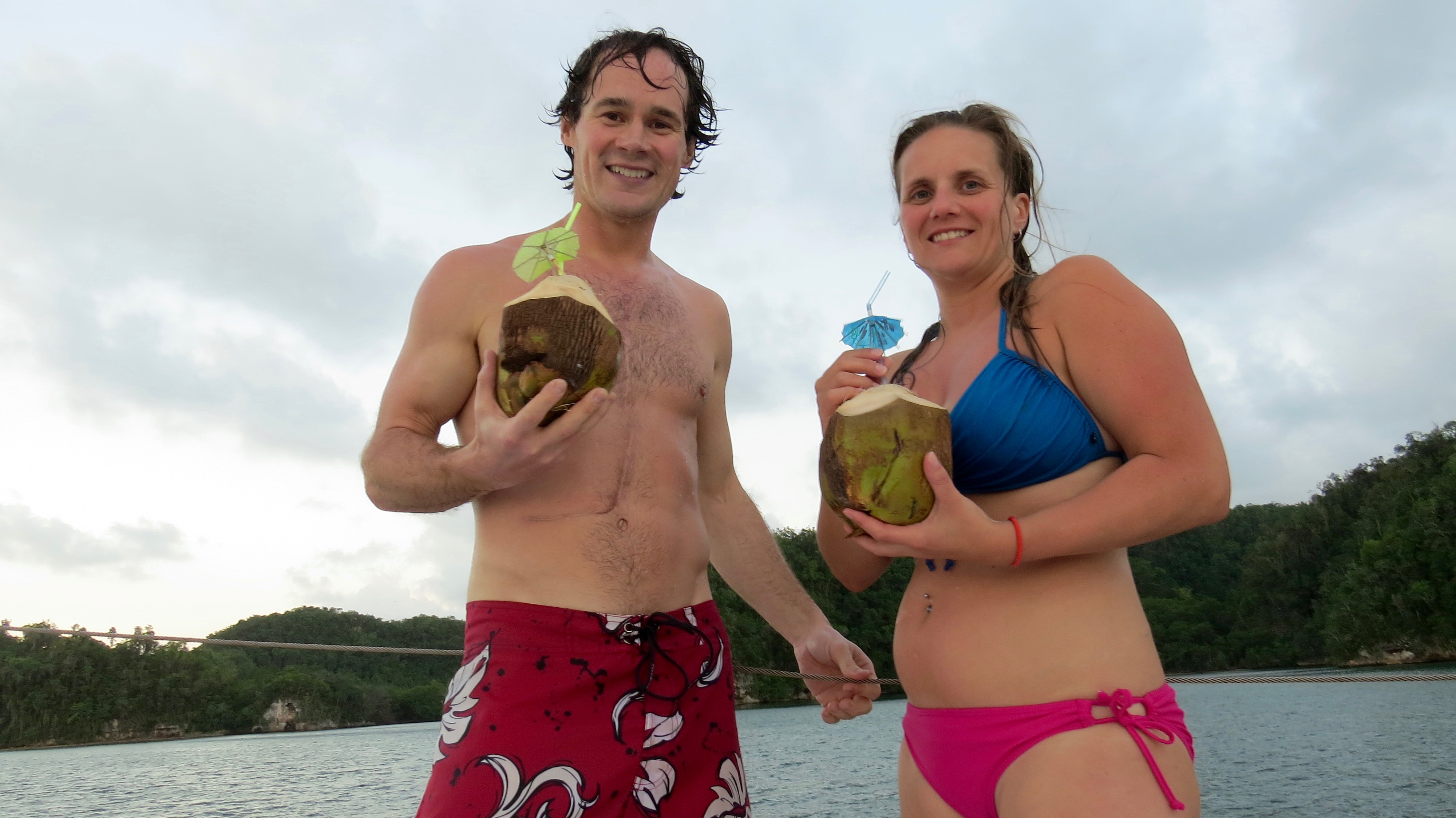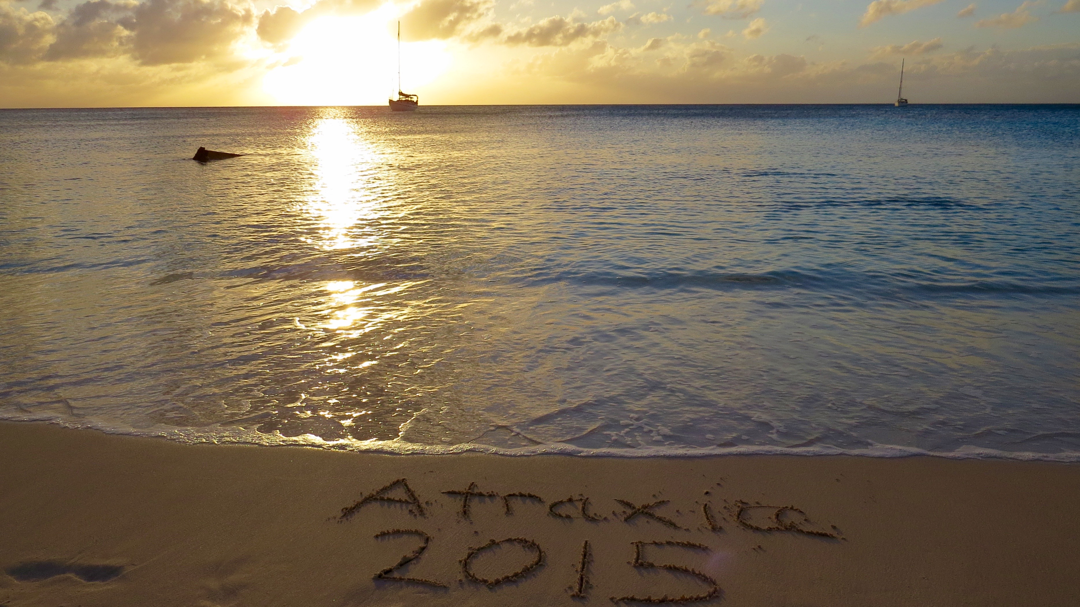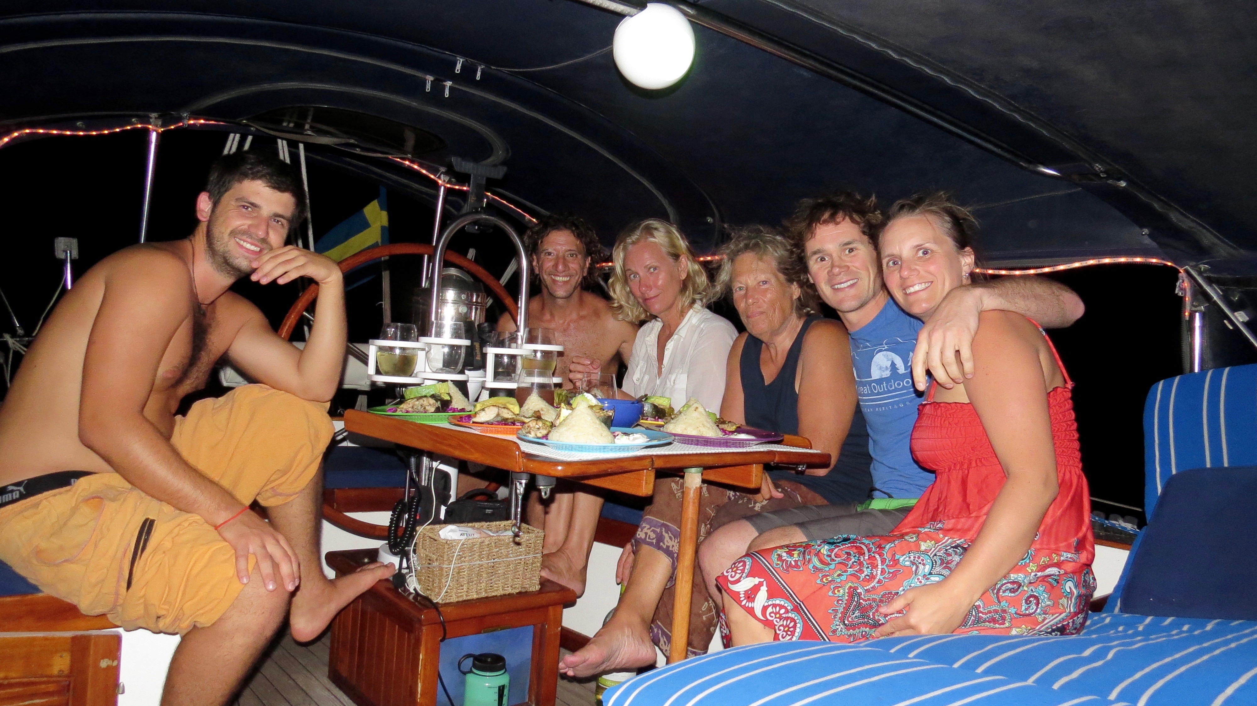 Shannon got up and headed top side to the front of the boat. Breathtaking waters and weather. We anchored right off the shore in the white sand and hopped in the dingy to check out the island. We knew of some amazing diving in this area so Shannon and I signed up for a couple of fun dives the following day. The two dives set us back $250 for both of us and the company dropped us off at the sailboat in between dives for lunch. The shore dives were about 18m deep then dropped off a edge into the darkness where Shannon spotted her first shark. Amazing colours, loads of marine life, and healthy coral was all we saw for our 2 hours under water. After returning to the boat we all jumped off the back of the boat and went for a snorkel. We swam to the beach and spent some time in the sand as we watched the sunset behind Atraxia. We did our best to celebrate New Years here on the boat but we only made it until about 12:15 then headed to bed.