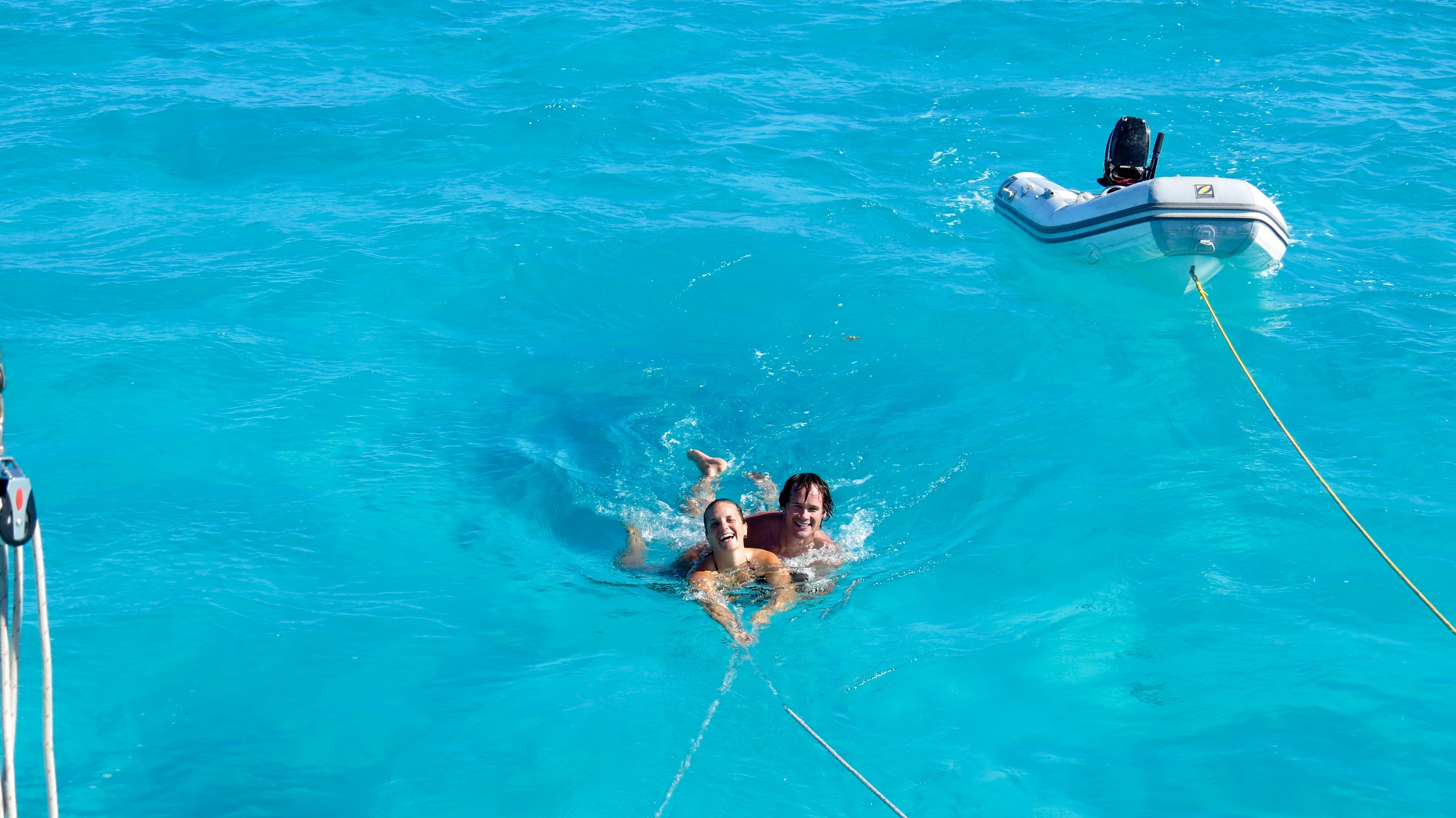 This day of sailing was amazing, everything was perfect, weather, calm waters, no sea sickness. There was no land in sight and we were only in about 4 meters of water most of the day as we were on the Turks and Caicos bank. We spotted two dolphins in the distance then they approached us and rode the bow wave for a few minutes. We were only sailing at about 5 knots and wanted to swim, so Ron strung a rope out for us to hold onto as were now being dragged by the boat. It was truly amazing but super hard to put ourselves against the water and back onto the boat. We then anchored off a little island and swam to shore and checked out the iguana preservation area. We also brought along the snorkel gear to check out the reef and hopes of catching us some lobster for dinner. Unfortunately, we ended back on the boat empty handed for our last nights sleep. It was a beautiful evening, the stars were out and not too hot to sleep. Motored into Southside Marina where we bottomed out and bounced our way into the harbour as we were running out of high tide time. sadly, it was time to say goodbye, get off the sailboat and head for the airport as our adventure had come to an end. As sea sick as Shannon was while sailing she would go again in a heartbeat. We had such a great time and met some awesome people. Being in a situation like this it is so hard to feel nothing but free; 21 days of breathtaking amazing.