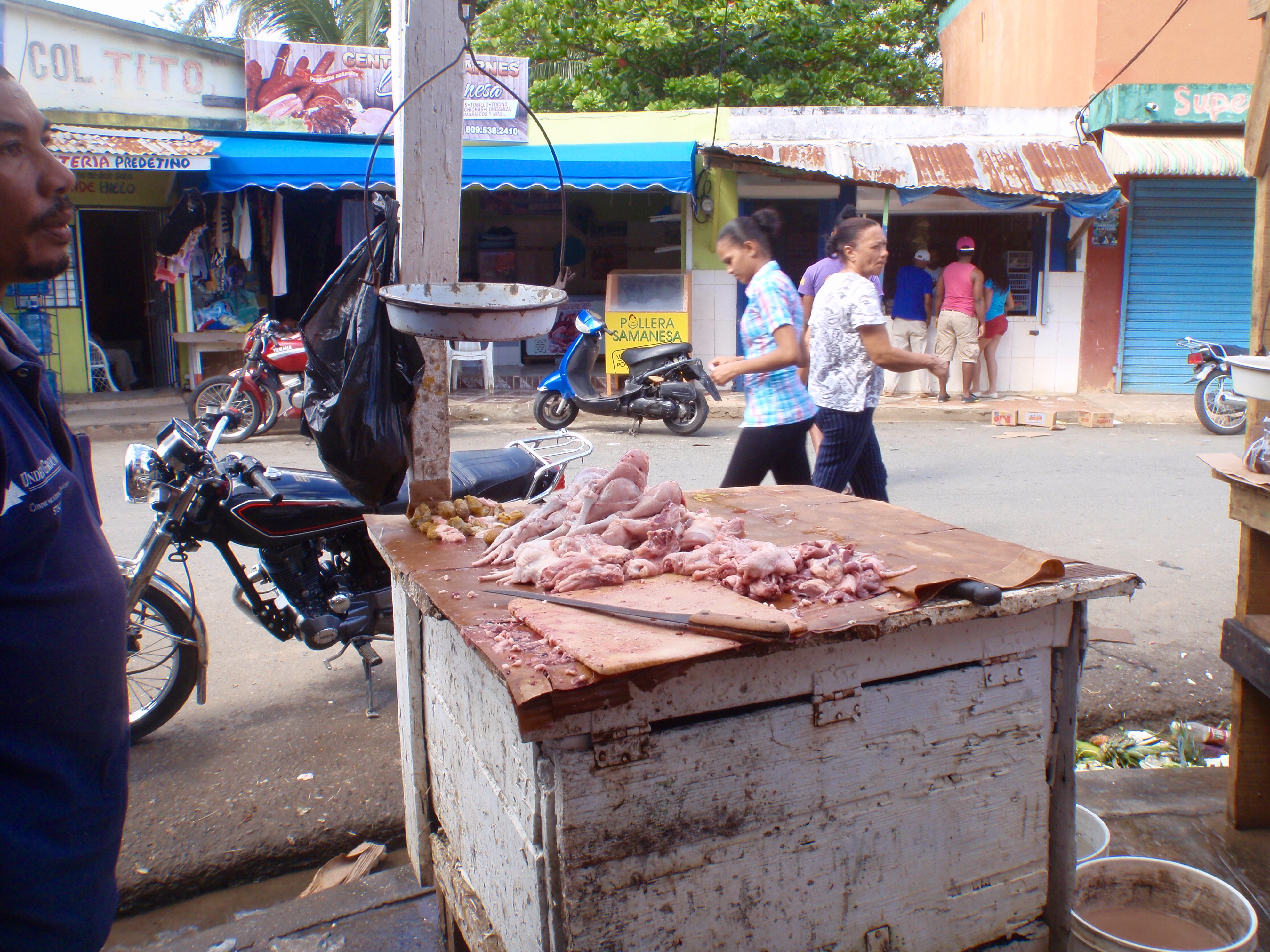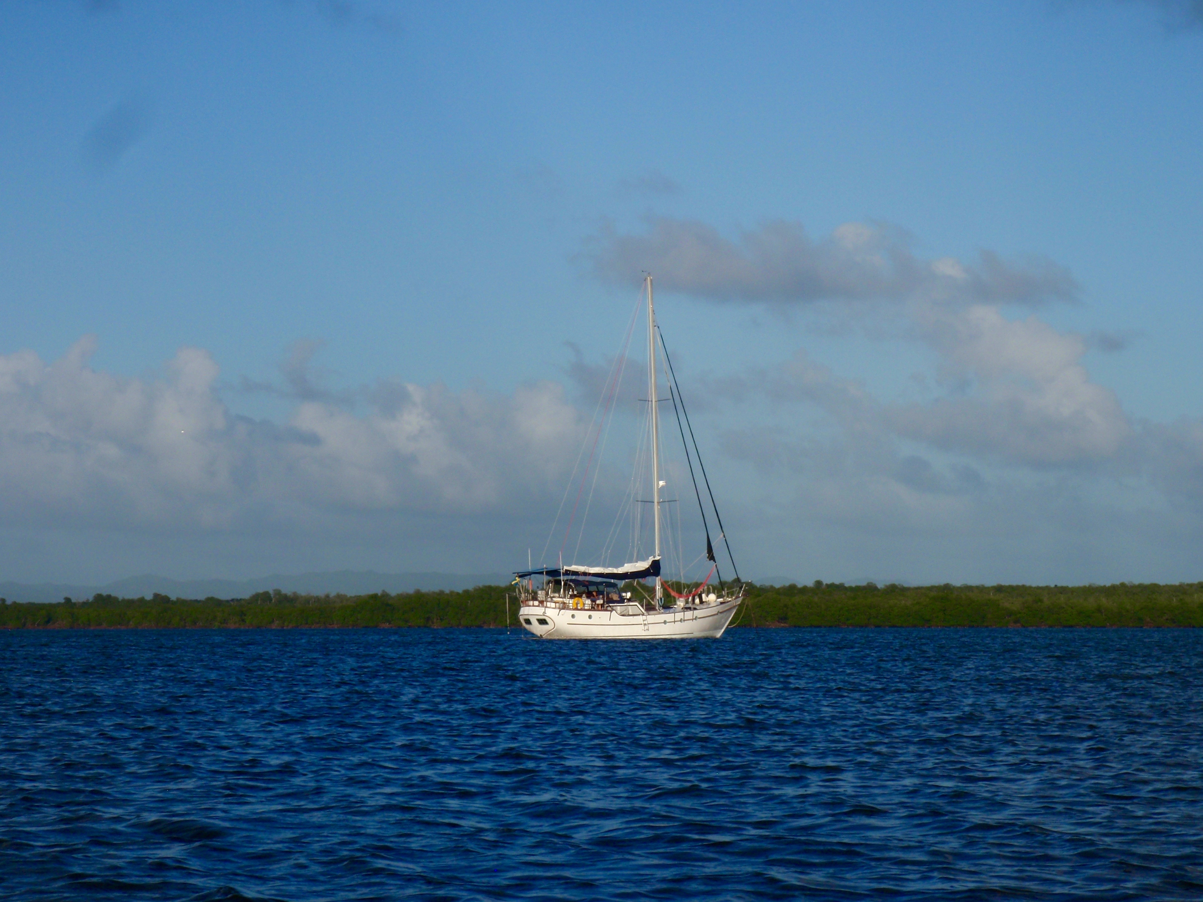 Christmas day we headed out and checked out more of the Los Haitises. We moved the sailboat further into the bay, dropped anchor then all loaded into the dingy. We took a 20 minute tour up the river lined with mangroves which end with a dock and a farm house where we could tie up our dingy. Back on land we checked out the surroundings. The area was filled with lots of chickens and turkeys and dogs and cows. Walked in the sunshine a ways where we stumbled onto a nature resort randomly in the middle of nowhere. Enjoyed a cold beer then returned back to the dingy. The bugs were really bad here among the mangroves, kind of like no-see-ums and they wouldn’t leave us alone, Shannon especially. The mangroves create an amazing environment for all sorts of wildlife. Our eyes were forever amazed both in the water and soaring through the air. Once back to the boat we feasted on our Christmas dinner an endless about of dorado, rice, and fresh veggies from the market. December 26 we got caught in a crazy rain storm as we motored back to Puerto Bahia, very wavy but the short time period was not quite long enough for Shannon to feel under the weather again. We refueled, docked the boat and cleaned the deck. Ron, Shannon and I again went into town for groceries, took a rickshaw back. We enjoyed a further 2 nights in the marina as we waiting for the storm to pass so we could make another crossing.