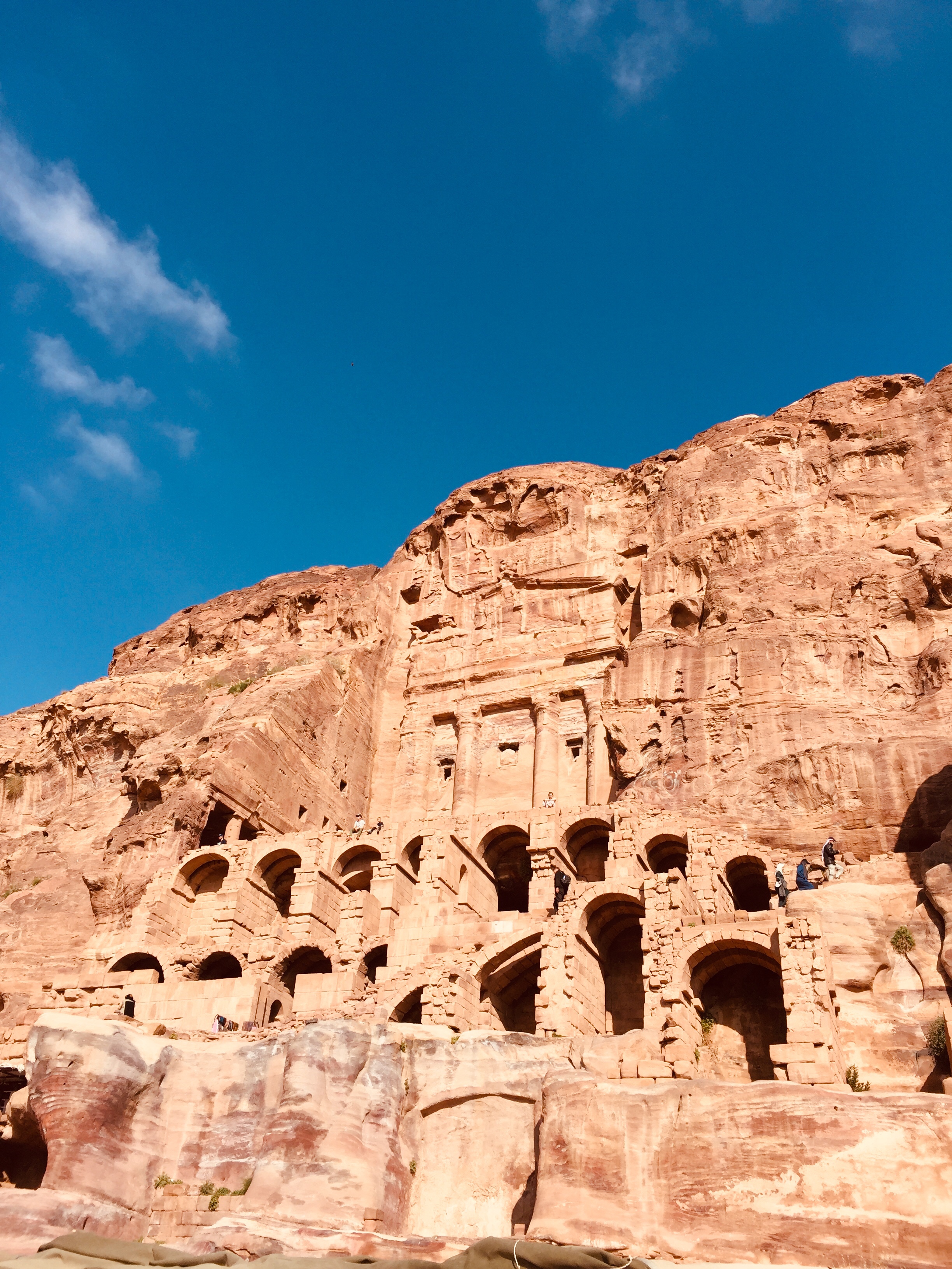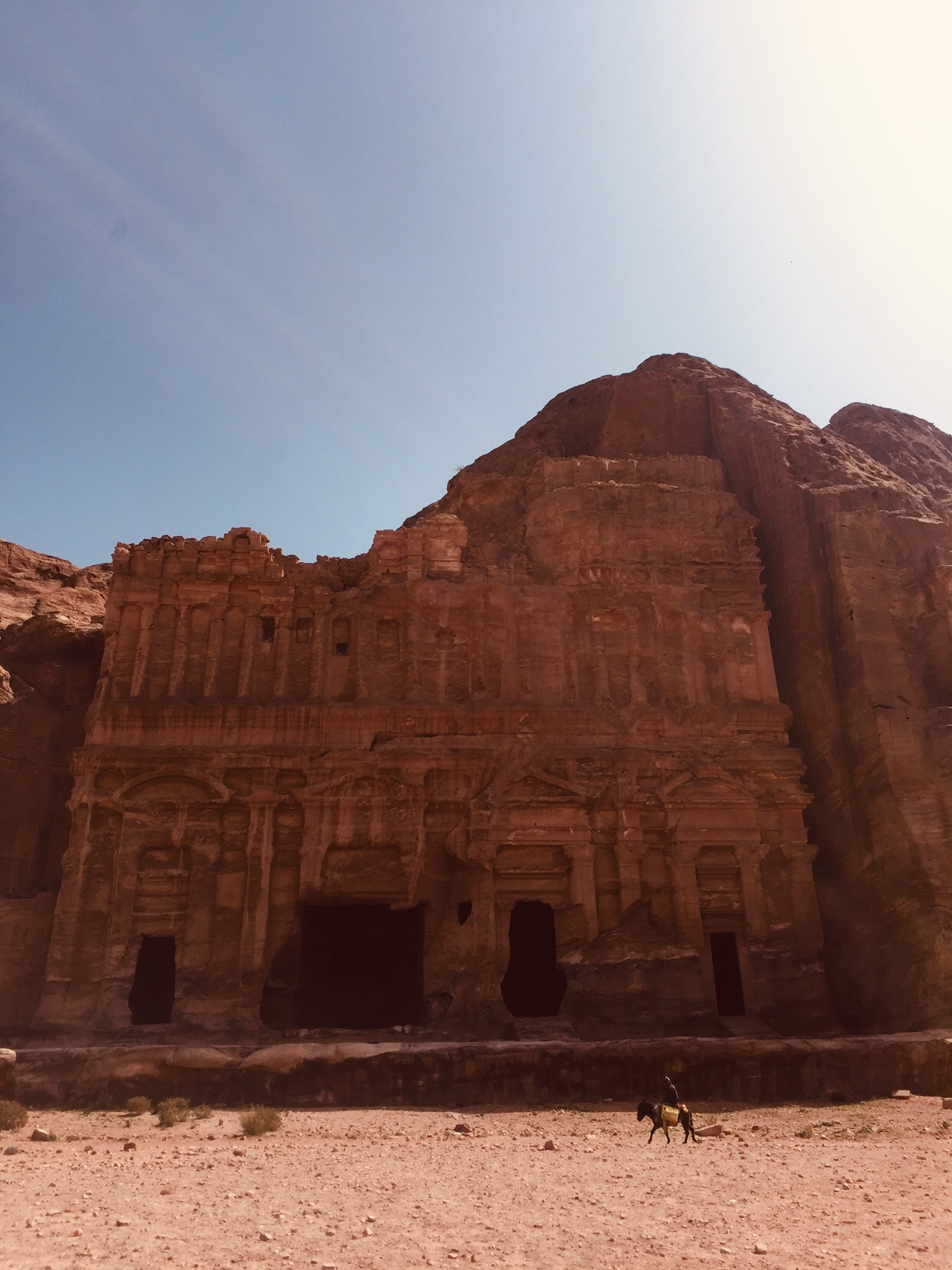Day 2 we explored further going all the way out to the Petra city centre. The sun was out and the air was very warm. This made it extremely pleasurable to take in as many sites as possible. Having over 800 identified monuments and 500 of them being Tombs it would be impossible to enjoy them all in a mere two days time. As our Wadi Rum journey did not pan out to how we had desired we chose to pay the 2 JD each to get on the camels for a photo opportunity.