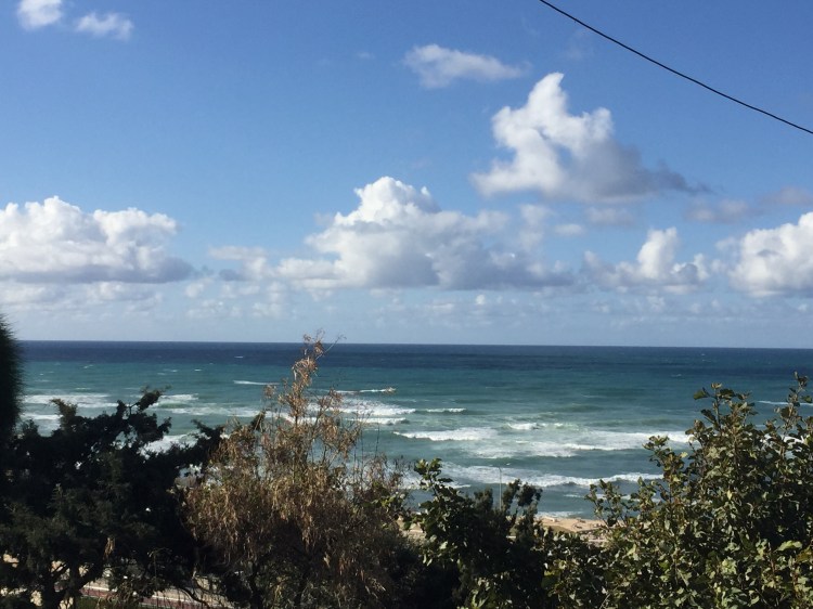 We pulled up to the Templars’ tunnel parking area finding the perfect spot and started walking towards what we thought were the tunnels. We ended up on top of the old wall built around the town with an amazing view of the Mediterranean Sea. We gazed for a bit and enjoyed the fresh sea air. Then we wandered along the wall, down a staircase and with the help of a store owner came upon the tunnel entrance. I had found on the website that the fee for just the tunnel was 15 shekels. We asked for a ticket for just that and the guy said no there was no such thing. I was trying to google it to show him but because we were already beneath the surface there was no service. He picked up his land line to ask some questions but the other end would not budge. He wanted us to by a combination ticket which was for multiple attractions including a Turkish bath. We didn’t want that nor did we have the time as it was already 2:30 pm and most everything was closed by 5:00. So we said no thanks and walked away, both a bit bummed out. We went back over the top wall and found a nice place to sit looking at the sea, fed the girls then proceeded to our next destination of Haifa.