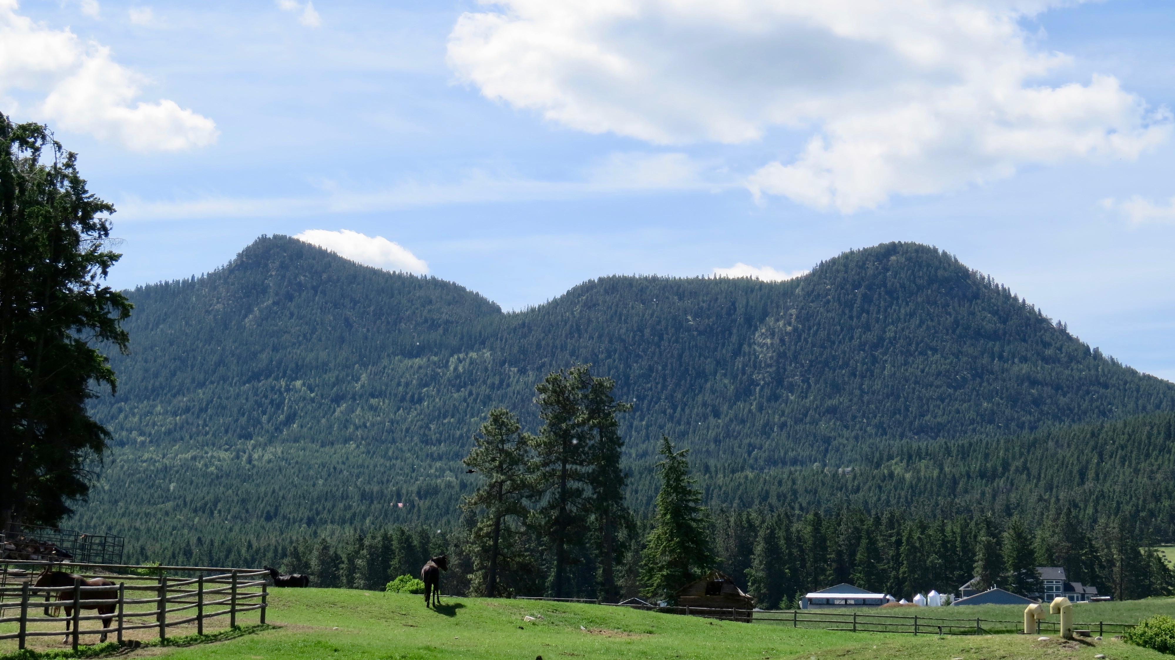 With the girls in the Onyas we hit the dirt. The hike starts fairly flat for the first 200m, then as volcanos go, climbs steeply via switchbacks. This continues that way until you reach the summit roughly 30 minutes later. You do however get the chance to stop and enjoy the wildflowers and use this as an excuse to take a breather. The footing on the trail is a bit unsure as the dry soil and steep nature results in some loose slippery sections. Once you have reached the pinnacle you can enjoy stunning views of the rural Coldstream valley to the west and the snow capped Monashee mountain range to the east. An old surveying pin can be found imbedded in the rock at the highest point on this peak.