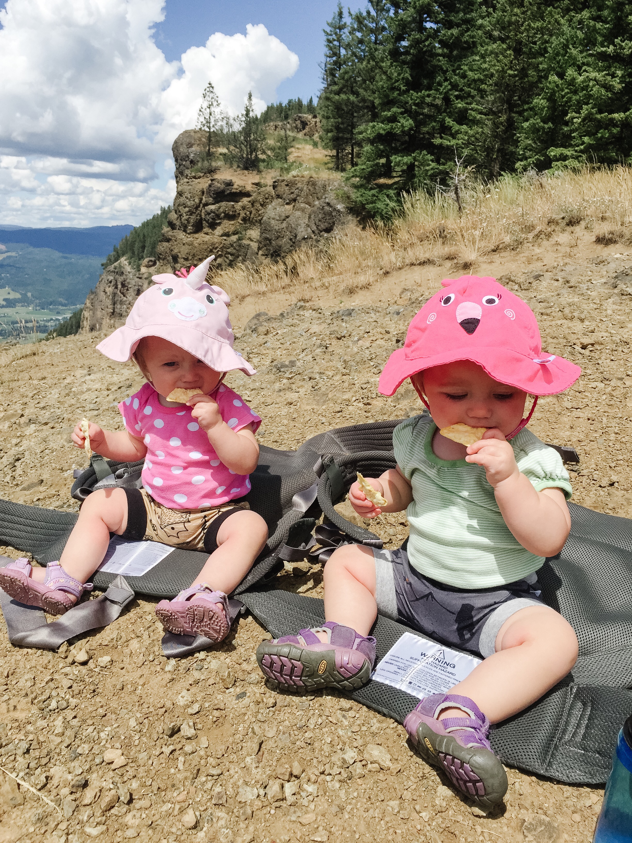 Our girls are quite the little troopers. Into our front Onya carriers they go and up to the top. They mostly take the lazy road and sleep the entire way saving their energy for the summit to race around and explore. Lidija really enjoys putting everything in her mouth so we try to keep her hands full with snacks rather then pine cones, rocks and dirt. Bexley just enjoys life. She doesn’t really sample the surroundings unless she notices Lidija getting our attention with doing so, then she follows suit.