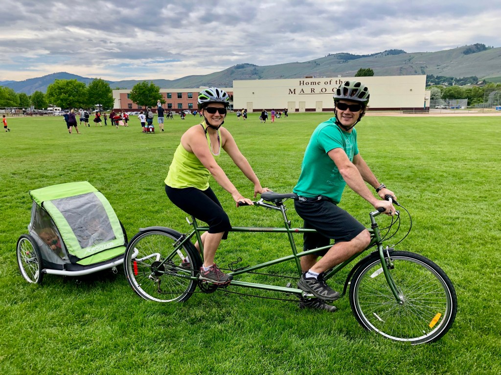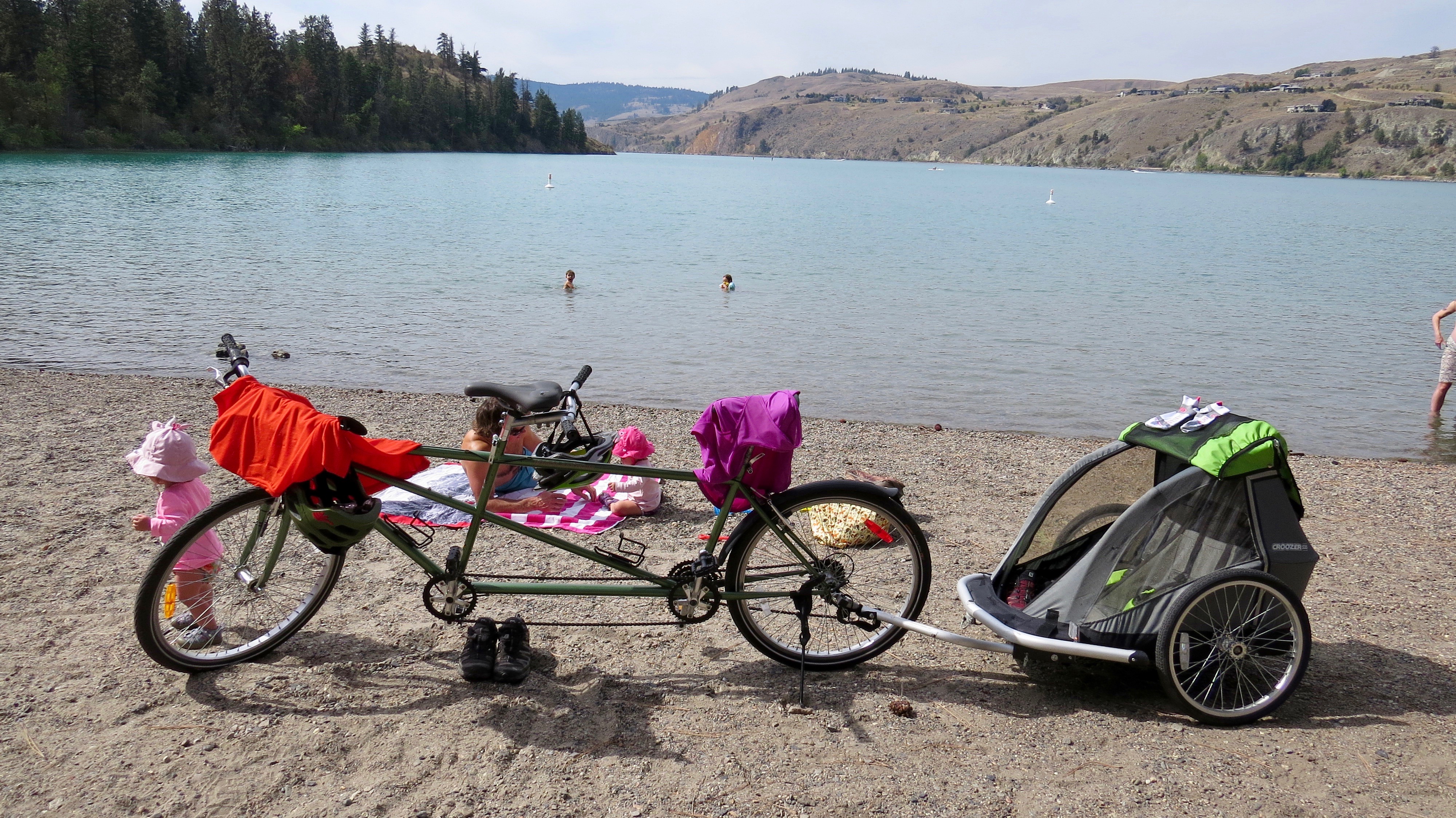We would drag the girls around everywhere, grocery runs, beer store and to the down town park on Thursdays to enjoy some live music. I feel like riding a tandem bike tends to get a lot of looks as they are not really all that popular. Adding the trailer really ends up turning heads as well. Being nearly 14′ long and 3′ wide really has people staring and smiling….and laughing….and pointing. Hard to take things all that serious when you are out cruising around.