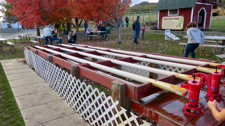 There is lots to do there besides just buy pumpkins and all the yummy other things they sell. They have a tractor ride (which Bexley was terrified over even just the loud tractor so we stayed away), tons of play equipment, duck races, hay bails to climb on, animals to pet, etc.