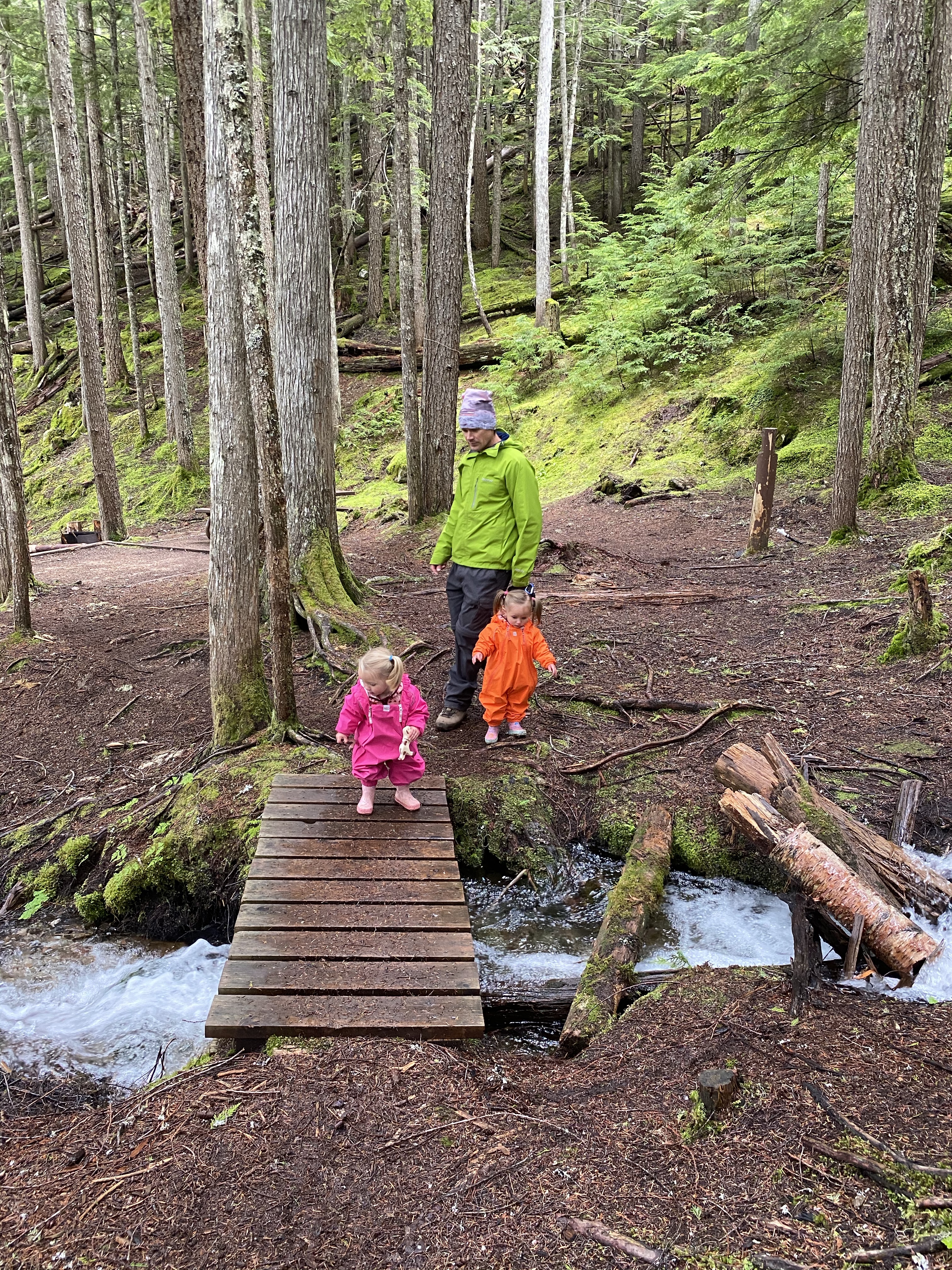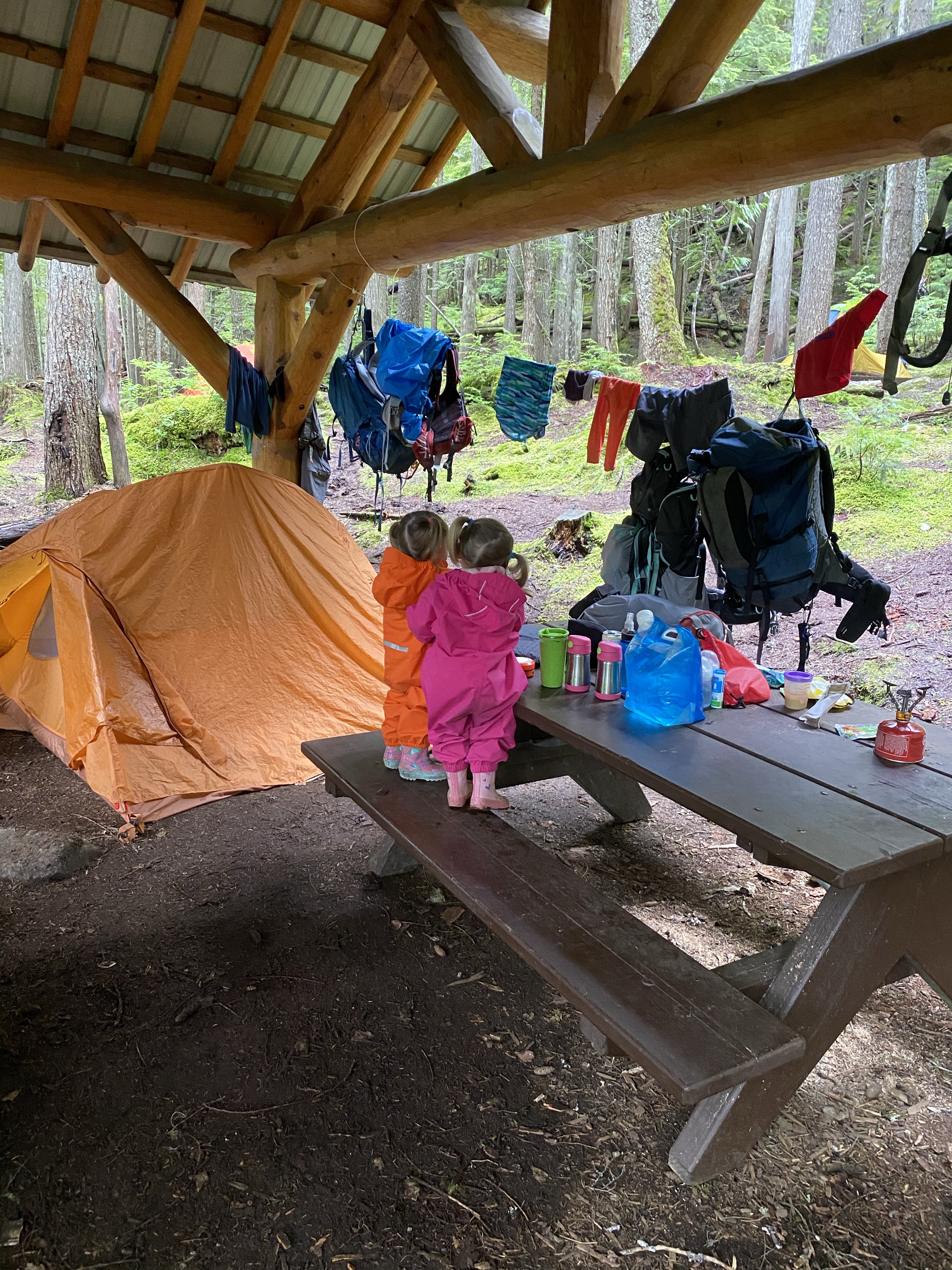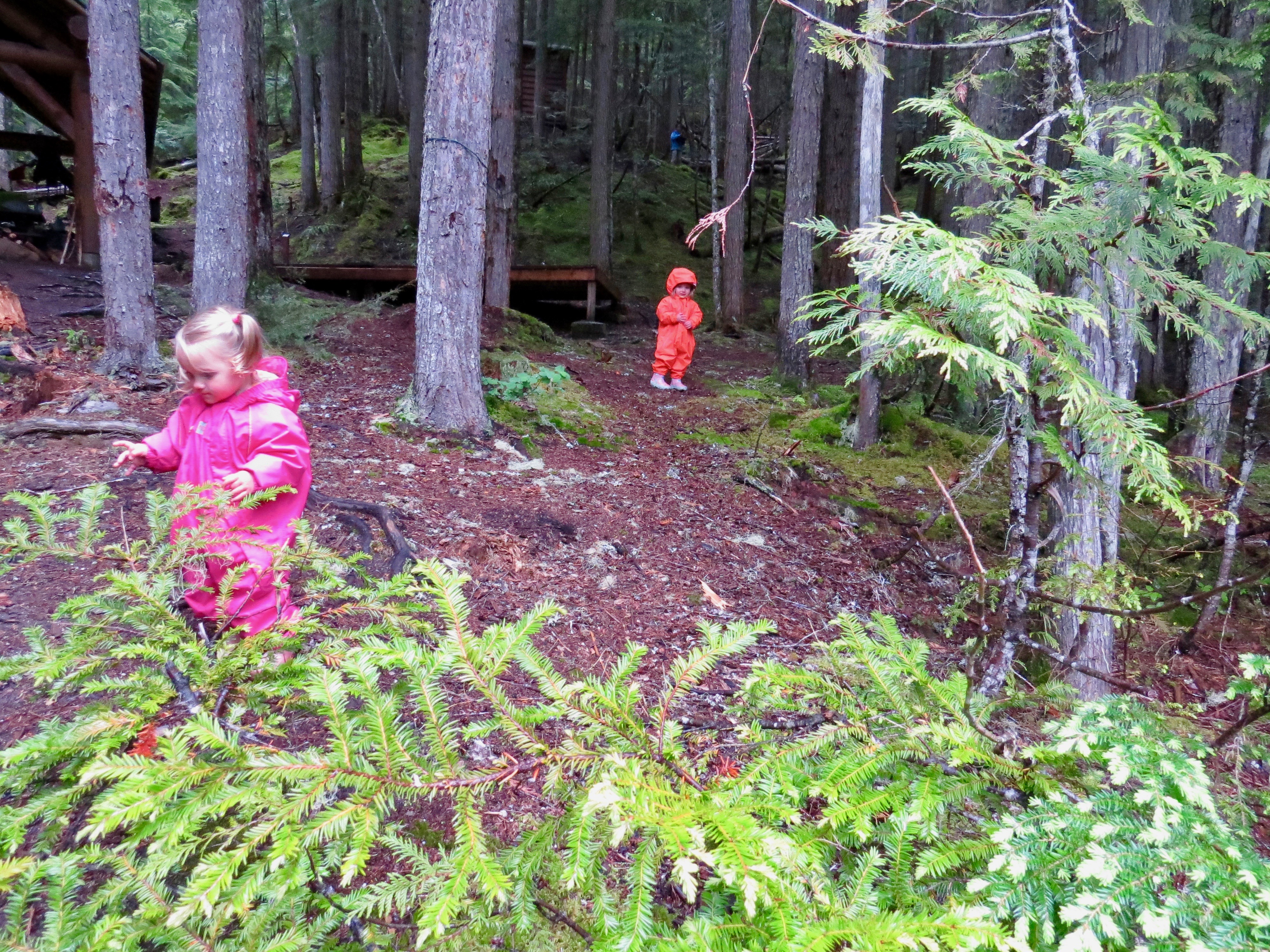 We set up our tent, got organized and settled. We got the girls geared up in their MEC Newt Suits with rubber boots so they were good to go for the rest of the time out there. These were a lifesaver keeping them dry and warm. Nearing 4:00 p.m. Bruce decided that he had to brave the non seasonal elements and make his way back to the parking lot. After 1.45 hours he was back at his truck and on his way home to an awaiting hot tub and comfy mattress.
