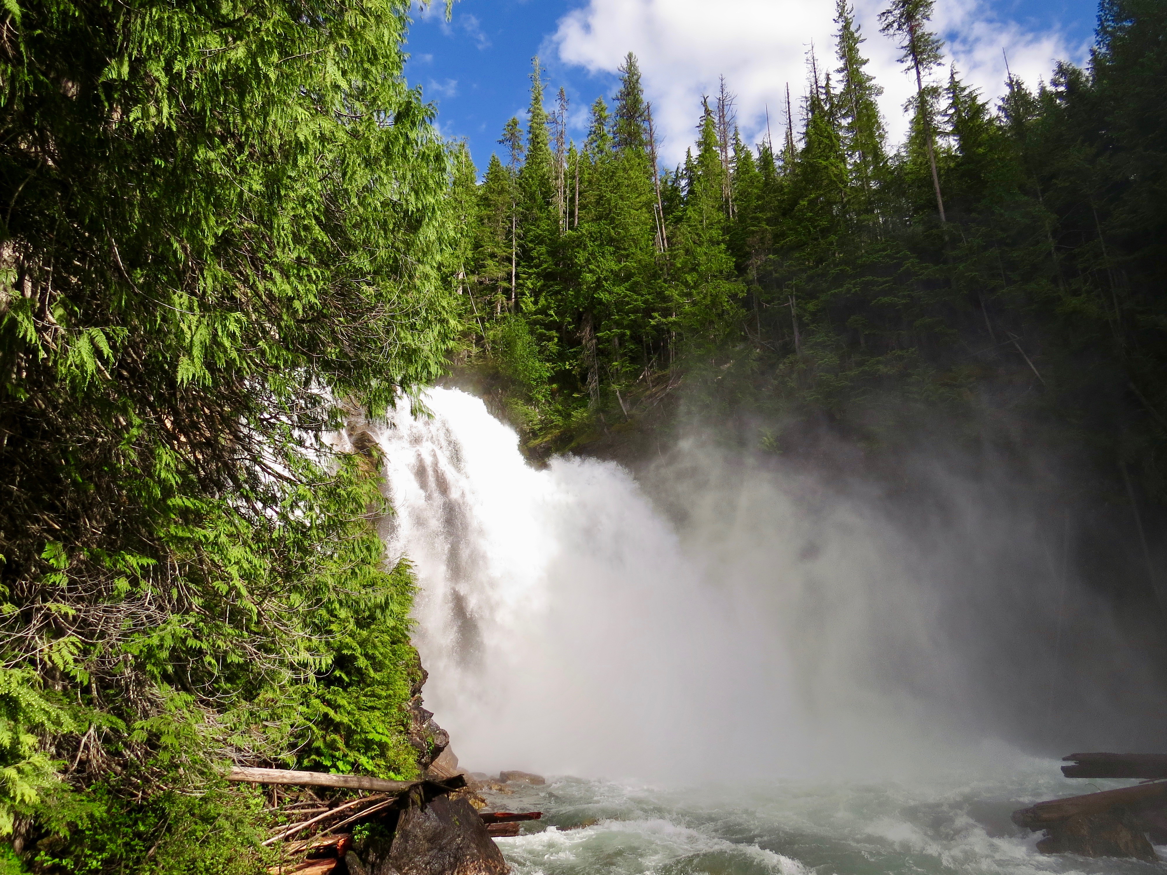 7 km back we made a slight detour to Rainbow falls. We stopped in a couple years back so click here to see that extravaganza. 1km drive from the main branch and 250m of sectionally muddy walk leaves you at an upper and lower viewing platform. There is an exceptionally high amount of water making the plunge and I believe this one of BC most under visited and under rated waterfalls around.