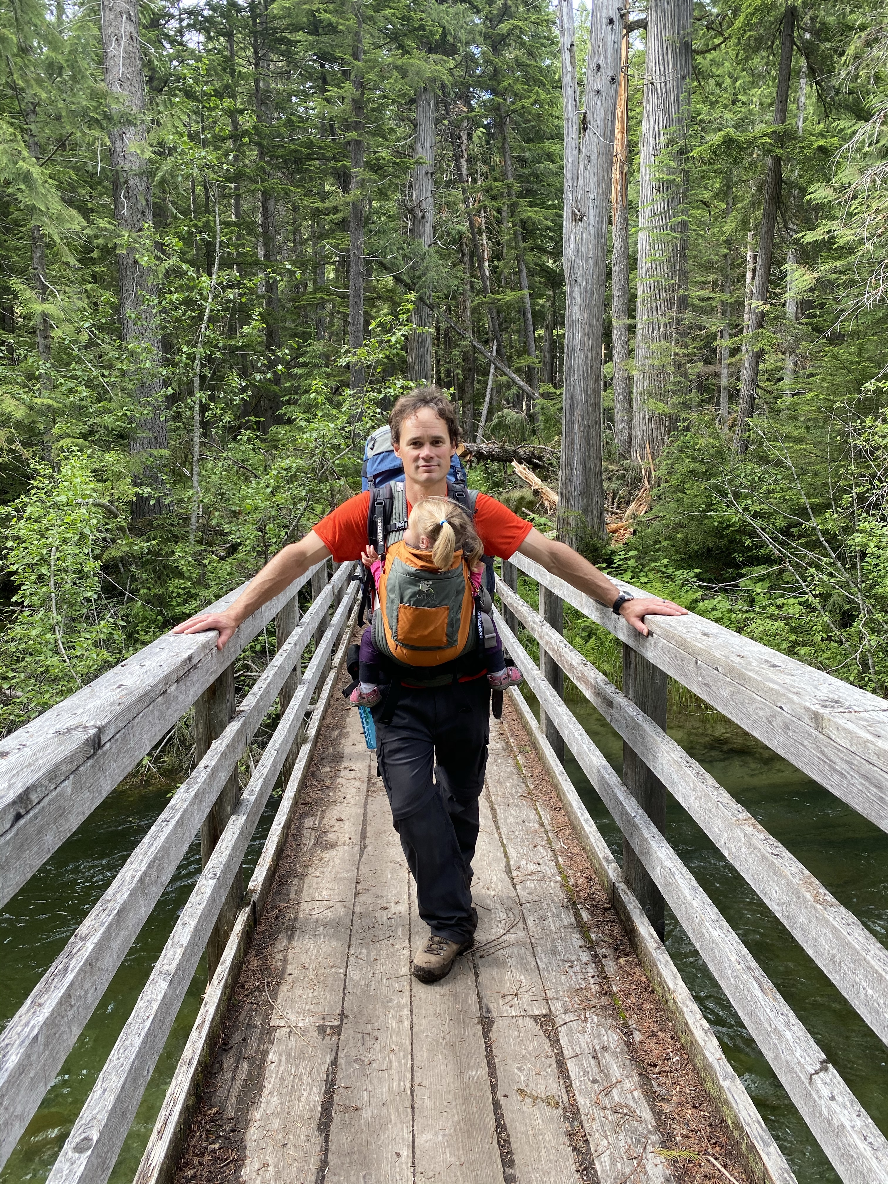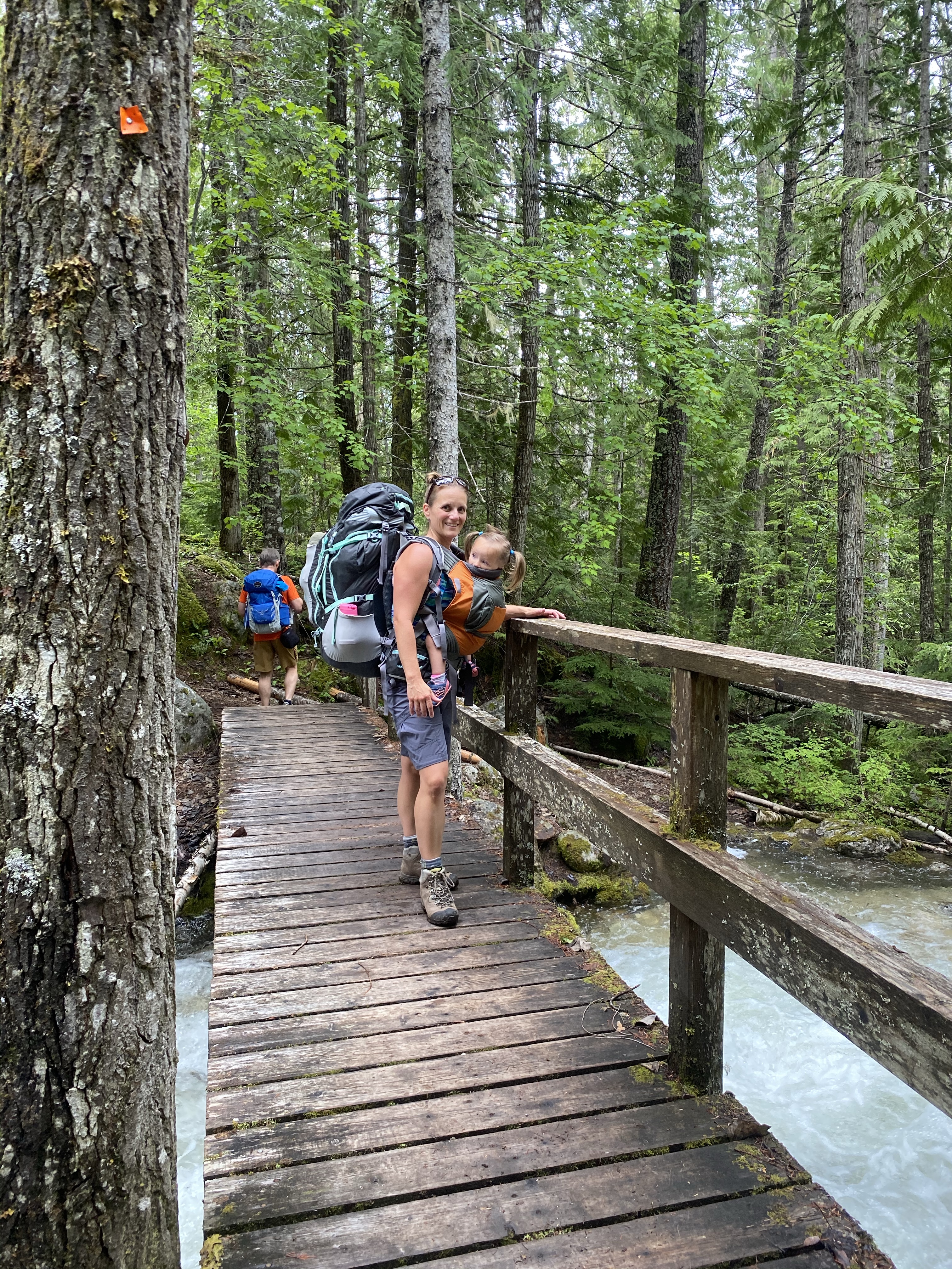 Meandering back to our tent we ate some lunch and slowly dismantled our site. Our original plan was to spend two nights but after the minimal sleep on the first and a great weather window we decided to not chance our luck with tomorrow and head out mid afternoon. The girls took turns sleeping in the Onya carriers and we were back a the truck in just under 2 hours. After a quick change of clothes, some snacks and a face wash in the nearby creek we were on our way out.