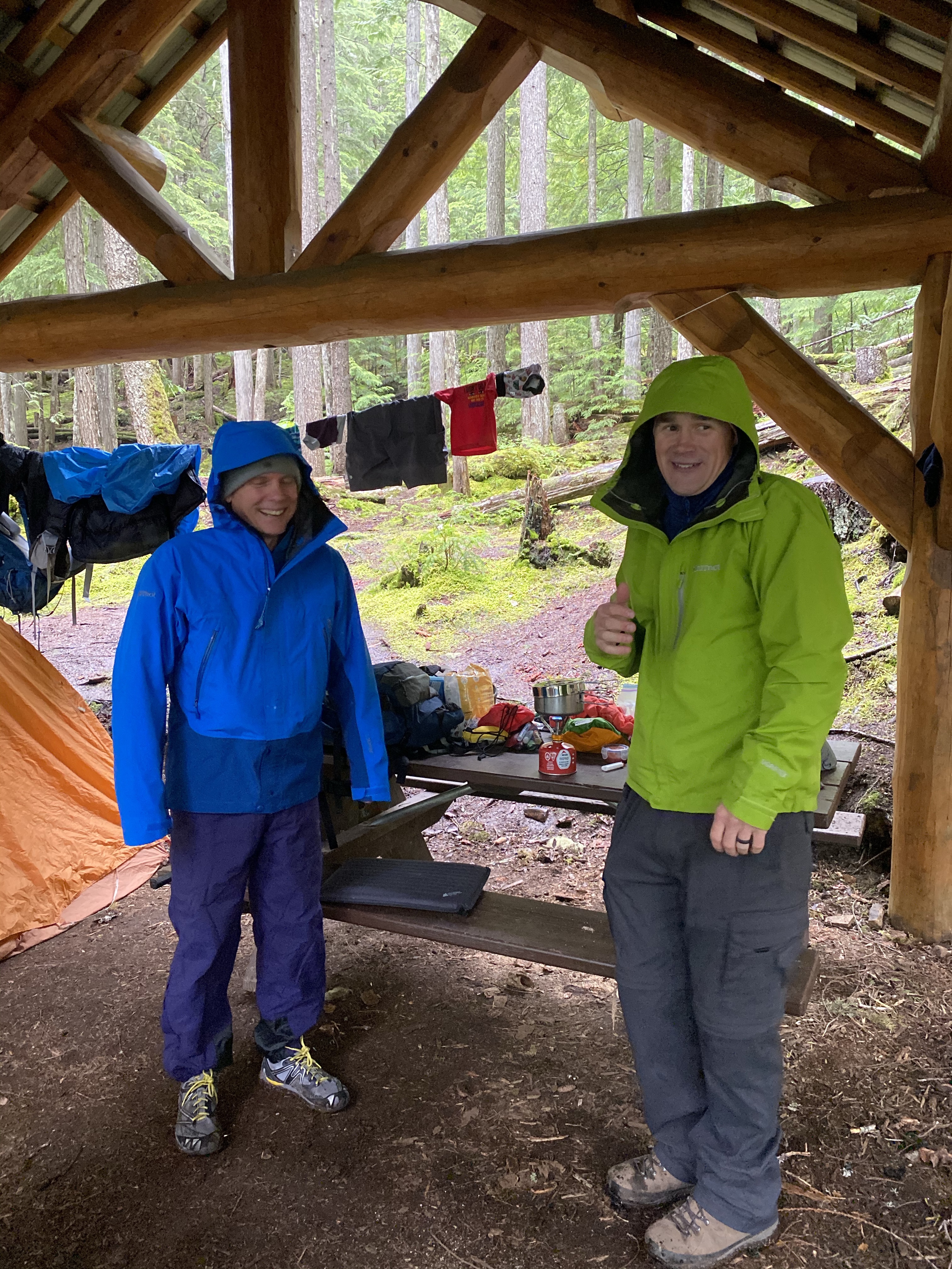Other hikers kept appearing so we made way for new arrivals. We met some amazing people, visited, laughed, shared stories and when the rain finally quit around 8 pm when we all worked together to got a campfire started. This was a long process as the wood was super wet but in the end we constructed a sustaining fire and all managed to stay awake until around midnight. Our sleep was quite interrupted as about ever half hour we would wake to one of the girls being outside their sleeping bag sound asleep. As the outside temperatures were down into the single digits we would stuff them back in and fall asleep until the next round. All in all everyone slept ok.