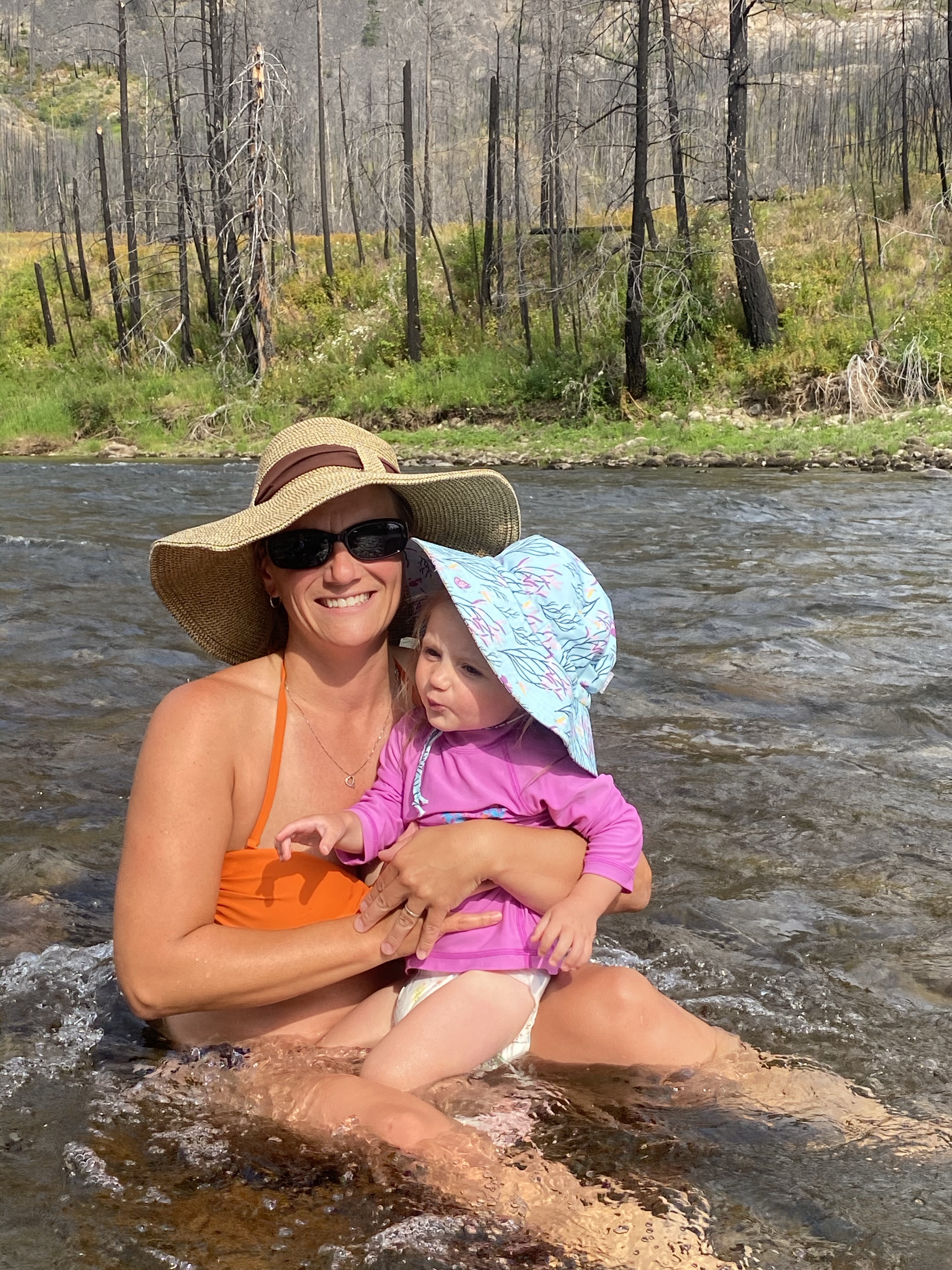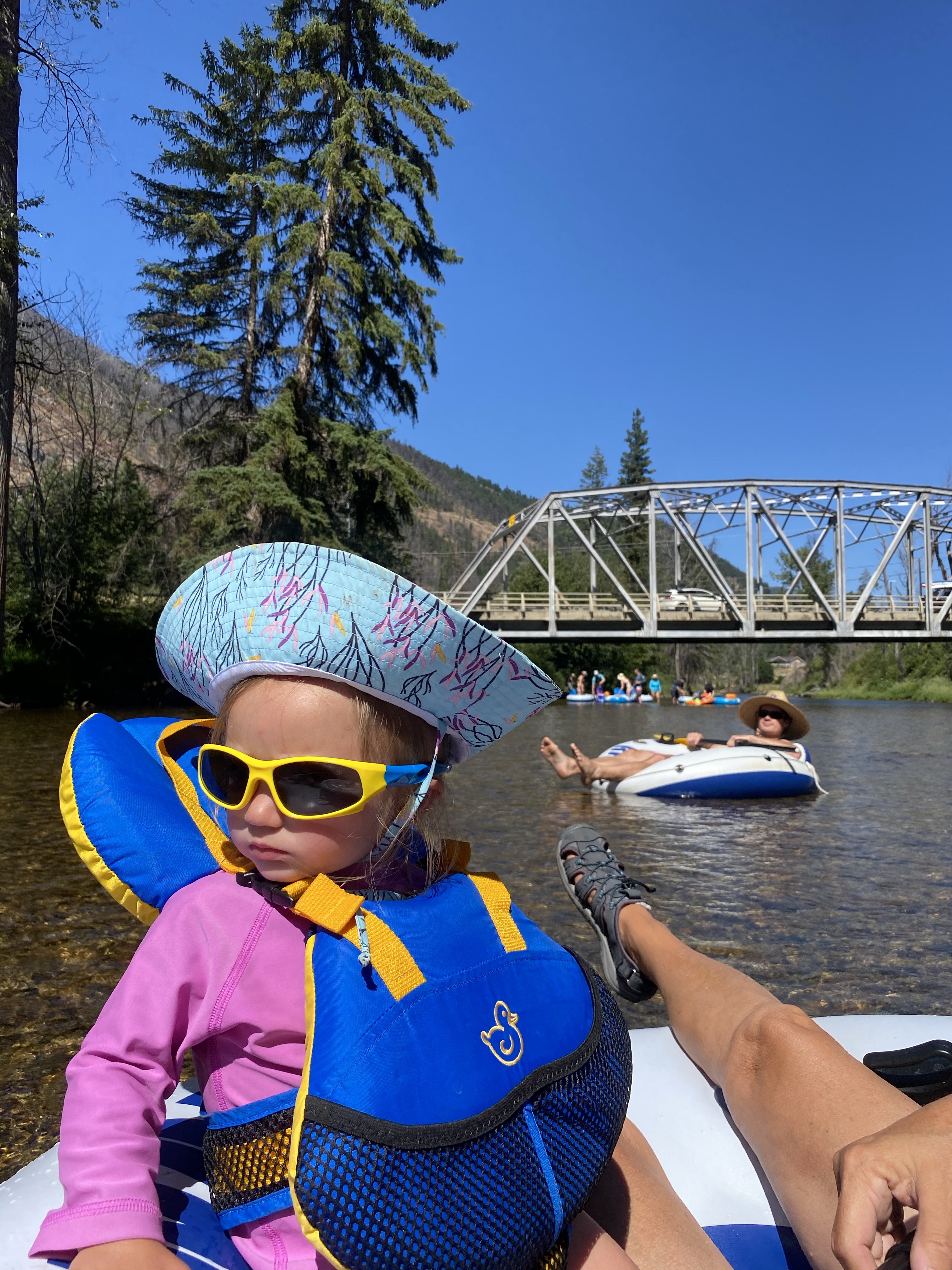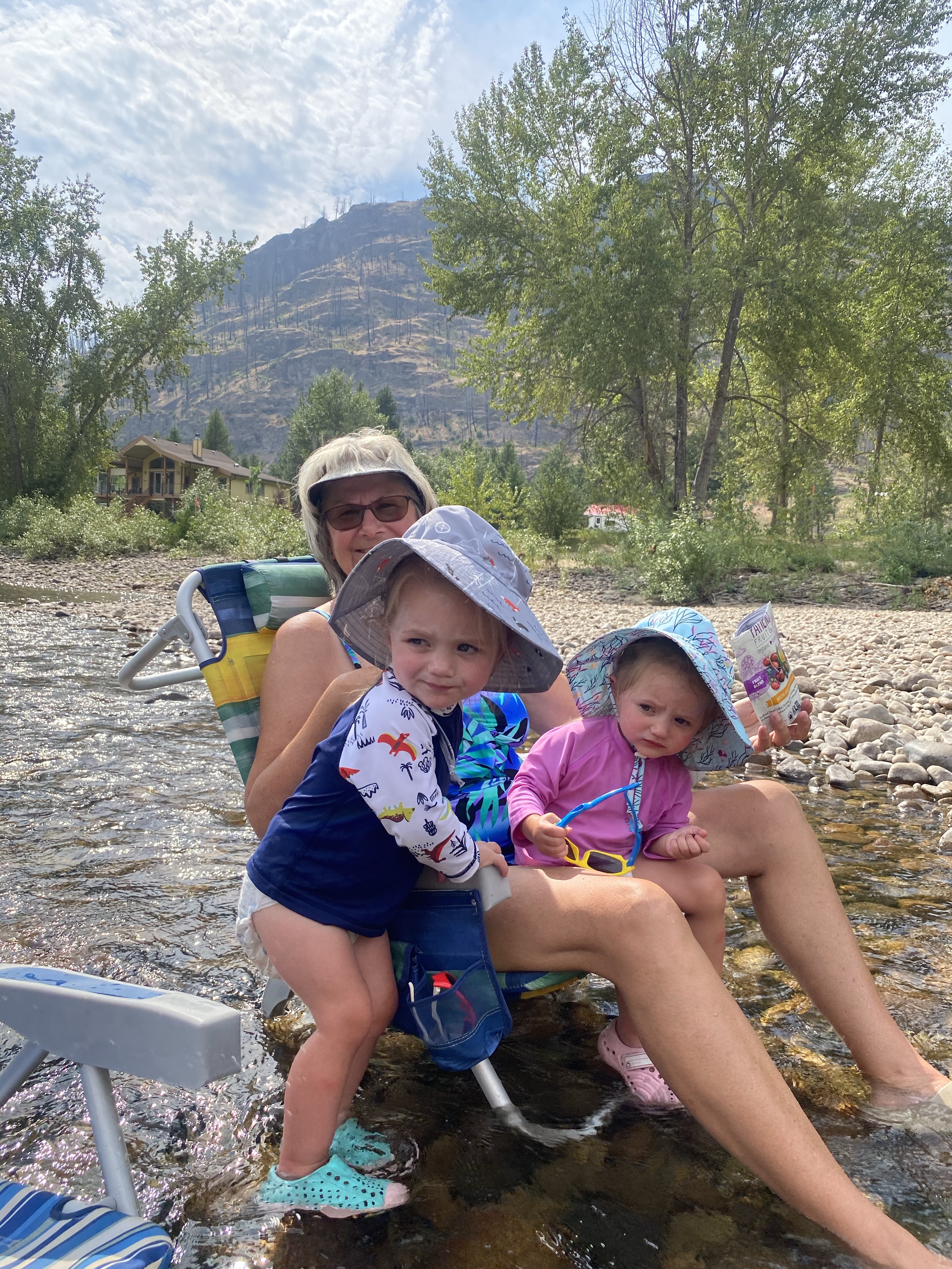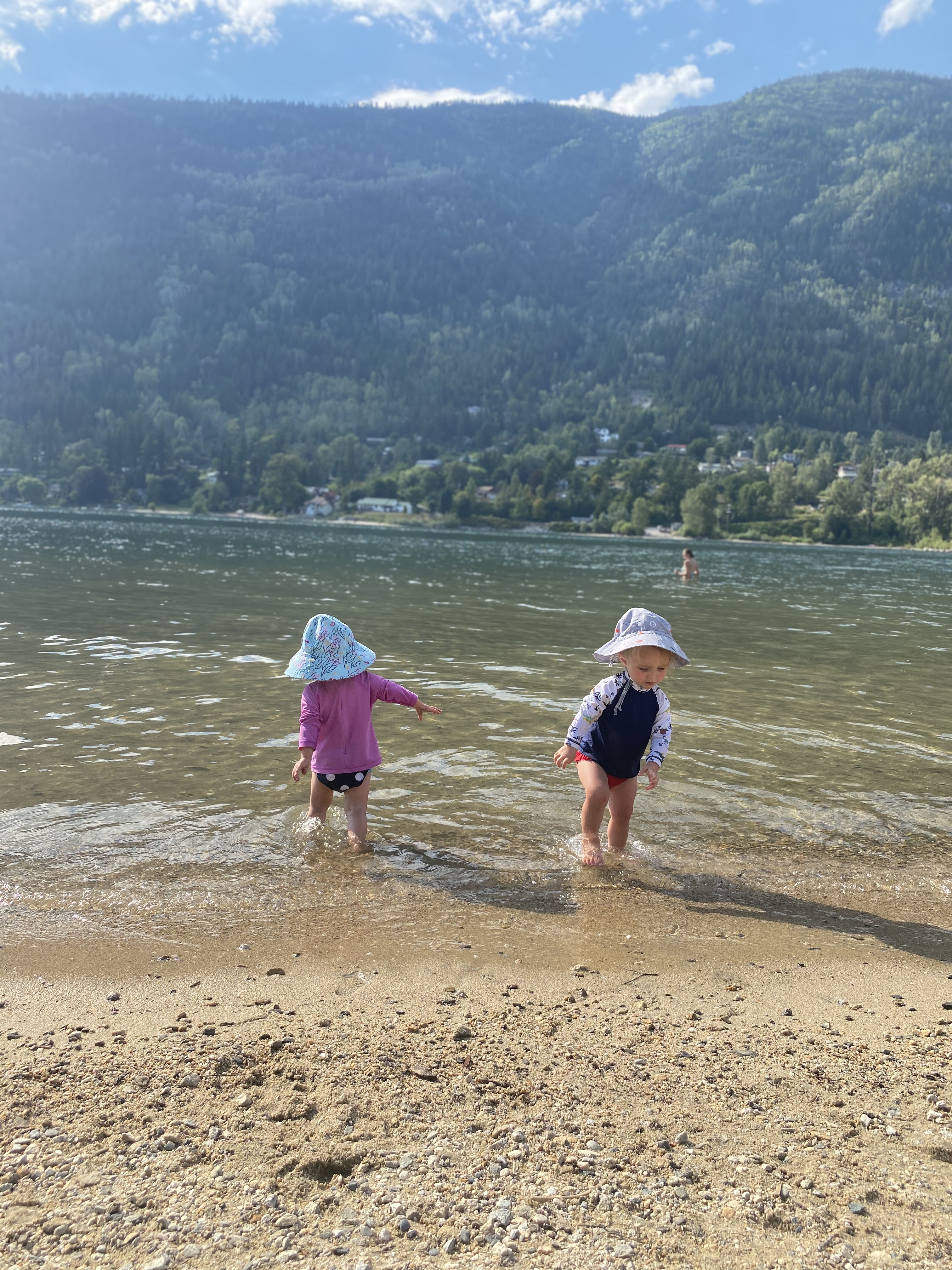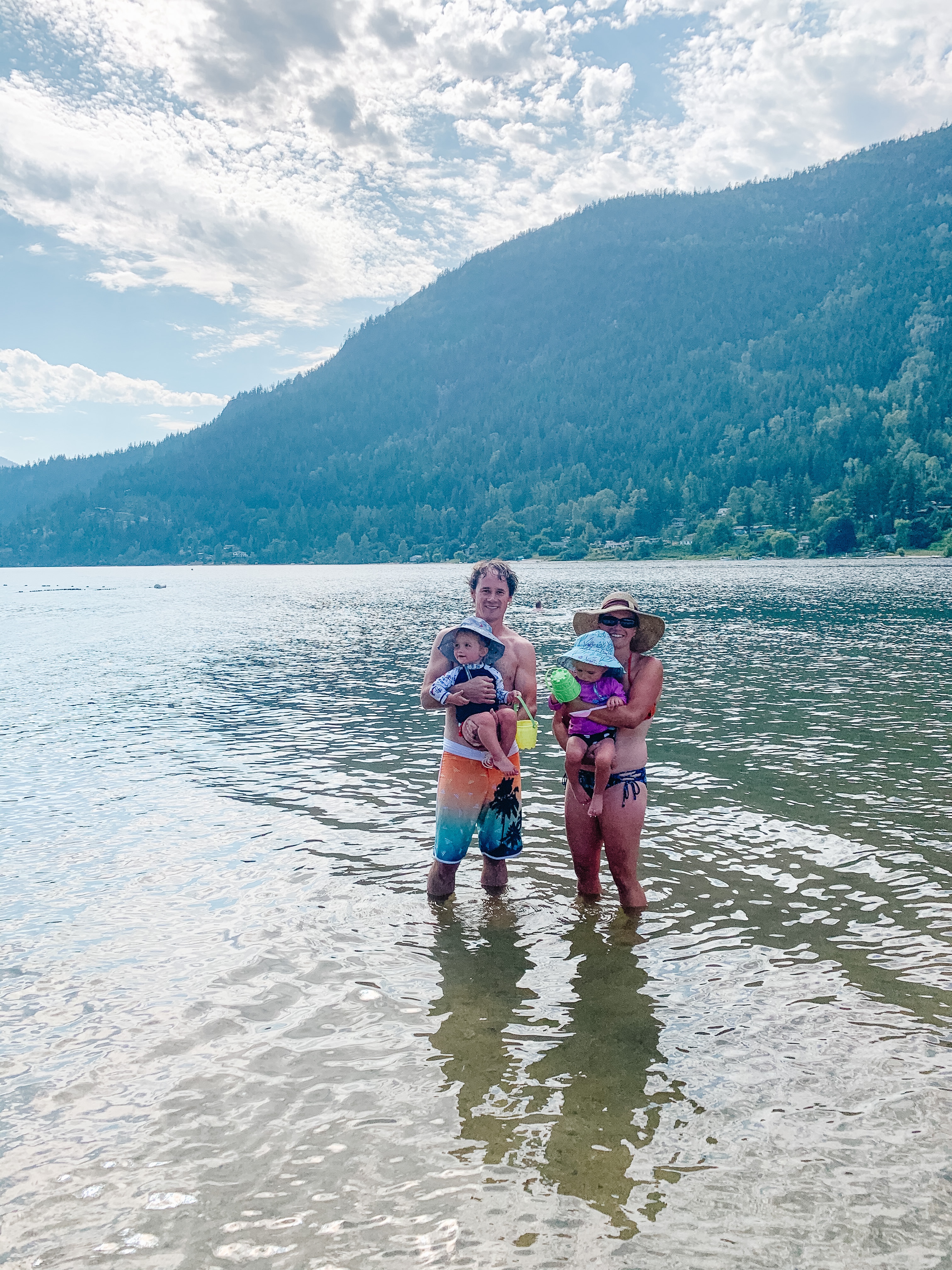 Two more visiting hours passed and we decided to push on. This time now all the way to New Denver. Our original plan was to head to Buchanan Fire Lookout for some stunning views, but after all these delays we were now burning daylight and chose to just head for our final destination. 11.5 hours after leaving our front door we finally made it the 310kms to our resting place of Slocan Park. Ever since the girls have been born we have been supporting and adoring the hand made clothes from Brets Bibs. After keeping in contact, mainly via instagram, we met in person. Bretney and her Husband Lee along with their son Bryden greeted us warmly with dinner made and a comfortable place to stay for the night. With the girls only sleeping for an hour on the drive and high 30 degree weather, we were all astonished that they managed to stay composed. Once the evening temperatures dropped to below bearable around midnight, we all crashed until morning.