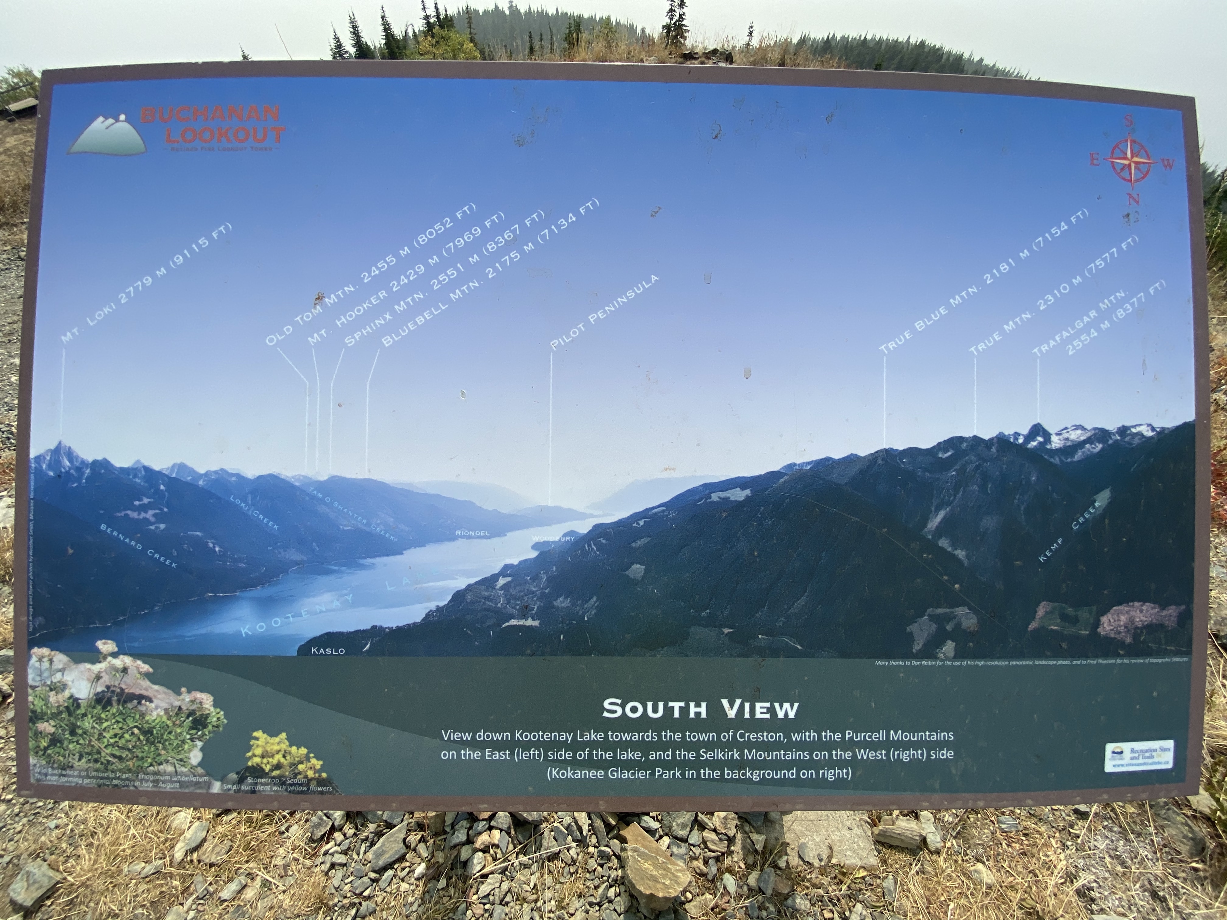 Yes it was a little disappointing but this is what we sort of expected. We were however just hovering at the ceiling of the smoke and above us was blue sky so we could watch a couple planes and helicopters flying over head. The greyish blanket of smoke casted a feeling like you were a long way from everywhere and the lookout was still more than pleasant. The Kootenay district have turned it into a historic museum where you can walk around and get a feeling of how the people use to live for their shifts in the watch tower. There are printed out large scale photos in all four directions that lets you imagine what the surrounding mountains should look like. They were amazing!
