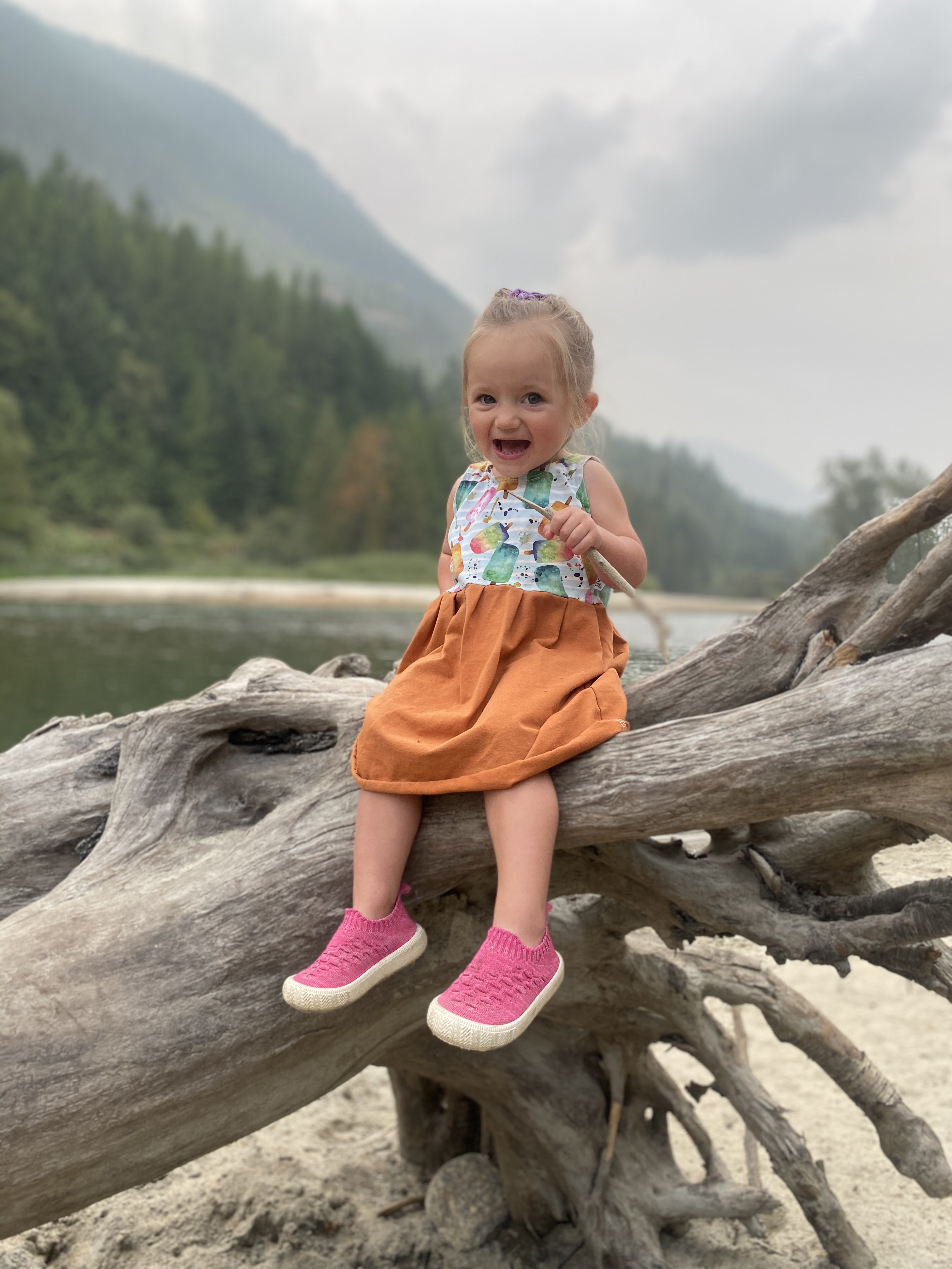 We finally had a bit of time where our schedules were not so rushed and decided to hit the road for a few days. With the truck fully loaded and thick smoke filling the air we headed east to Kaslo with hopes of blue sky. One ferry ride and four hours driving later we were setting up our car camping tent at the Kaslo municipal campground, in the thick smoke. I guess we were not going to avoid the forest fires aftermath after all. Camp stove dinner, a casual evening and cooler temperatures had us ready for bed shortly after dark. The girls however had different plans in mind. Being fully charged from sleeping on the drive had them bounding around the tent like it was a bouncy castle.