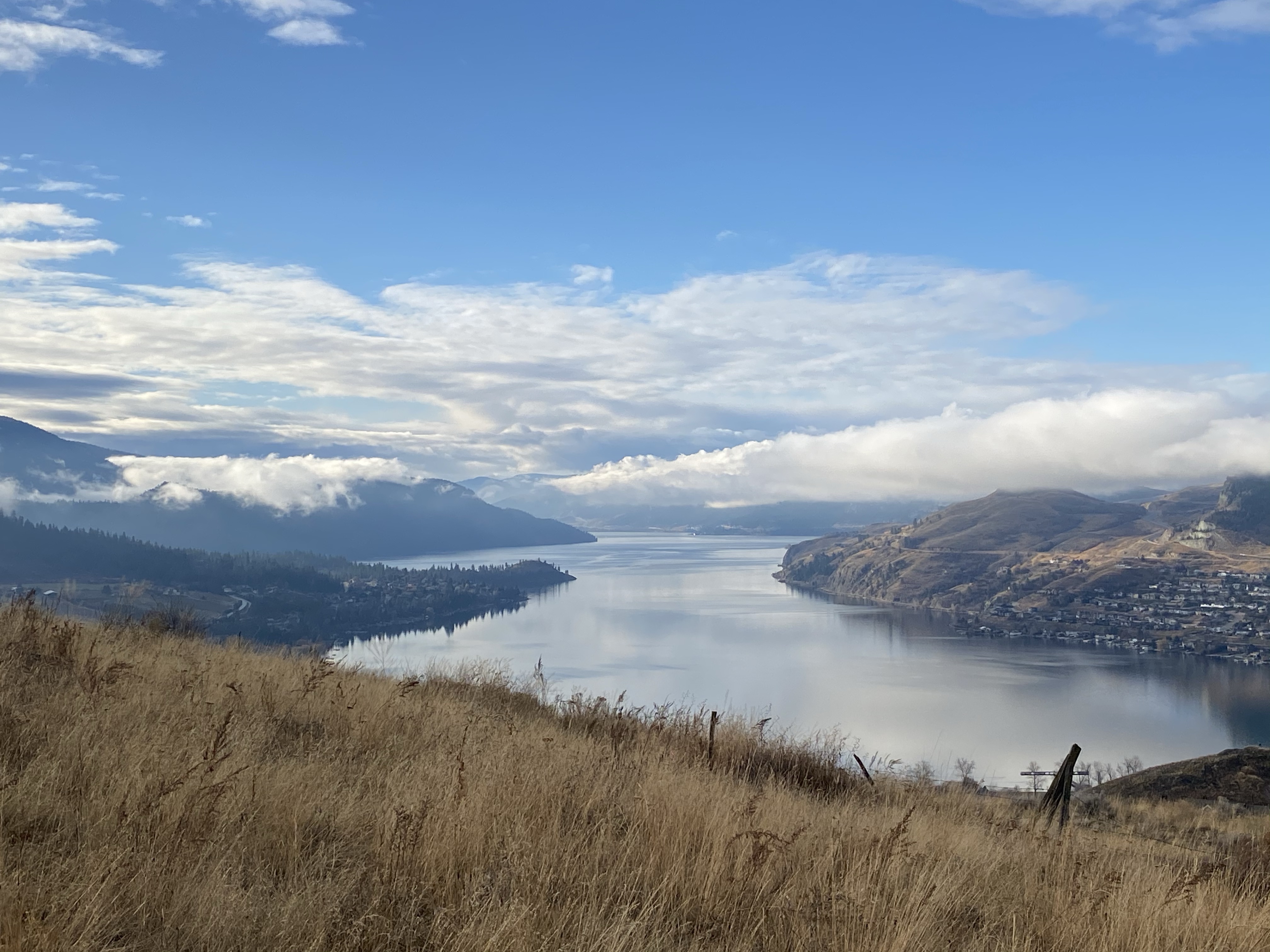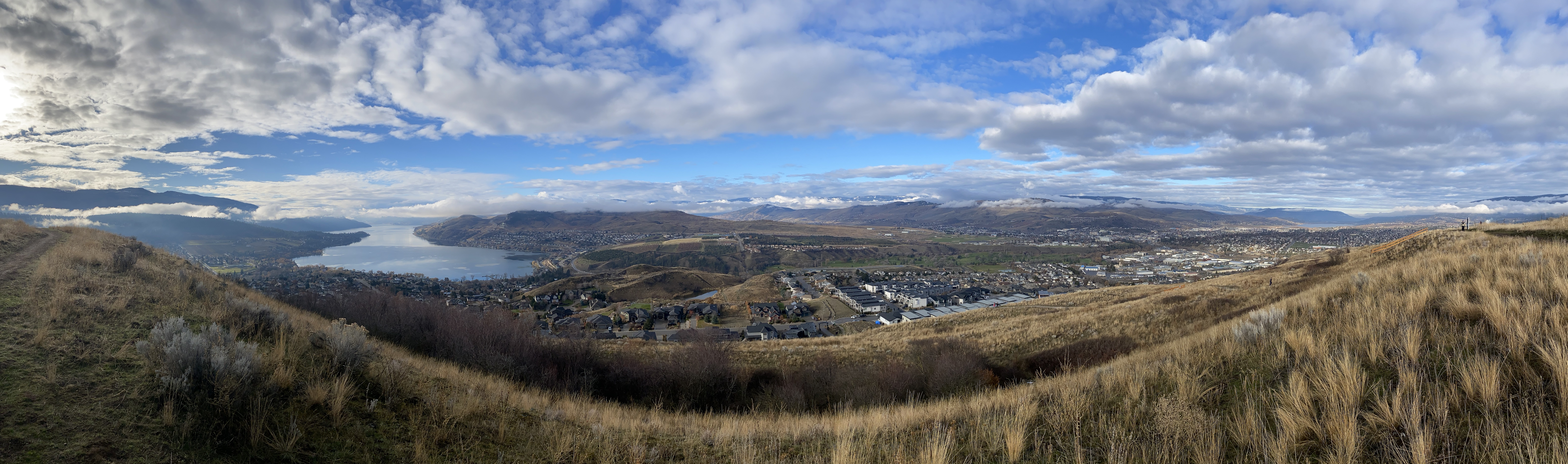 With the daylight hours shrinking so rapidly and the snow line getting lower on the hillside, getting out for a full day takes a bit more planning. This is where the local community trails starts to take over. As we close our front door behind us we set out on foot to Middleton Mountain Park and Hiking Trails. Middleton Mountain is a bald bump of sun bleached grass that straddles the boarder between Vernon and Coldstream. There are limited entrances and all of which start with a discouraging set of stairs or steep trail to the top. I know what your thinking, sounds rather drab and why would I want to take on that? The answer to this question reveals itself when you are at the top.