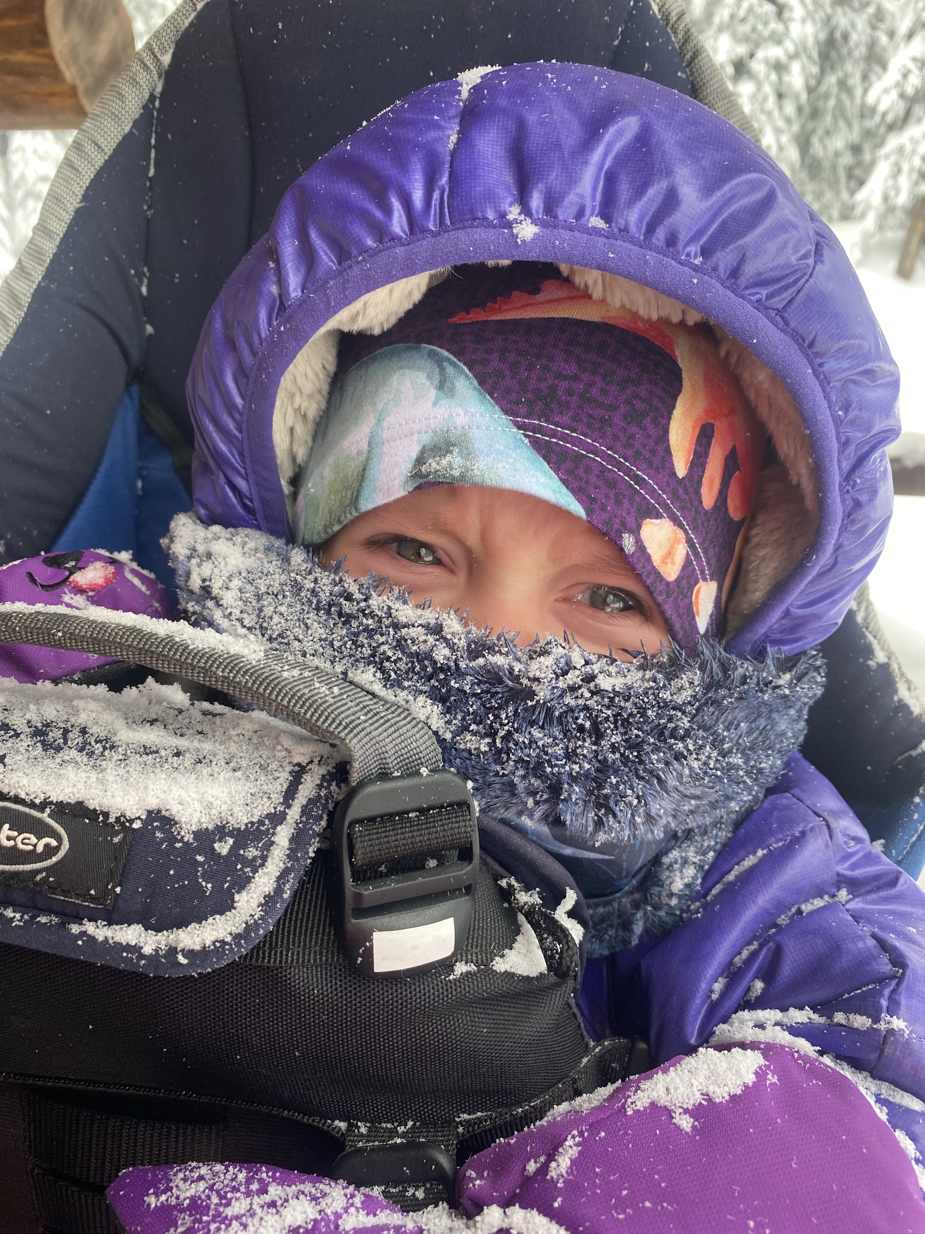 We have both skied and snow shoed with the girls on our backs in the past and always have the same troubles. While us two are always moving and working hard the girls are just dangling stagnant and feeling the cold. Dressing them for the conditions is always controversial.