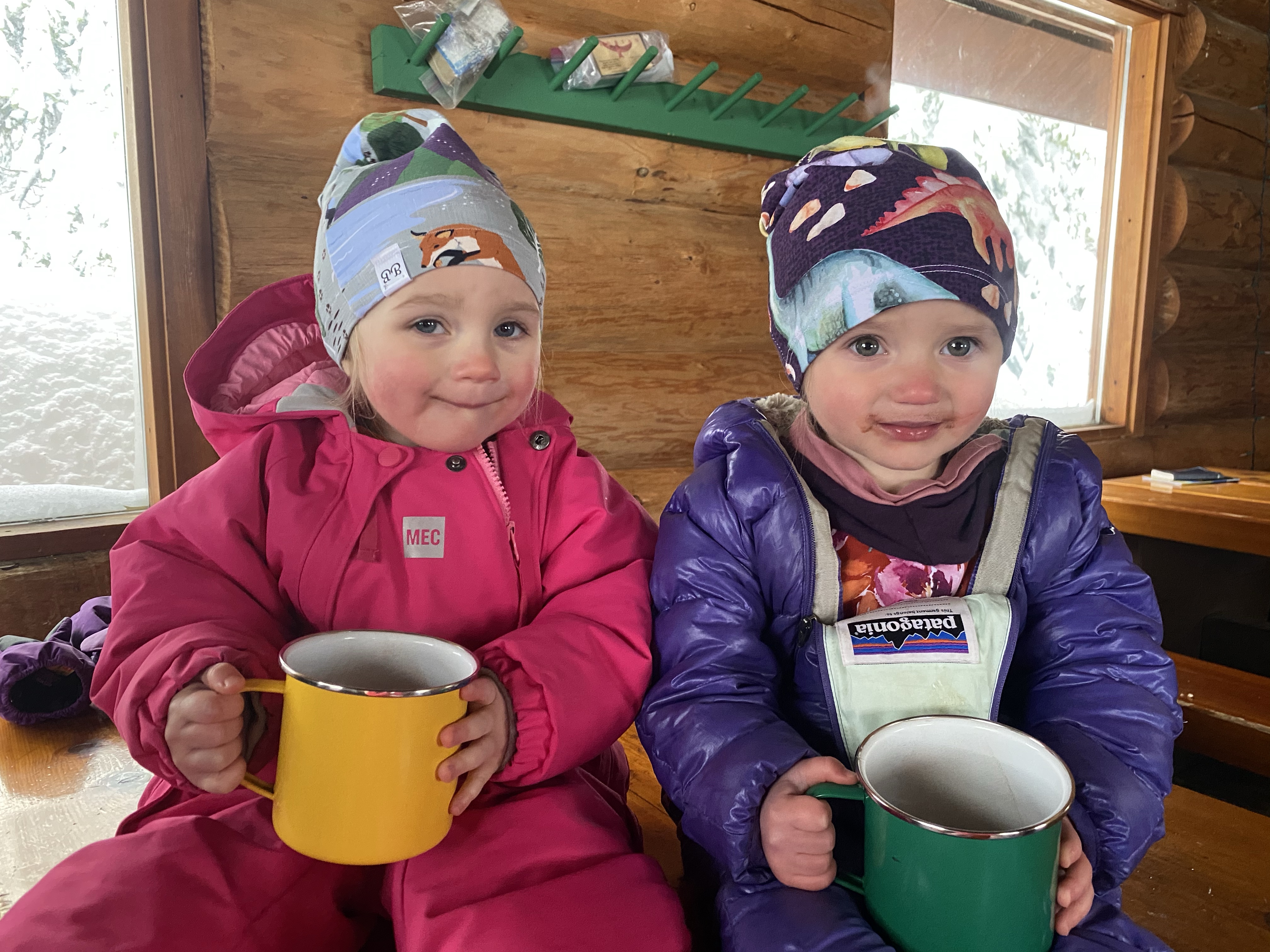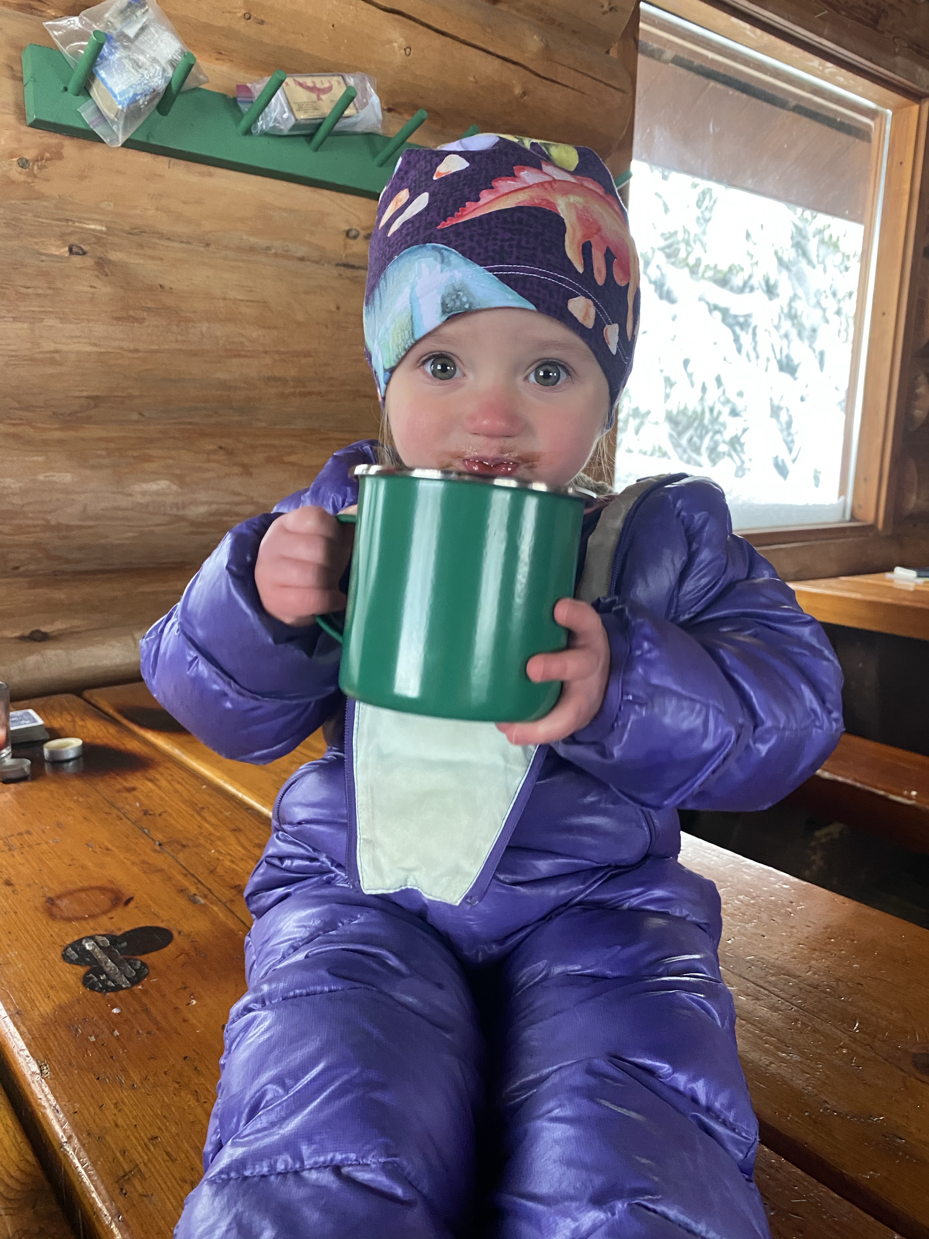After a little over an hour on the tracks we arrived at the cabin. By now the melting snow on all our faces was very chilling and the girls were starting to complain about cold feet and fingers. With the girls off loaded we served up some hot chocolate that we brought along and had some snacks as well. There is a wood burning stove within the building but as no one had started fire yet the air was still chilling. A fire was an option but with intentions of only being there for one mug of cocoa the building would not have increased in temperatures much if we had.