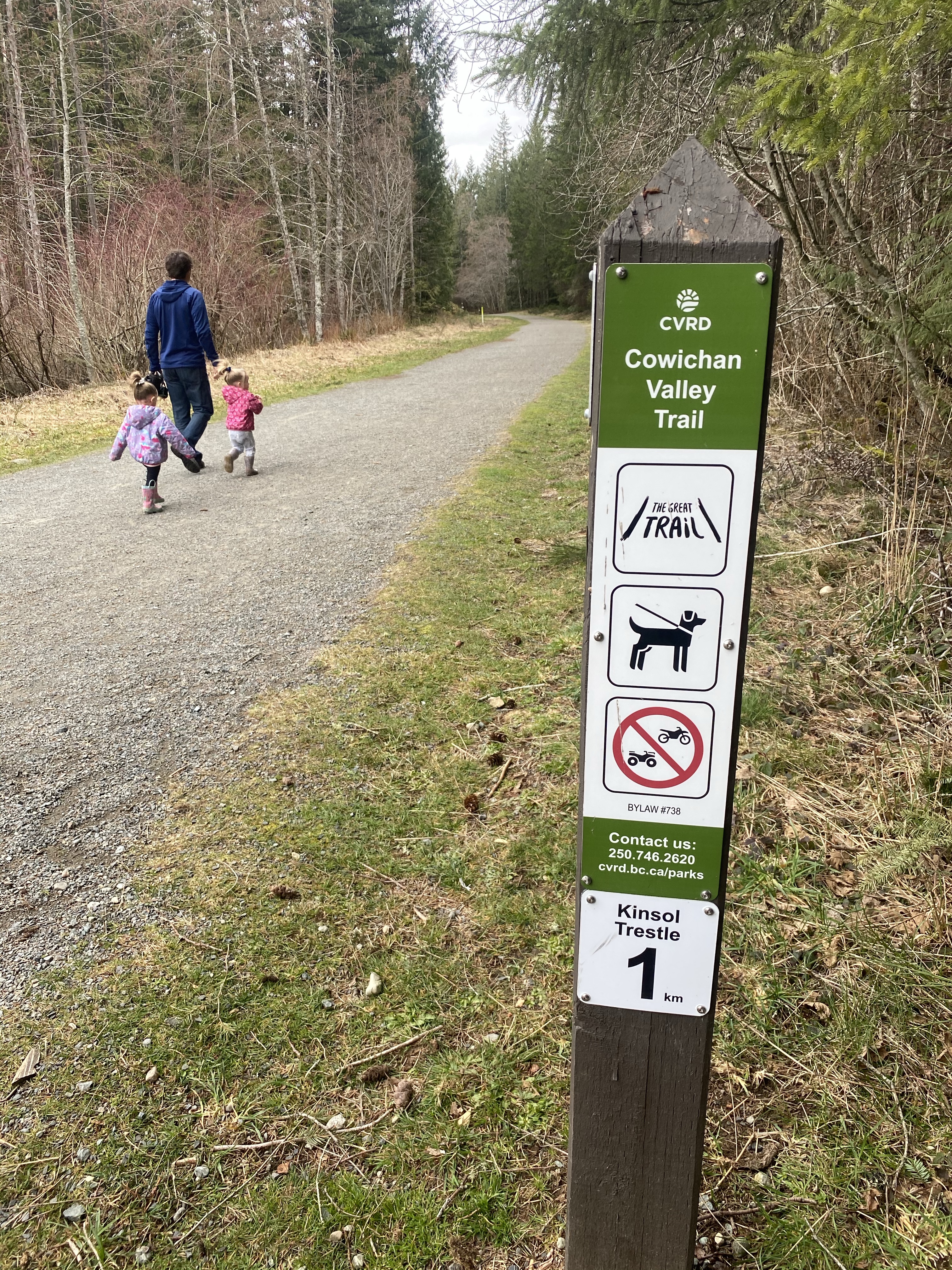 With early spring weather threatening rain for the day we made a choice for some close proximity outings with easy access to the truck incase the precipitation was to much. 45 kms south of Chemainus on Vancouver Island, we wind our way through the Cowichan valley, past Shawnigan Lake to the Kinsol Trestle parking lot. The Cowichan Valley Trail District (CVTD) has invested plenty of time and money into covering the old rail line into a network of walking paths, nearly 125 kms long. The old line was first constructed back in the early 1900s for the mining and logging industry and the Kinsol Trestle is by far the most spectacular.