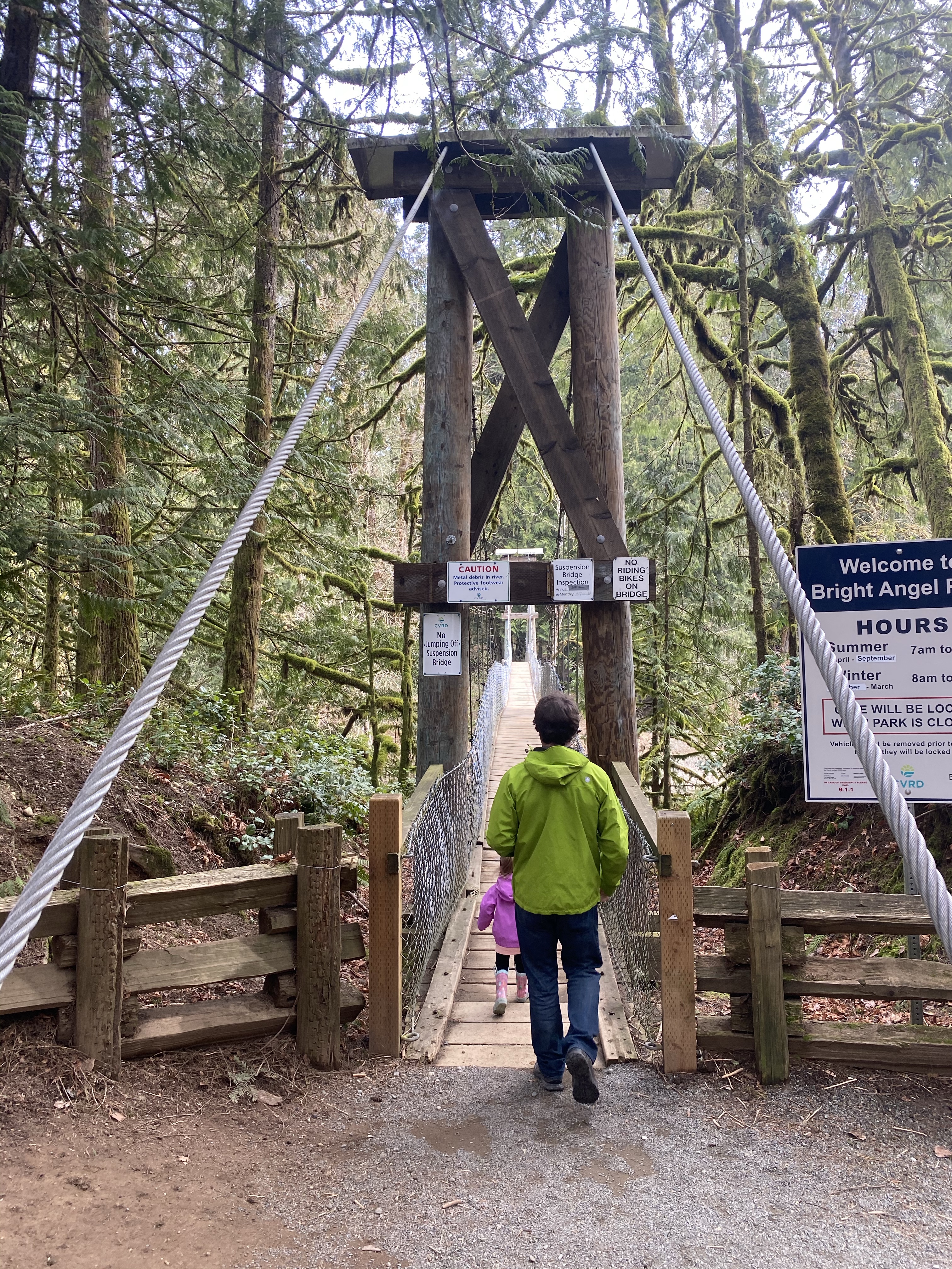 We made another stop on our way out at Bright Angel Park for lunch. The girls did a few laps of the play ground before we enjoyed another short little walk to the river. There was a pedestrian suspension bridge that accessed the opposite side for a network of walking trails and a great place to just get down to the water. The girls could have spent all day here throwing rocks into the water enjoying the sights and sounds they made as they broke the surface.