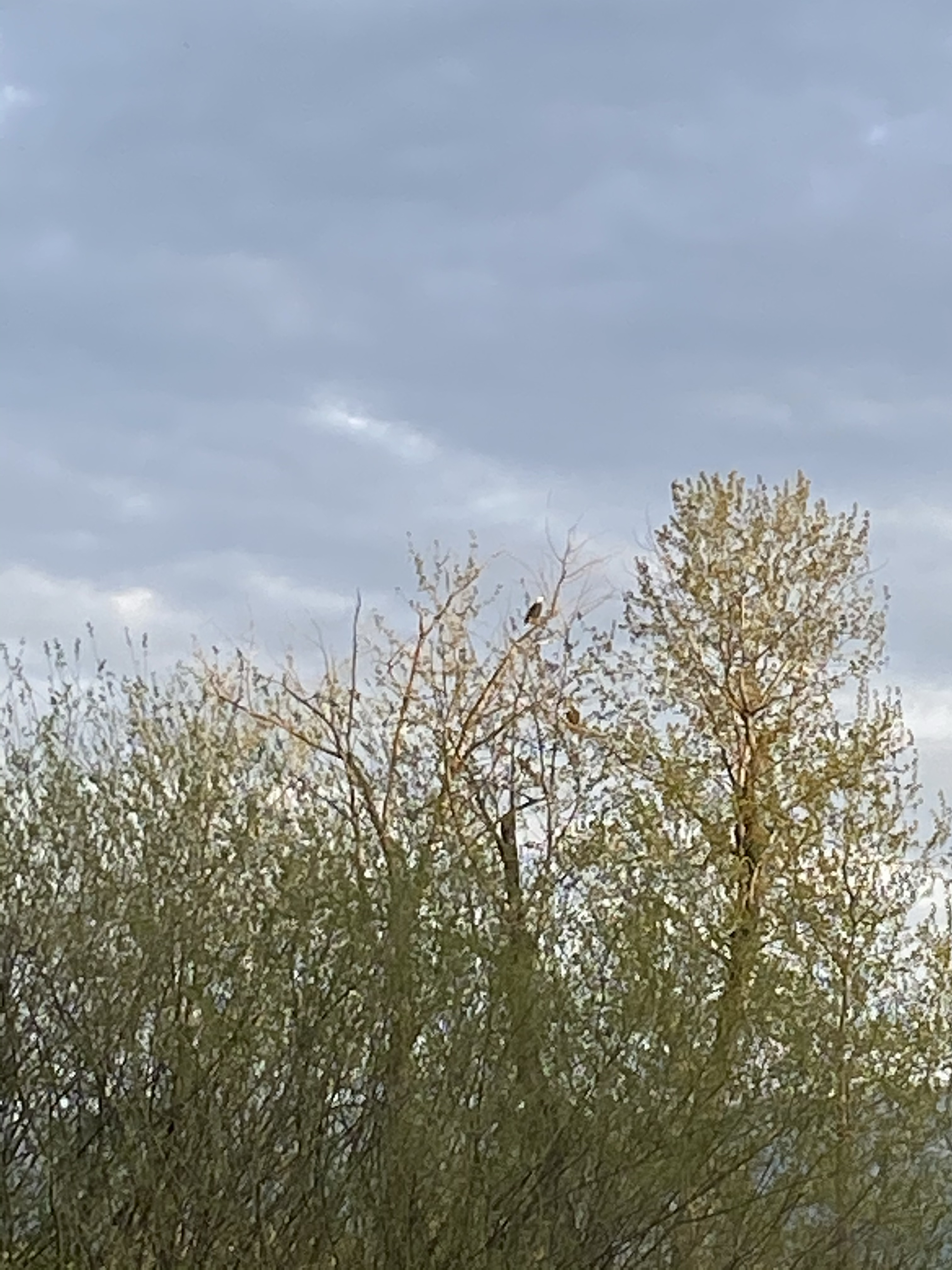 As we continued on, the path takes you along side a small creek that eventually flows through town and terminates in Okanagan Lake. From here as we looked east we noticed a Bald Eagle soaring overhead looking for food. As we followed it through the sky we noticed two others perched in a dead tree just across the way. Another couple hundred meters further took us back to the gated parking lot with our one lone vehicle.