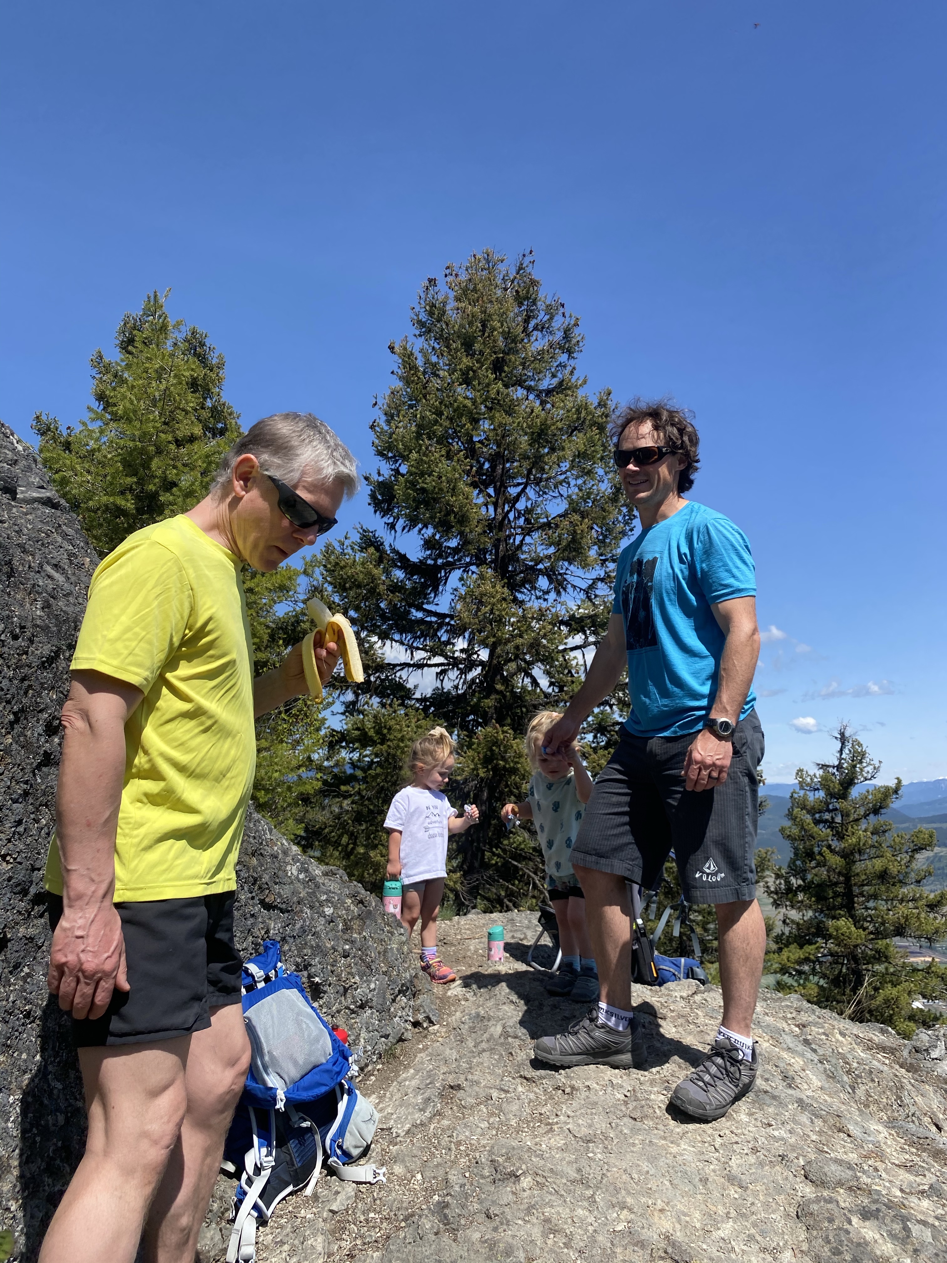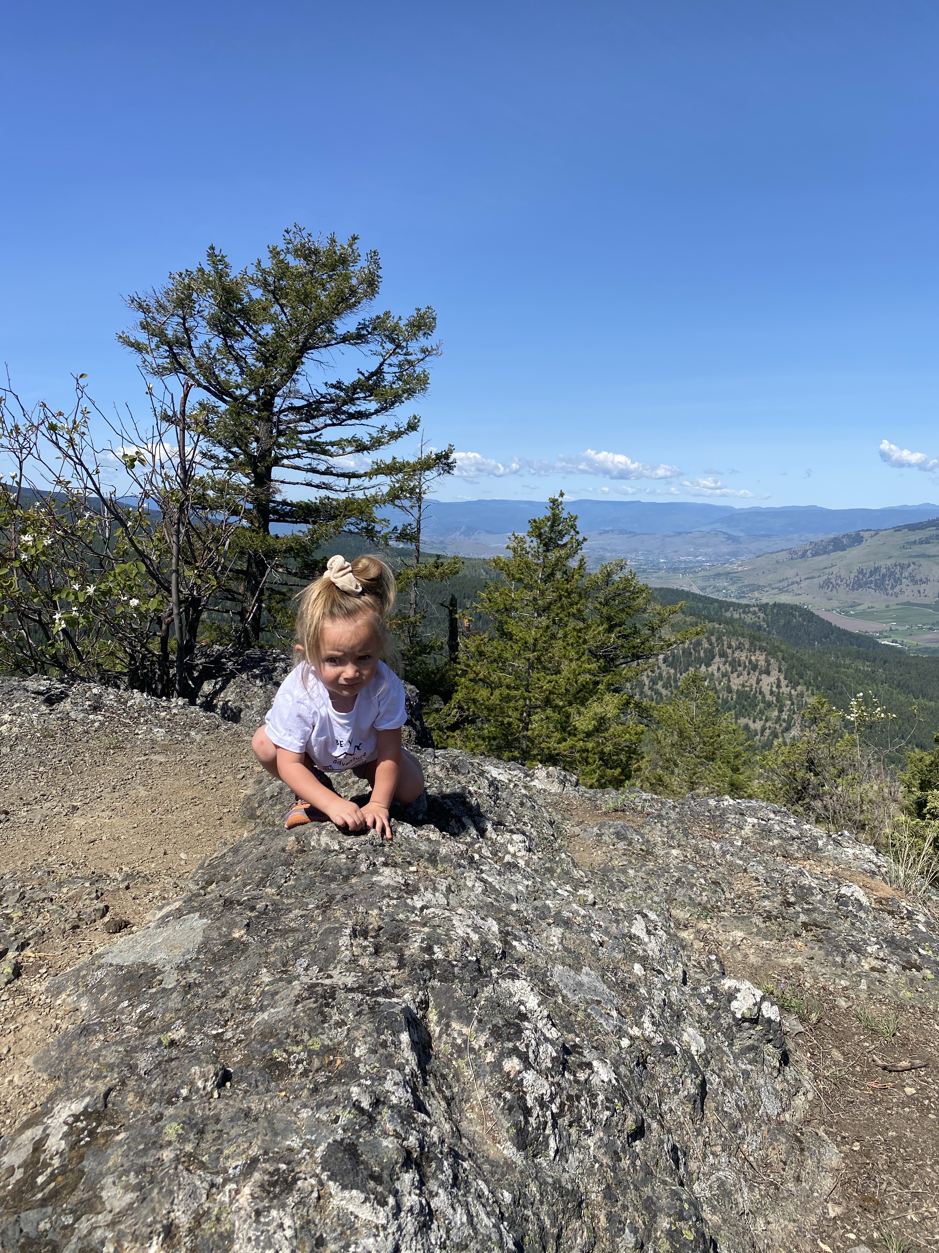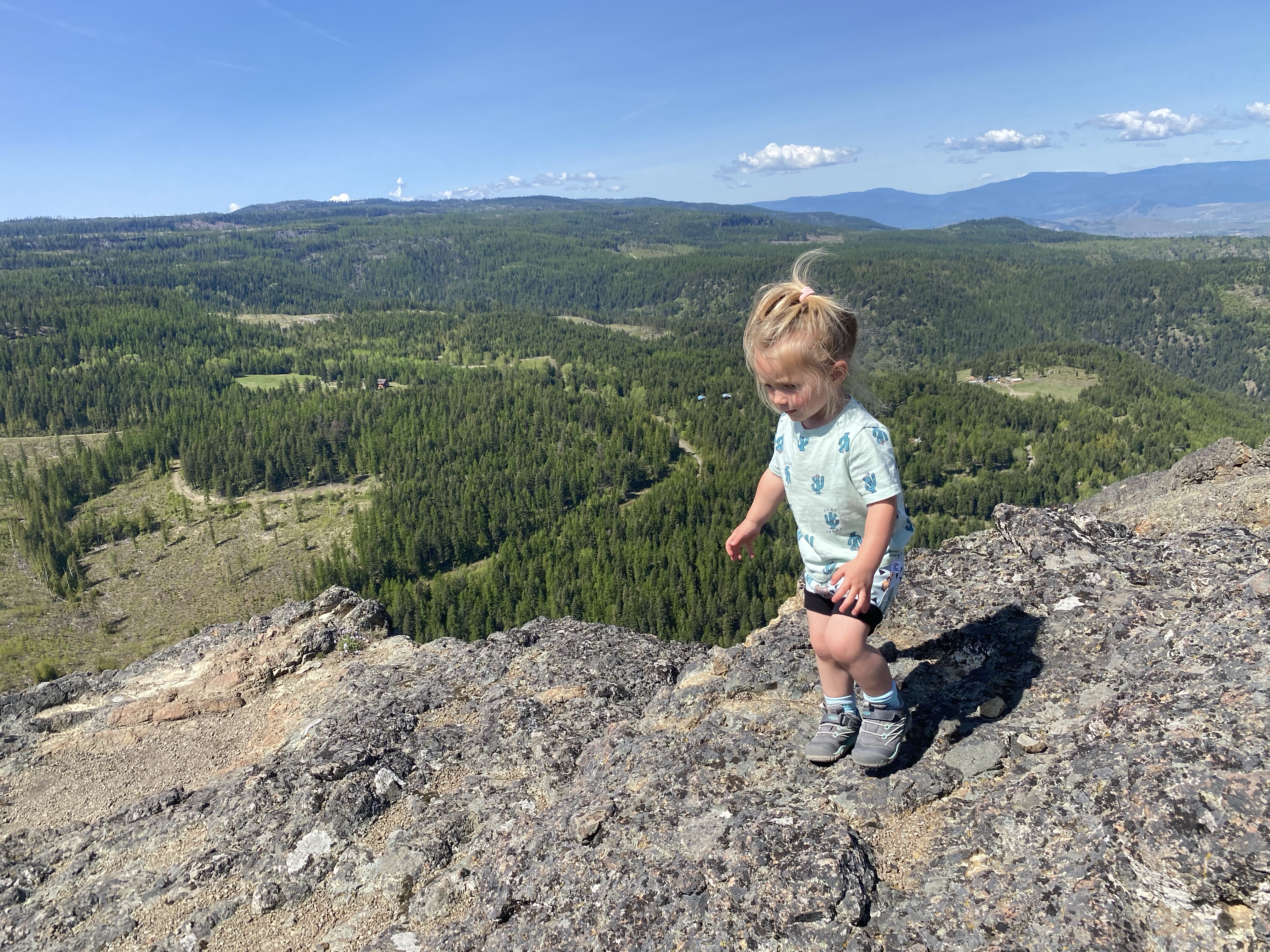This time around our adventurous neighbour, Bruce, decided to join our little family circus for the hike. Once in the parking lot the girls new exactly what needed to be done. Lidija hit the dirt running and Bexley spotted the carrier and made it very clear that she was getting loaded up from the start. We set off on foot for the steep and switchbacking journey to the summit of the first of three peeks. Bexley was more than happy to get out at the top and wander around freely. There were however some cliff edges in the area so extra care was added to teach the girls about safe distances and such.
