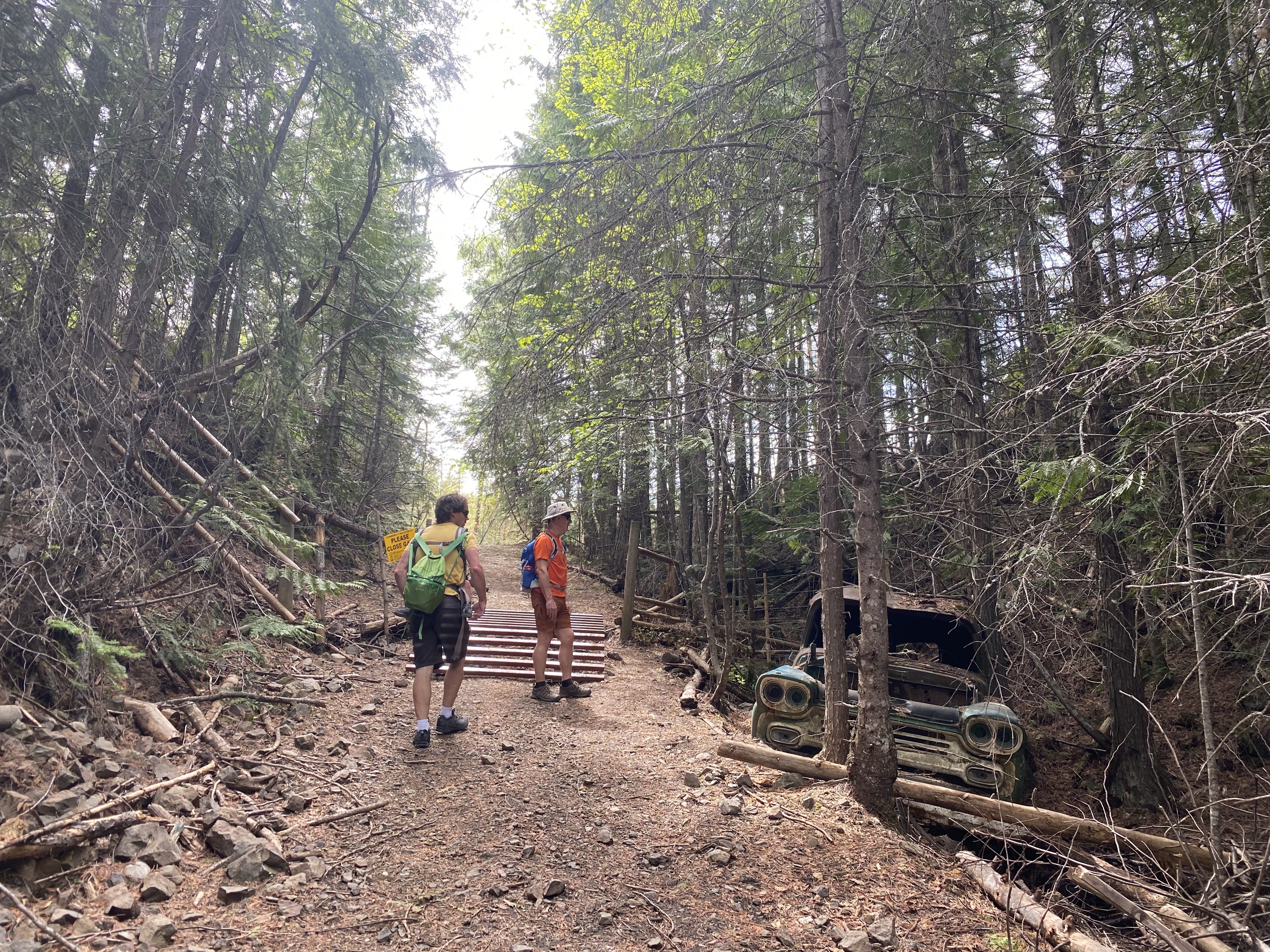 As we turned our back to the cliff and made our way back to the truck we decided to make our own way out rather than climbing back up to the top. This was not the most time effective decision as there was no clear indication of a trail. We managed to get off the rock borders and make it to the trees. From here we came across a private property fence line that respectfully advises you to stay off their land. We chose to do so and follow the fence line to the left. This led up through some bushes, trees and scrubs before making a hard 90 and into some swamp land filled with skunk cabbage and a remarkably high amount of frogs. Somehow making it out with dry feet and no frog casualties we were back onto the FSR for a short 2 minute jaunt down hill and back to the truck.