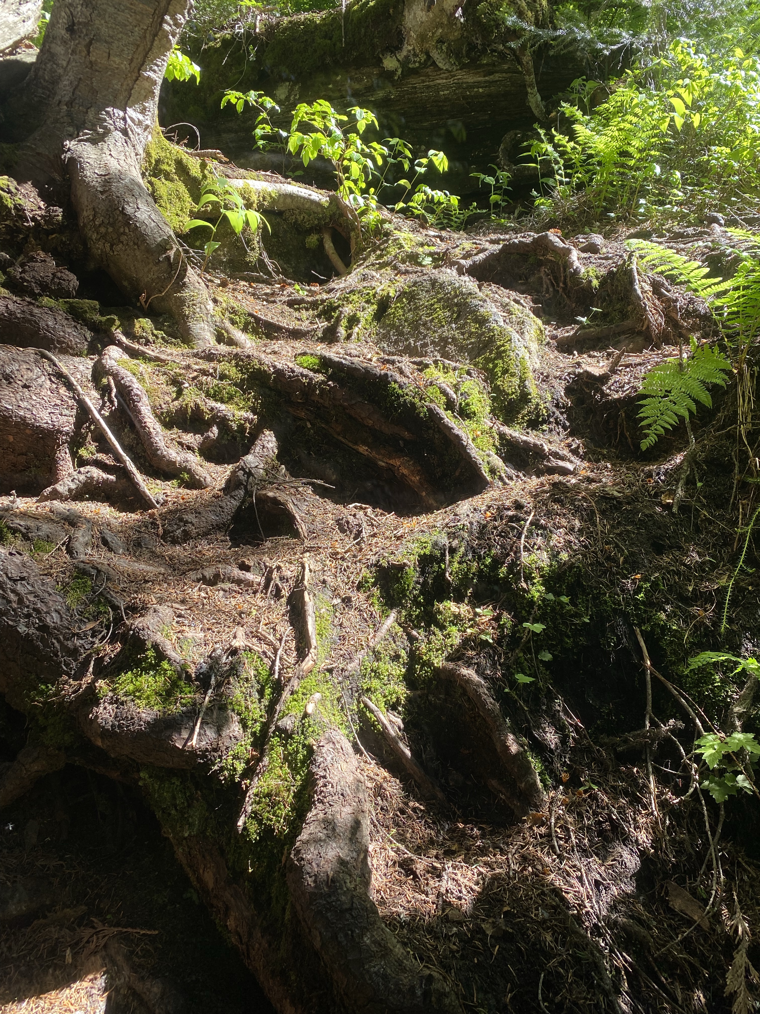 In the clearings is where we were reminded that the stinging nettle was out in full force. That was our next challenge, to avoid it as best we could. After around the 3km mark the trail shifted and we started to climb. The final kilometre is where you gain most of your elevation as the switchbacks take us along the amazing waterfall and right to the lake. This is the earliest we have hiked this trail before and the water was so much more than just a trickle like you see in late summer.