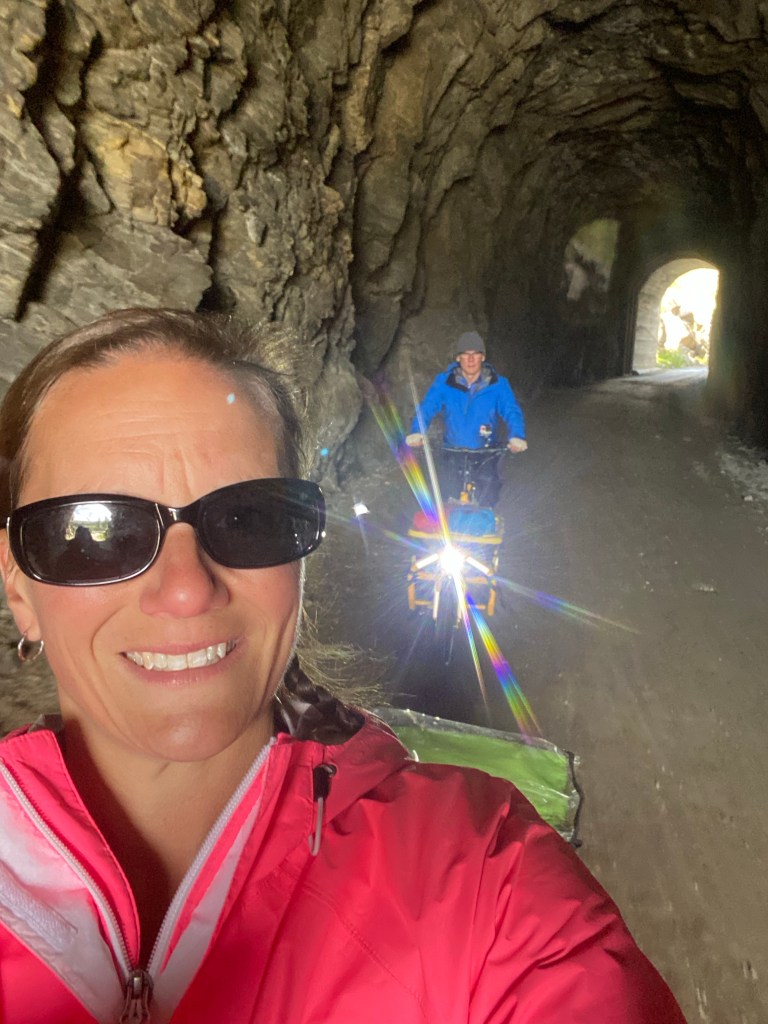 We stopped for a quick hello and some trestle information from the friendly staff at the on site bike rental company. The remaining 13 kms for our day and the trip was perfectly completed with 17 historic trestles and 2 tunnels. The trail through this section was by far the best as they are constantly being maintained. This results in a slight descend that lets you focus your attention on the nature, distant scenery and the engineering marvel of the trestles rather than picking your line as you dodge rocks and dips. There were a total of 18 wooden trestles originally built and two of them were retrofitted with steel support in the 1930’s while the track was still in use. A wild fire in 2003 burned 12 of the wooden structures and caused significant damage to the two steel trestles as well. After 5 years and $17 million from the federal and provincial governments the trestles were restored back to like new conditions for everyone to enjoy at their leisure.