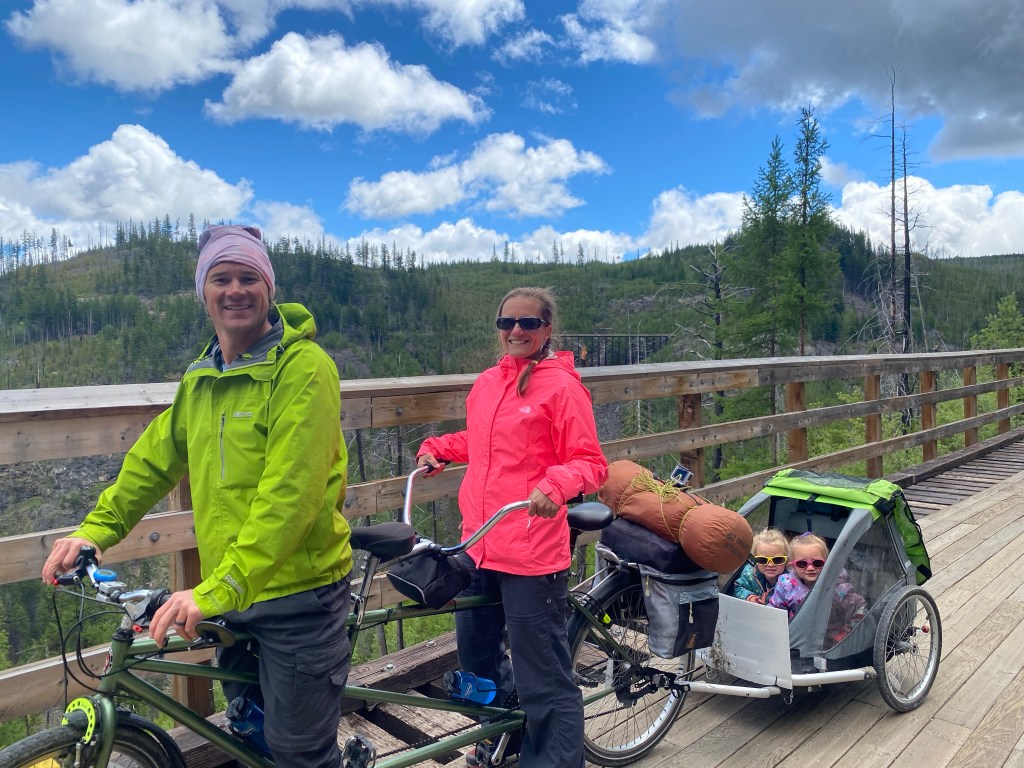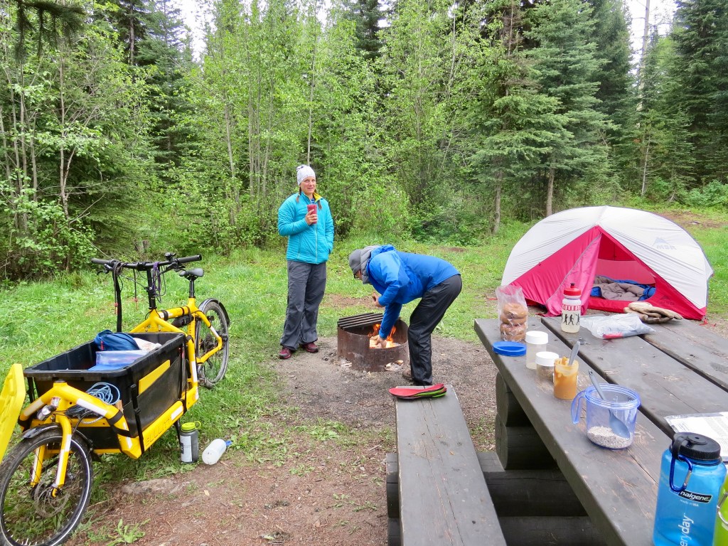 We started off with one state-of-the-art cargo bike and a Norco tandem from the 80’s towing a used trailer that was designed for the pavement. Two bikes at either end of the spectrum but both served its purpose perfectly. With minimal planning and 156 kms we had zero flat tires, zero broken spokes and weather that was primarily not on our side. We had a constant up hill climb, with sand patches, bolder fields, creek crossings and trail blockades, 36 degree sun in the low lands and falling snow in the mountains. The results were camp fires, laughing children, stronger relationships and memories that will never fade. And that is the real reason why we do things like this.