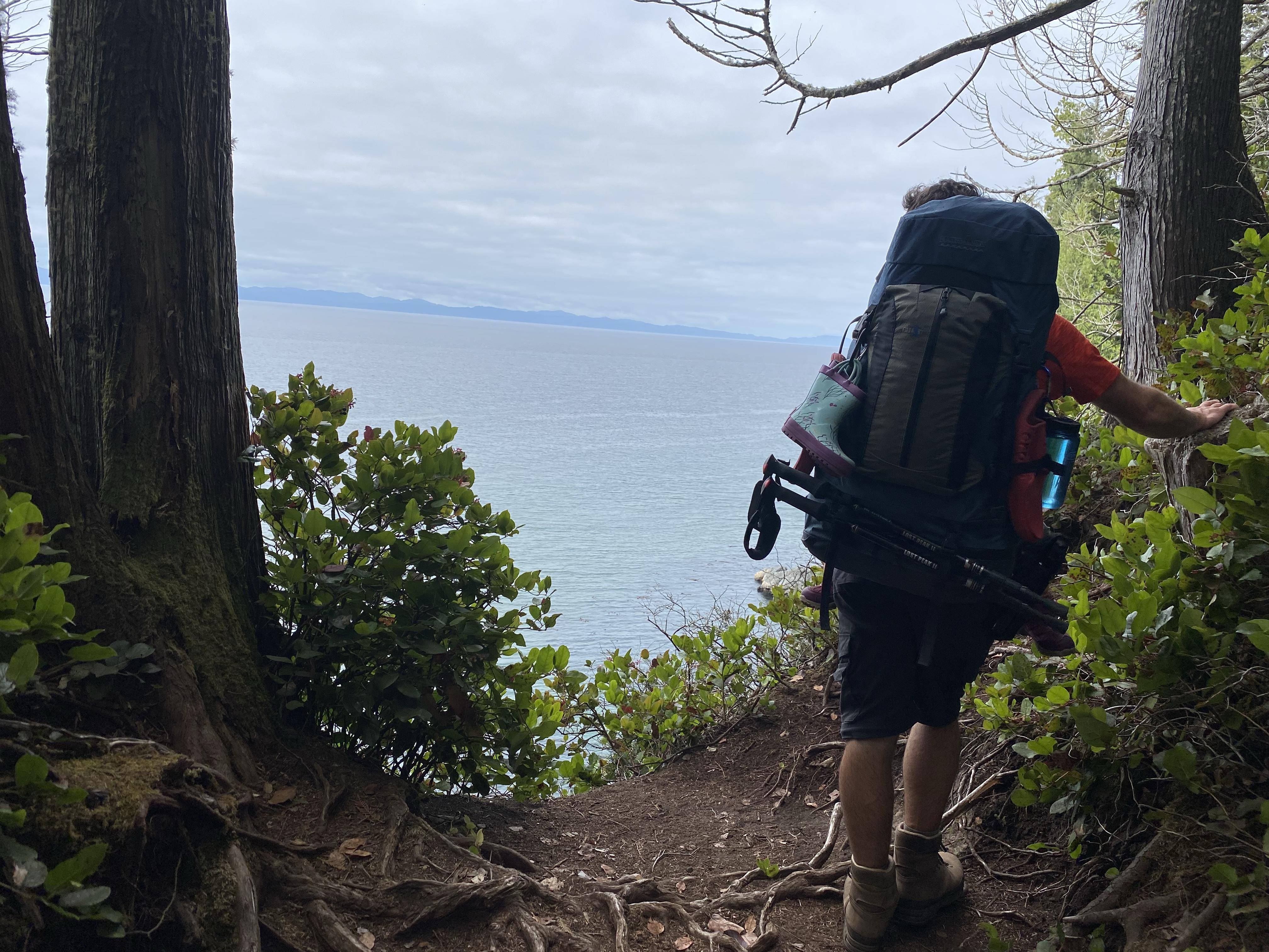 We originally had some rather concrete plans on heading to the rockies. Our neighbour friends and ourselves had, on some levels, won the lottery with reservations for The Berg Lake Trail within Mount Robson Provincial Park for four nights. But like many situations in the past, for example climbing Mount Saint Helens (COVID 19), Caribbean sailing (boat repairs) and Middle East tour (blood clot) it would have to be cancelled or put on hold for a bit. This hiking adventure was delayed due to a heat wave that created above average snow melt that would have the rivers blow its banks and destroy numerous paths, campgrounds, facilities and bridges. So what do we do now? Having only a couple days notice of its closure, booked time off work and no reservations in any other location, we had to think fast. This coupled with intense heat of August and an extremely smoky fire season had us thinking of Vancouver Island. With our gear basically loaded, we simply just swapped out a few items and headed west. We made it to Abbotsford the first night for a stop over visit with some friends then continued to the ferry and on past Sooke to the China Beach parking lot and the trailhead of the Juan de Fuca Marine Trail.