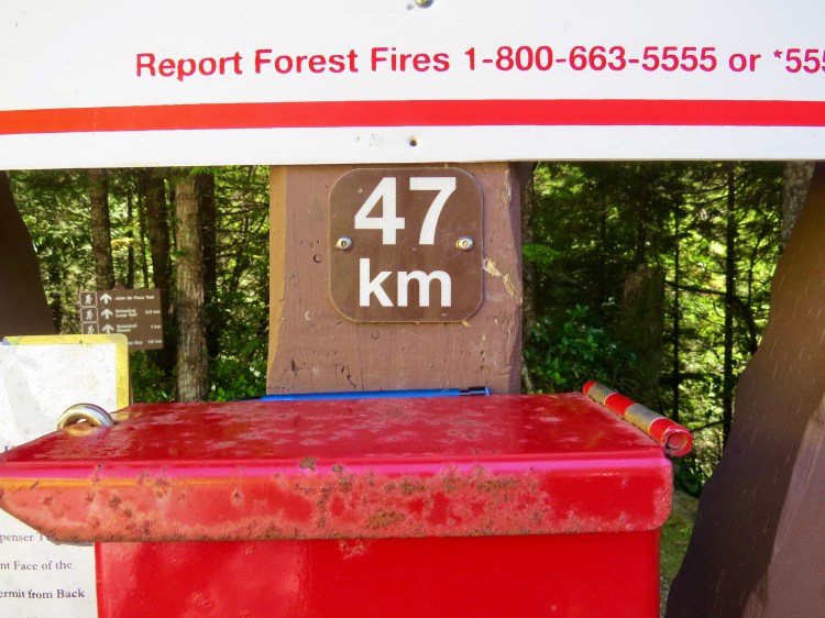 The park had set up some boards displaying information from trail history to flora and fauna descriptions. After four kilometres we were starting to feel fairly out of place as we would come across day hikers with their clean and fresh smelling clothes. Their tennis shoes and skinny jeans were a clear indication that we were not far from the end now.