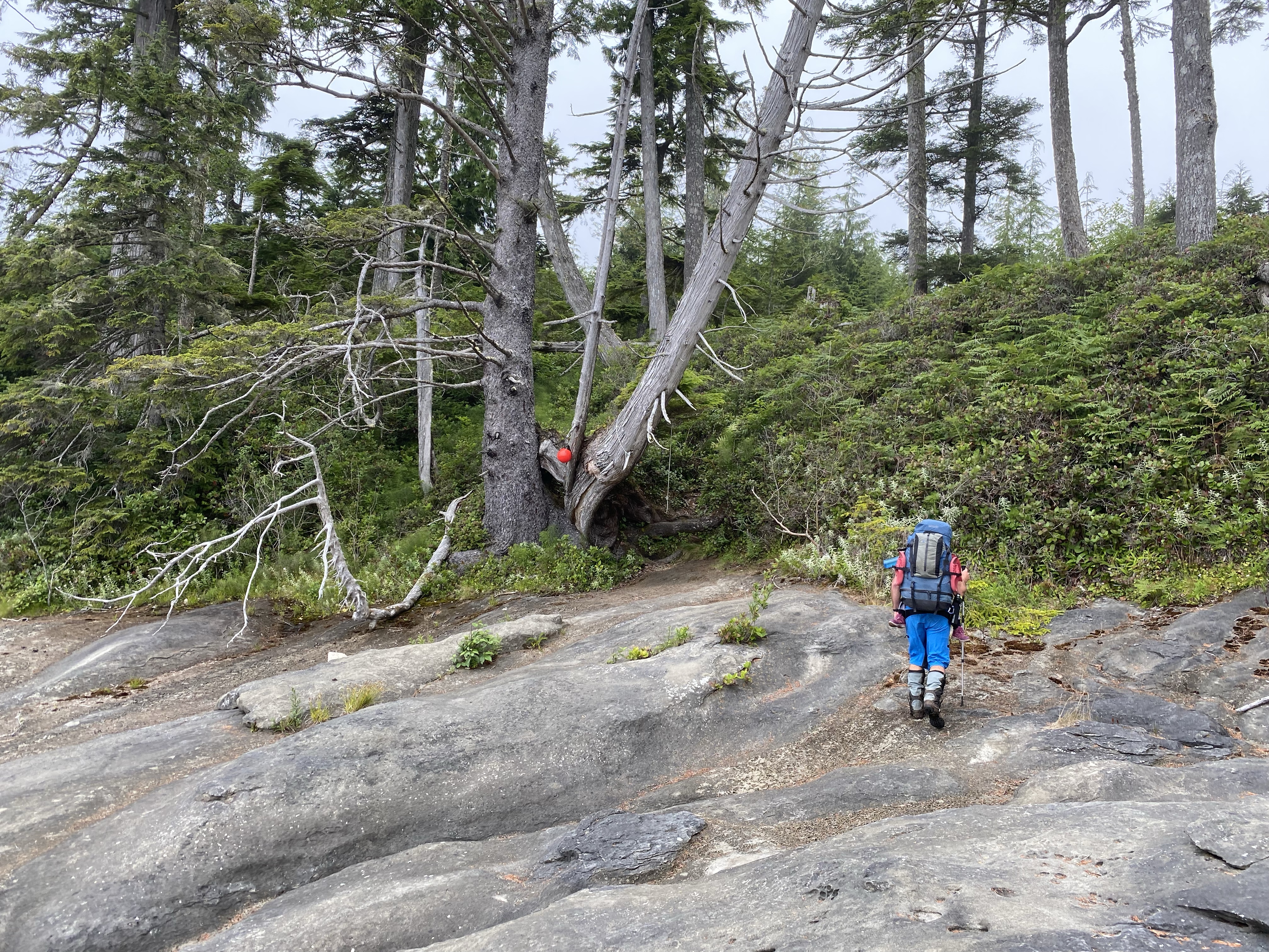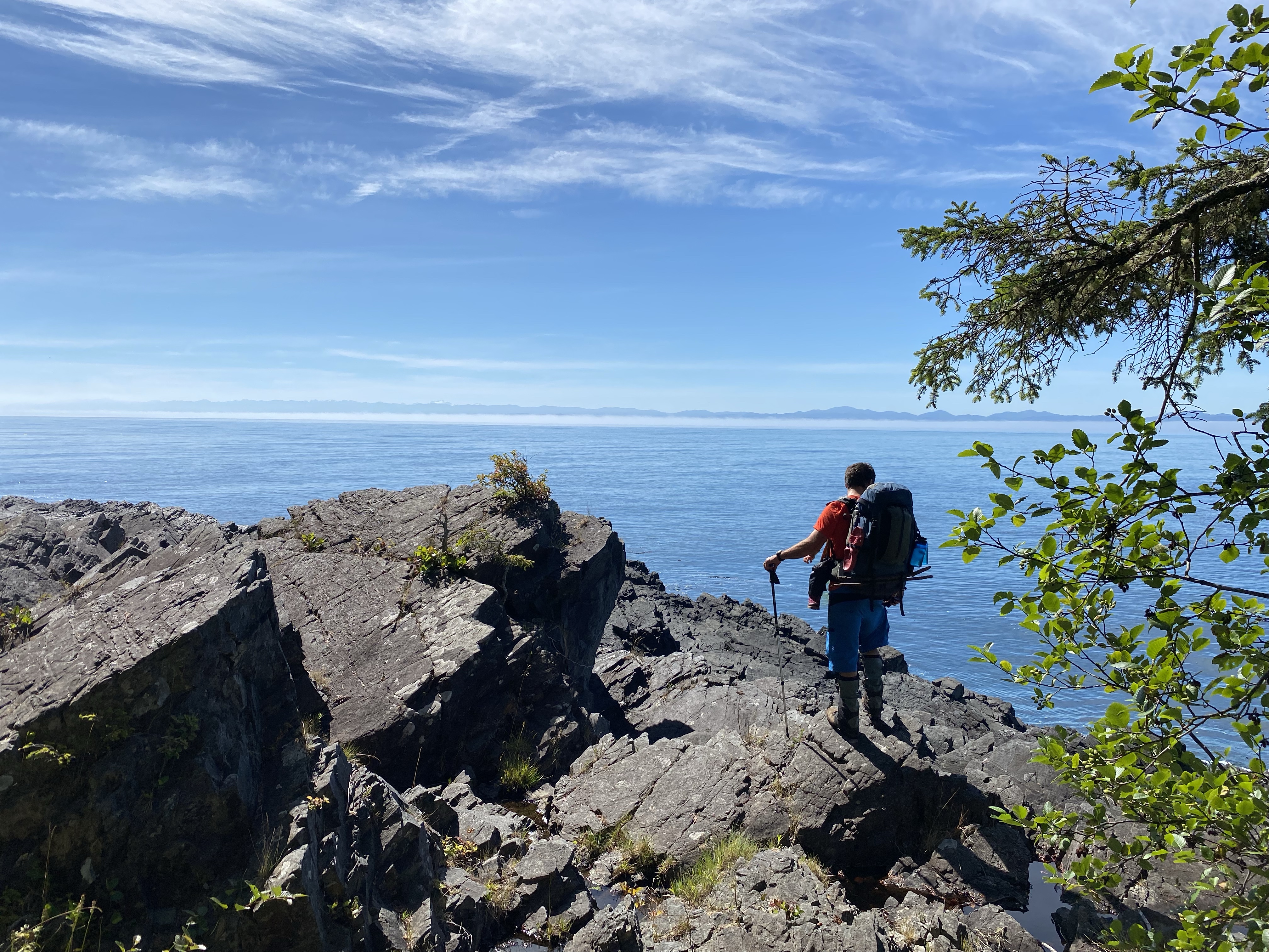 The following morning was bitter sweet for all of us I think. Today was going to be our last day of hiking. Waking up under a thick morning fog leaves a prehistoric feeling in the air. At this point in the hike our food quantities had been askew. We heated up a small portion of what ever oatmeal we had remaining then topped off our hunger gap with some macaroni and cheese. What ever food we had remaining was turned into some snacks and with a couple donations from our hiking companions we felt confident that we should make it to the end of the line without growing weak. After a load up on water, the bags were packed up and our two groups headed out as one. Today was slated to be one of the easier and shorter days and indeed it was. We looped passed Providence Cove and moved on. We could tell that we were getting closer to civilization as the trail was adequately maintained and more user friendly. The mud was very limited and ocean views were plentiful. By mid morning the fog had lifted and blue sky was shining down on us once again.