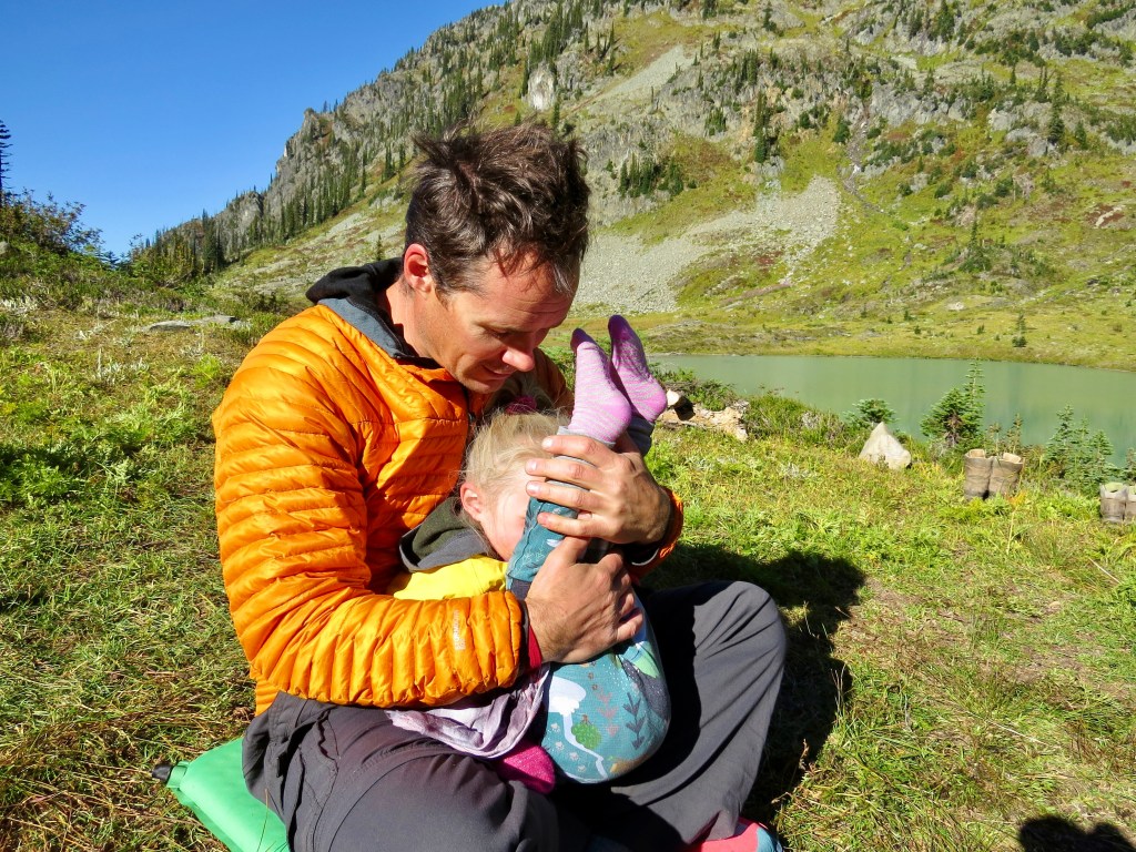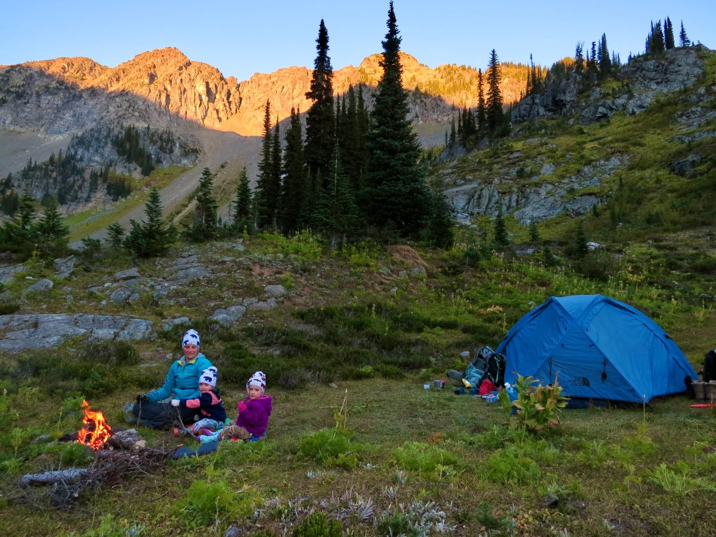 This was the perfect turn around point for us so we loaded the girls in the carriers and started on our way down. We returned back to the comfort of our tent in an hour and had plans of relaxing the rest of the day away in the sun. The night prior had a handful of other tents in the area but they all seemed to clear out with the exception of two others today. Fortunately for us they were tucked away on the hillside leaving us in total solitude. The girls and I gathered some dead timber and started a little fire as Shannon prepared the nights dinner. We managed to make it to 9:30 before watering down the flames and hiding away for another peacefully nights sleep.