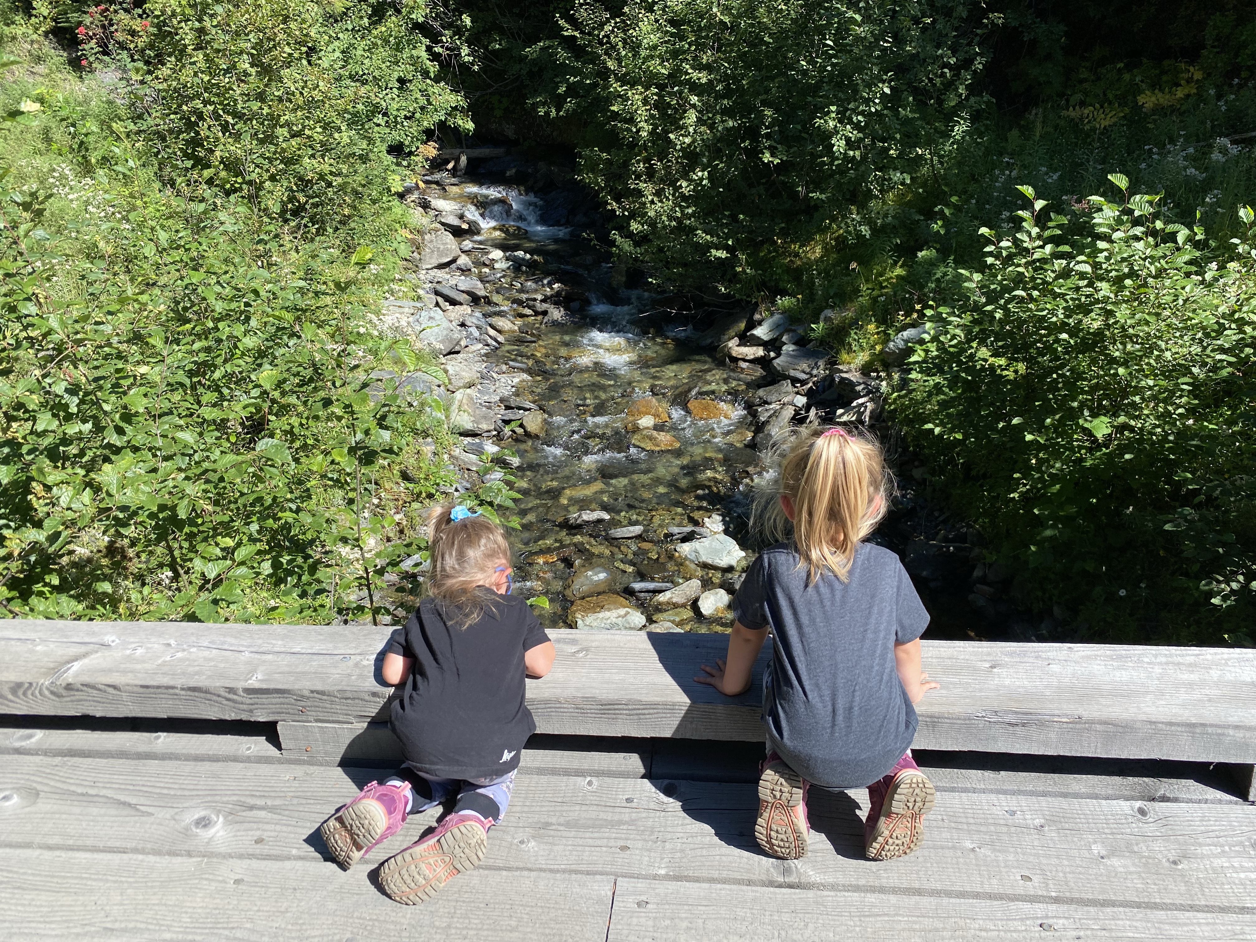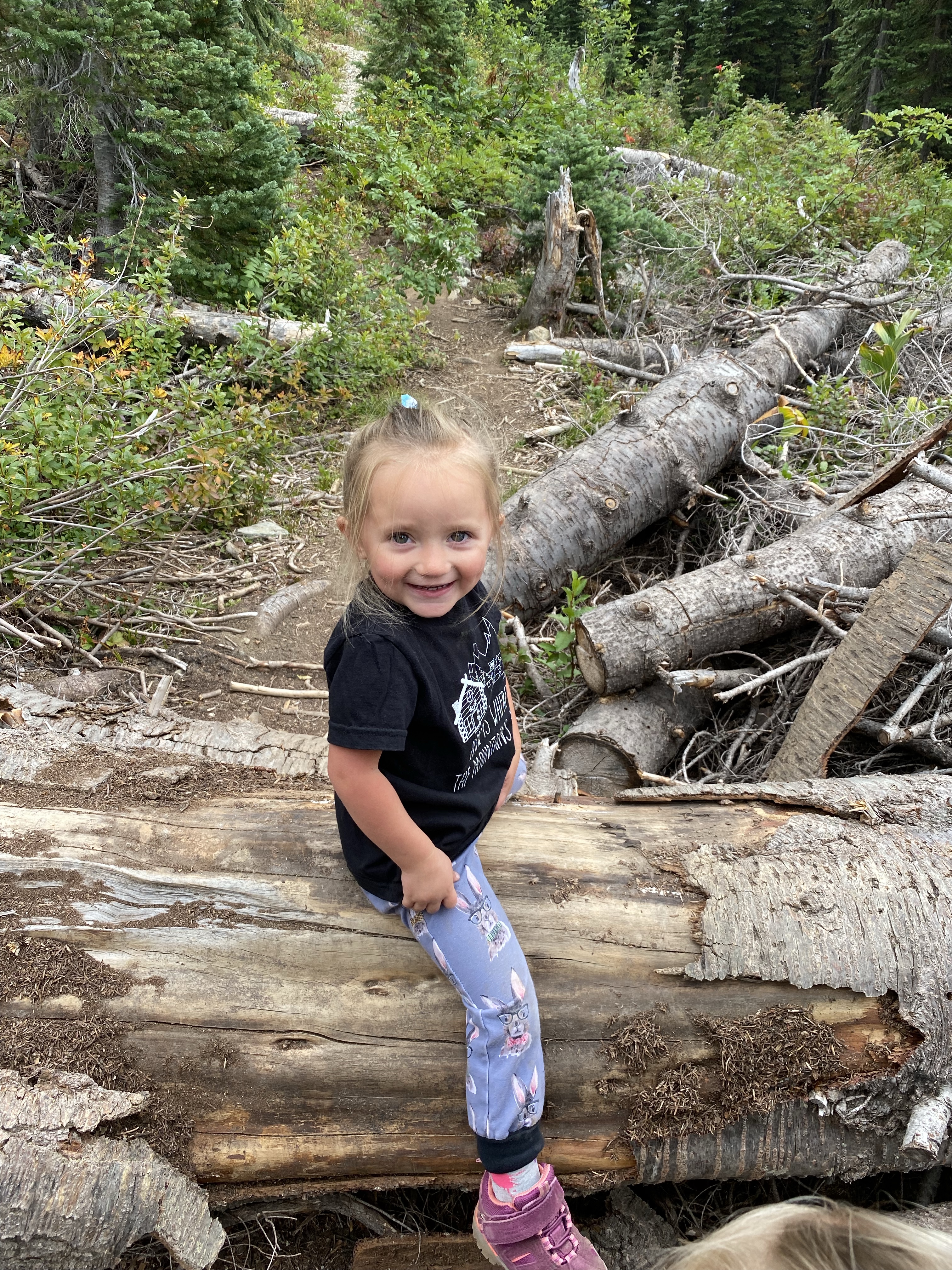 Waking on day two was as everyone would hope for. There was not a cloud in the sky, the smoke had passed and the shadows slowly disappeared as the sun would made its way over the towering peaks behind us. We all sat down to a warm bowl of porridge and hot drinks to take the chill off the 5°C morning. The twins chased each other around as we packed our gear for the days tour. Come 10:00 we were all laced up and ready to start walking. Most people have a destination of climbing to the top of Mount Brennan from here but sitting at 2900m we chose to just see how far we would get at a comfortable pace and enjoy our surroundings. We had to loop back across the creek from the day prior then the well worn trail was easy to navigate even for our three year olds. The two littles started off on foot and just kept climbing. We like to encourage them and see what they can learn and do and their determination took them a long ways. The trail made a few switch backs before crossing a creek and leaving us exposed in rock debris and low lying shrubs. The trees had now thinned to nothing and we came across a few rubble piles from old deactivated mining sites. There was metal shrapnel surrounding the area with hidden stories from the days of the past.