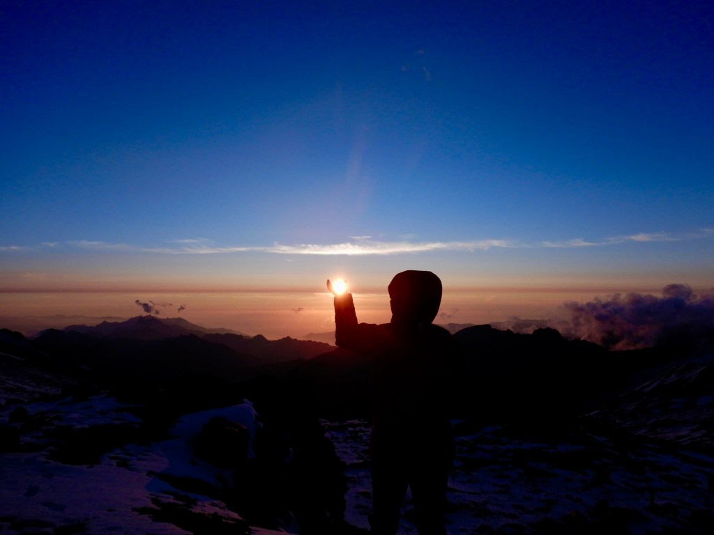 As the storm blew on the weather gradually changed back for the better. Come mid afternoon we milled around the camp and socialized with the other team mates. As medication was drastically improving our stomachs we were able to gain some energy and rehydrate as much as possible. We then learned that a second guide and another climbing member were feeling unfit to continue and made the tough choice to head back to base camp.  With a peaceful evening many chose to dine outside on whatever rock they could find to sit on. As the sun began to lower on another day in the mountains we were presented with another amazing sunset of astonishing colours. With the darkness came the cold so we promptly disappeared back into the comfort of our sleeping bags for hopefully a good nights sleep.