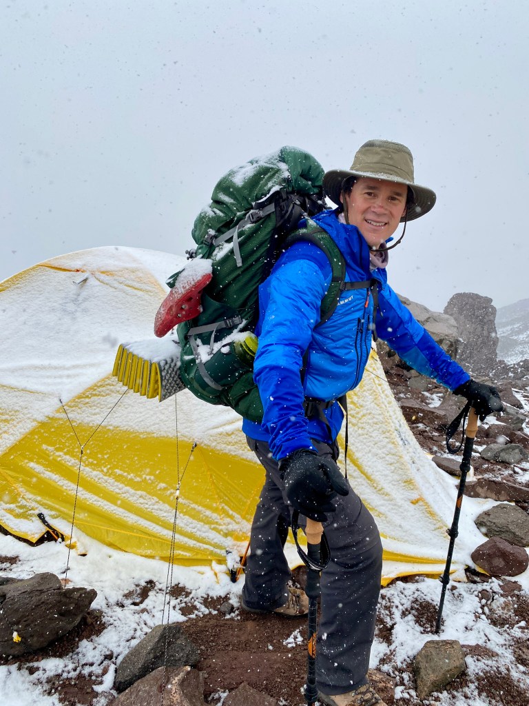 Great pictures! I was showing this to Richard. He said an unsuccessful climber he met on his climb reattempted it the next year and the weather was so bad they had to stay in those shelters in Camp Berlin. You had quite a bit of snow but doesn’t sound like it was too bad. Maggie