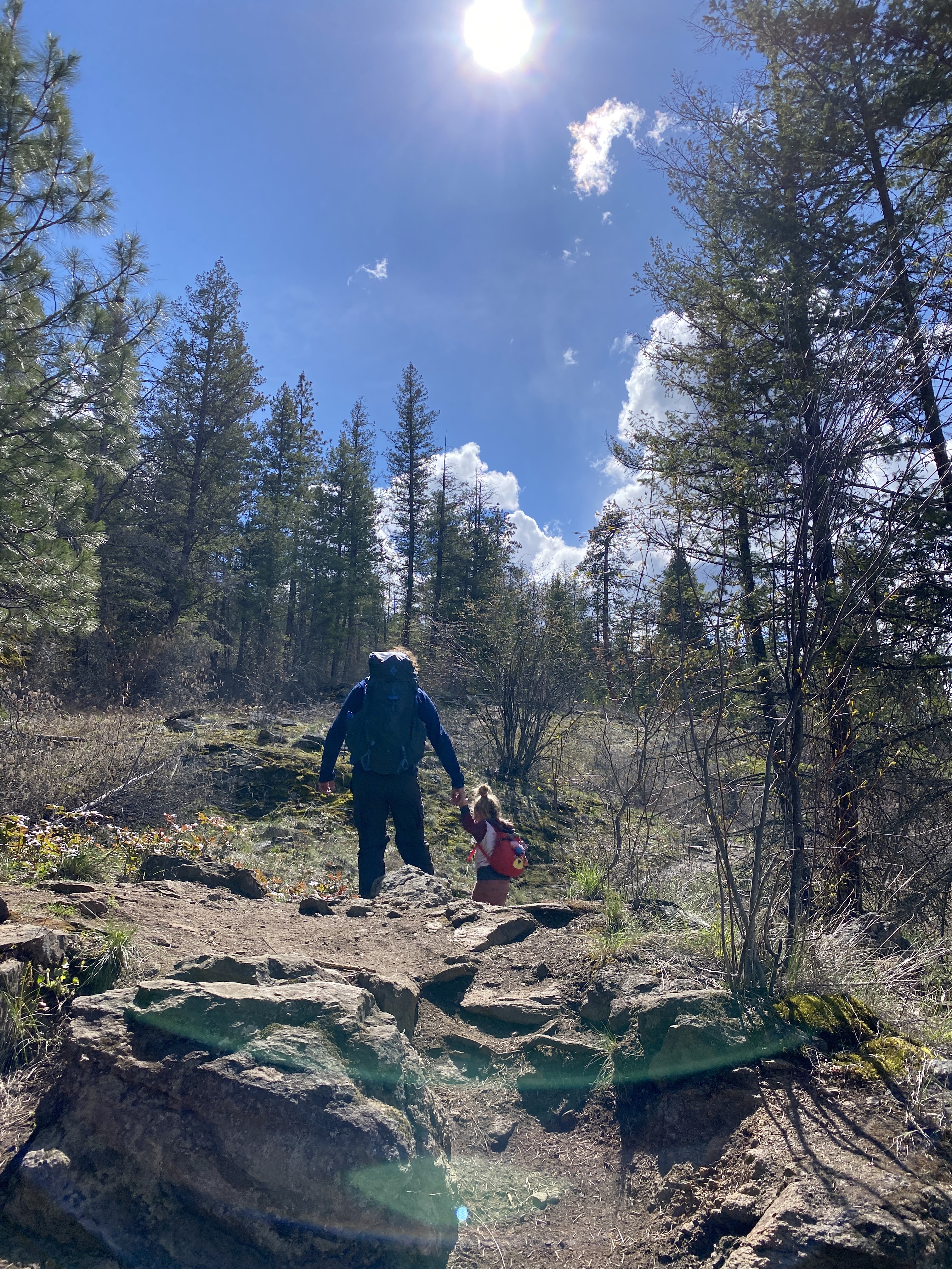 The sun was shining and the sky was blue on this early spring day. Loaded into the car we took an easy 15 minute drive and arrived at the Cougar Canyon parking lot within Kalamalka Lake Provincial Park in Vernon, B.C. The dirt lot has enough room for 20 some odd vehicles, and is often full with biking, hiking and climbing enthusiasts.