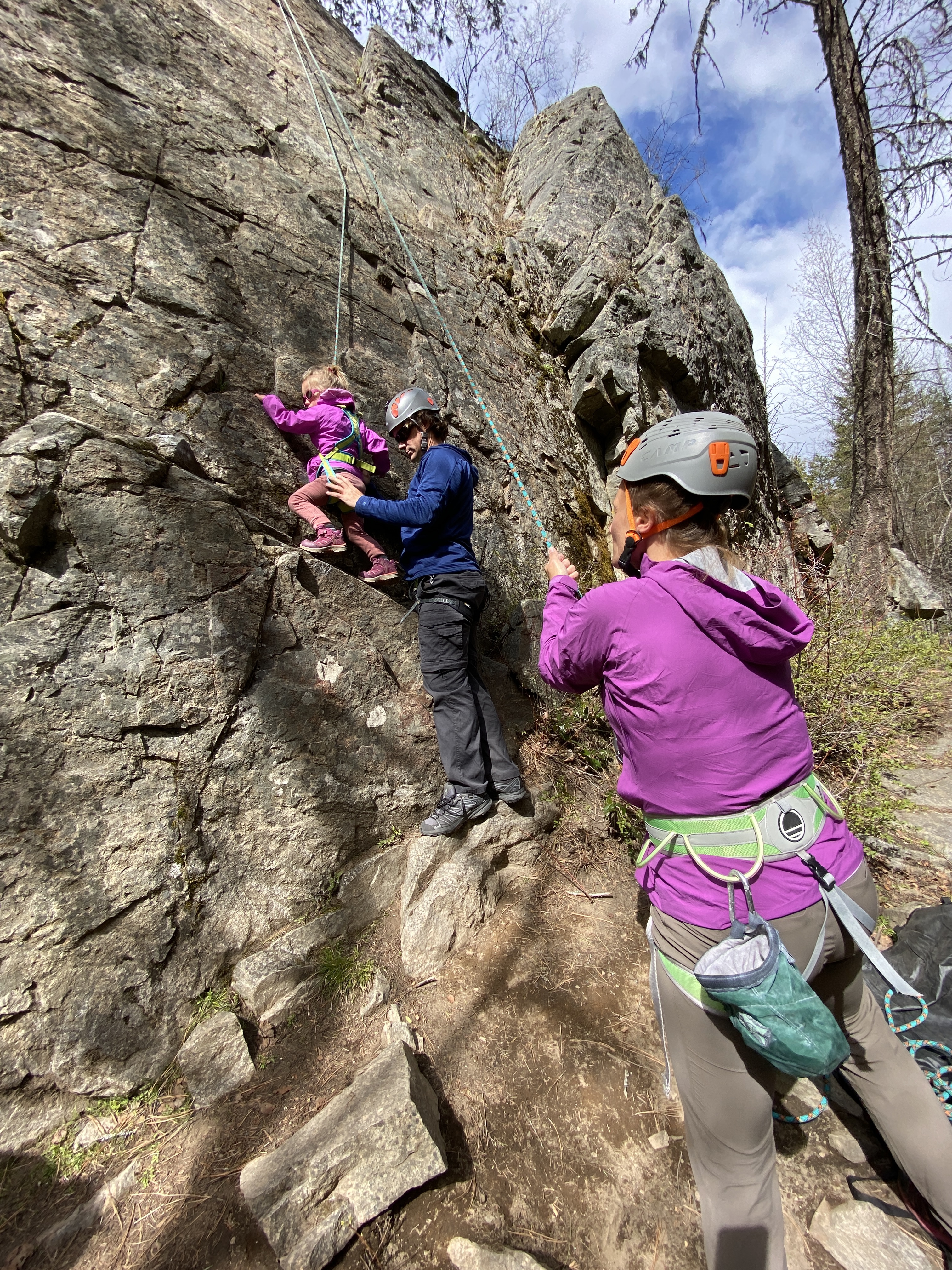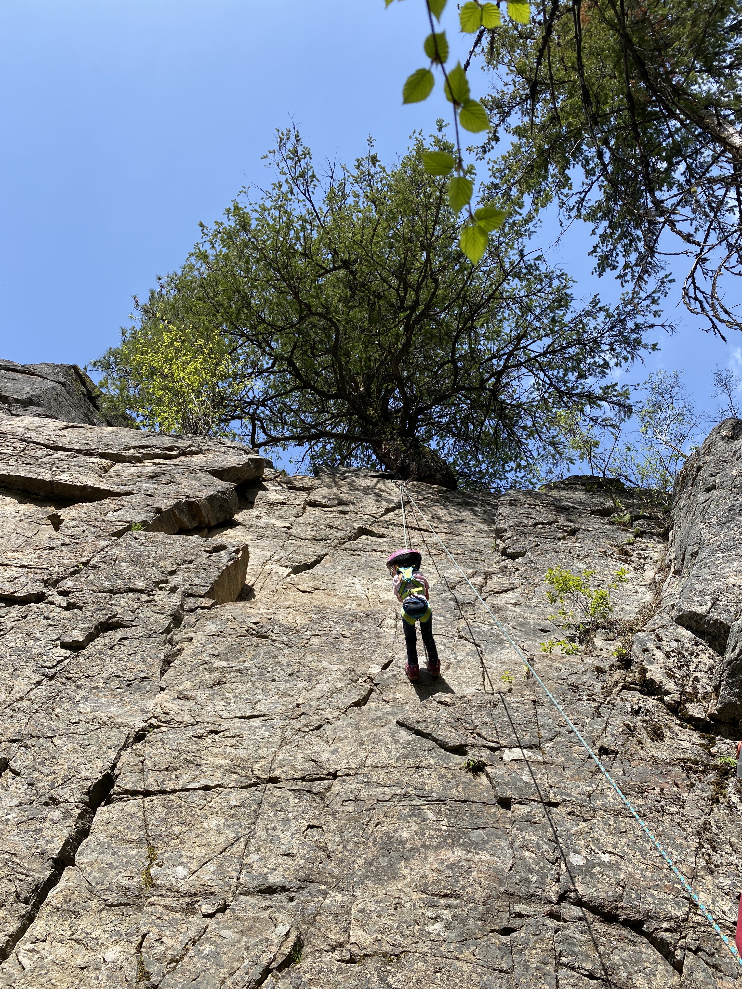 They climbed enough to keep the smiles on their faces and truly enjoyed dangling by the rope as we lowered them back down to the ground. By mid afternoon everyone had multiple turns on various routes and were in great spirits. When we tucked the girls into their beds that night they asked when we could go again. Sounds like success to us!