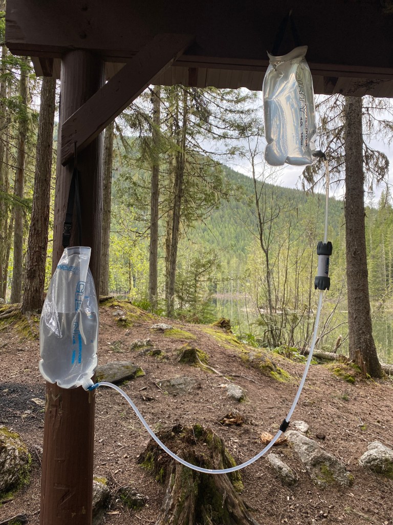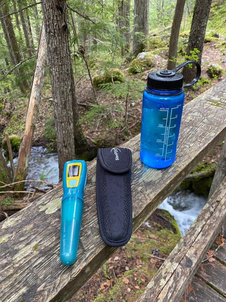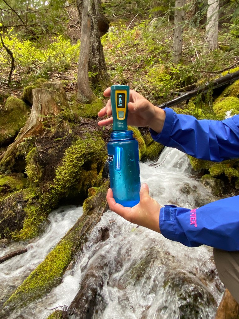 This trail bridges multiple creeks making it easy to carry minimal water. Knowing these trails very well, we traditionally only carry one 500 mL Nalgene bottle for each of us and fill up at each creek crossing using our SteriPen to quickly purify the fresh mountain water.