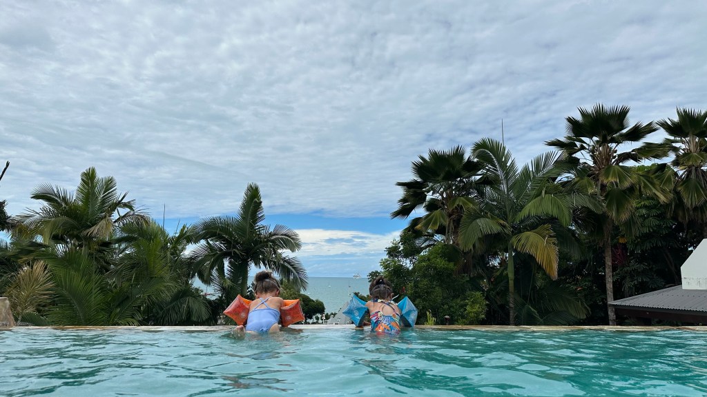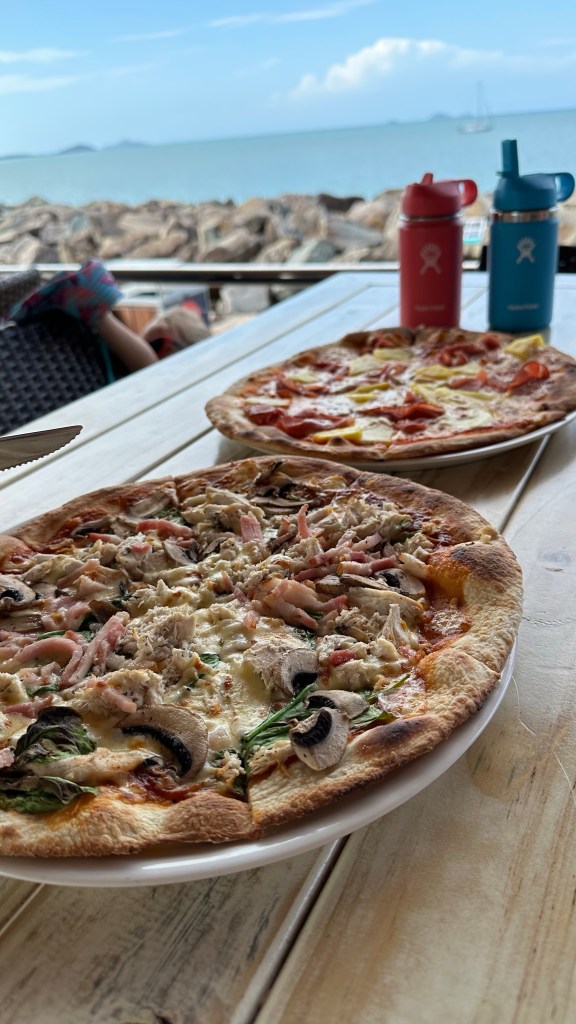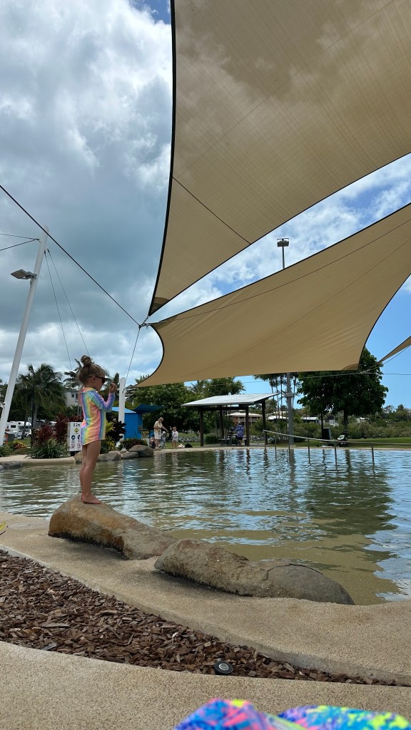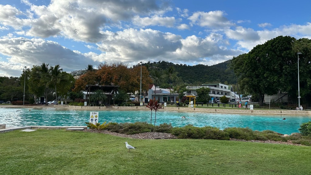 📍 The beach – There are two beaches the locals use that are equipped with floating bumpers with weighted nets to keep the jellyfish and crocodiles out. Rumour has it the sand has been trucked in too making it a beautiful beach to relax and enjoy. The actual Airlie Beach is mainly a mud flat when the tide is out and lined with mangroves. Multiple bottles of vinegar are on site just in case you should come in contact with one of these unwanted stingers.