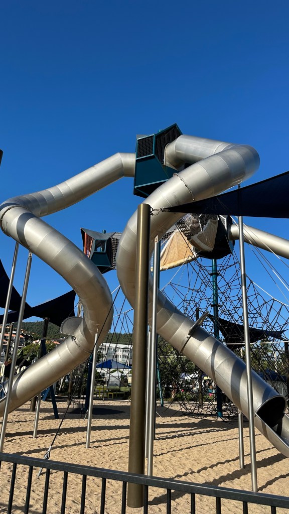 📍Playgrounds – Along the waterfront adjacent to the walking path you will come across multiple play grounds. These extend from simple swings and climbing features to an astounding 5m heigh rope ladder with multiple enclosed tubes. Everyone of all ages will find some sort of entertainment in these parks. There are even a few placed next to some of the pubs and restaurants so us adults can relax with a cool refreshing drink while the littles burn off some energy.