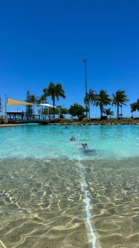 📍The lagoon – This is a beautiful pool fully equipped with lane swimming, kids section, shaded areas and lifeguards on duty. It has gradual entrance acting like a true beach feel surrounded by amazing green grass. There is even sand surrounding one of the edges. This really is the perfect spot to hang out day in and day out to beat the heat. The shallow kids pool has full shade cover to keep the sun off. Showers, change rooms and toilets are right there too.