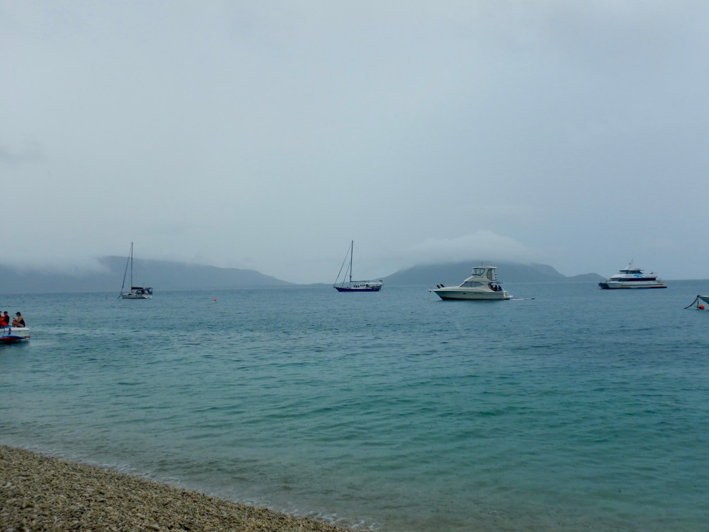 We then chose to stay anchored for a second night at Fitzroy Island. The rain continued on and on so we took the opportunity to collect rainwater to do the dishes.