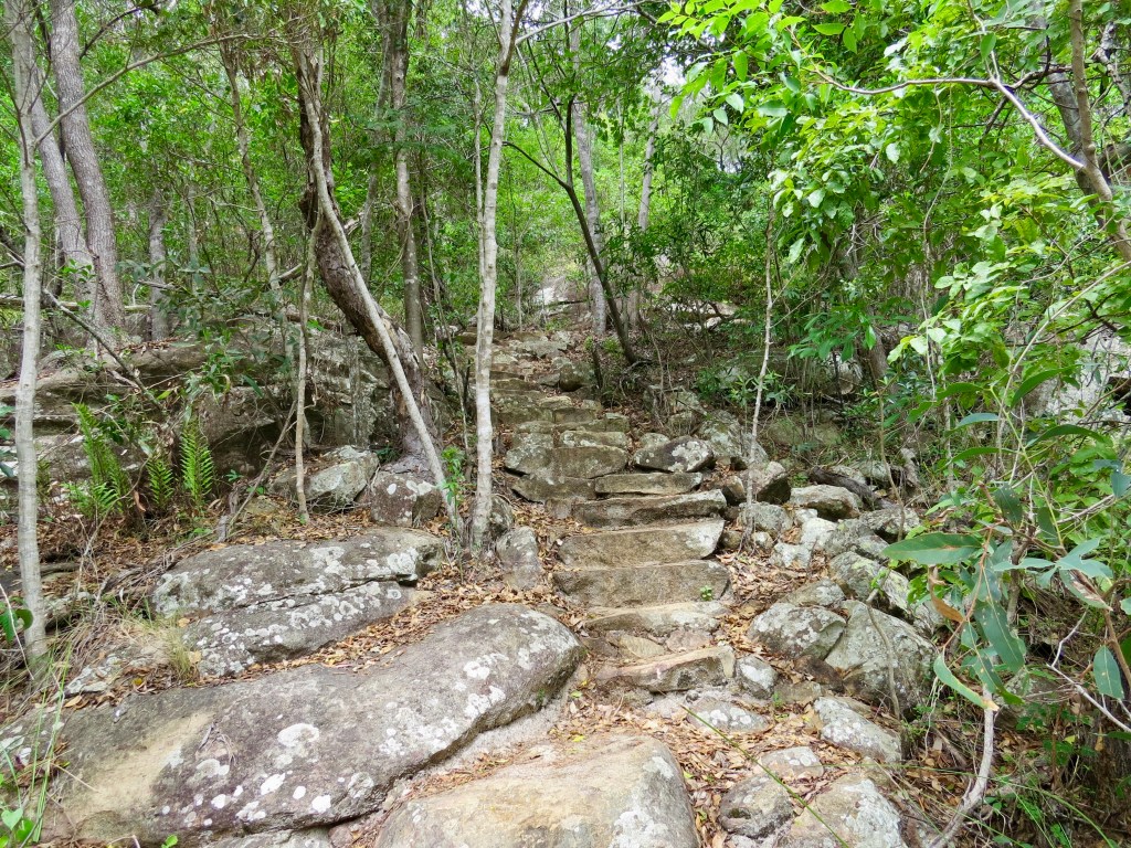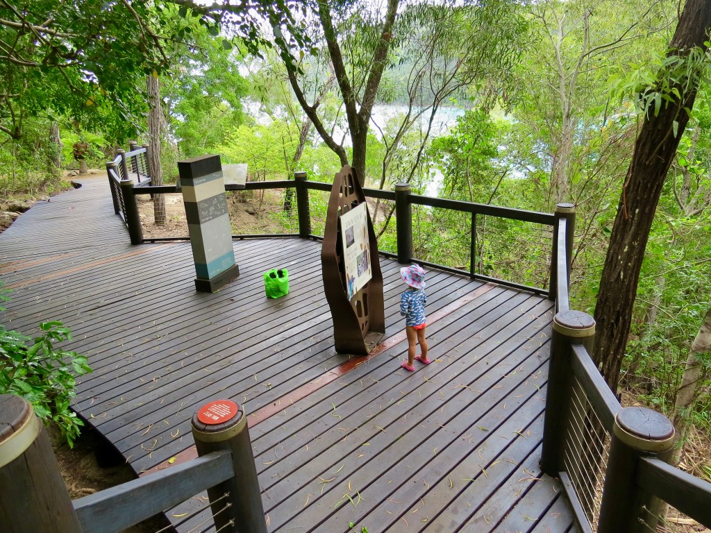 Our family of four ate some lunch then took the dingy to the shore to explore the short Nara Inlet hiking trail to an ancient shallow cave where we saw aboriginal cave paintings on its walls. The short 170 m trail took us through tropical jungle with lizards, birds and viewpoints over the inlet. We returned down to the waters edge to search for shells and walk the short beach for anything that caught our eye. Returning to the boat, we relaxed and went for a swim before dinner and then called it a night.