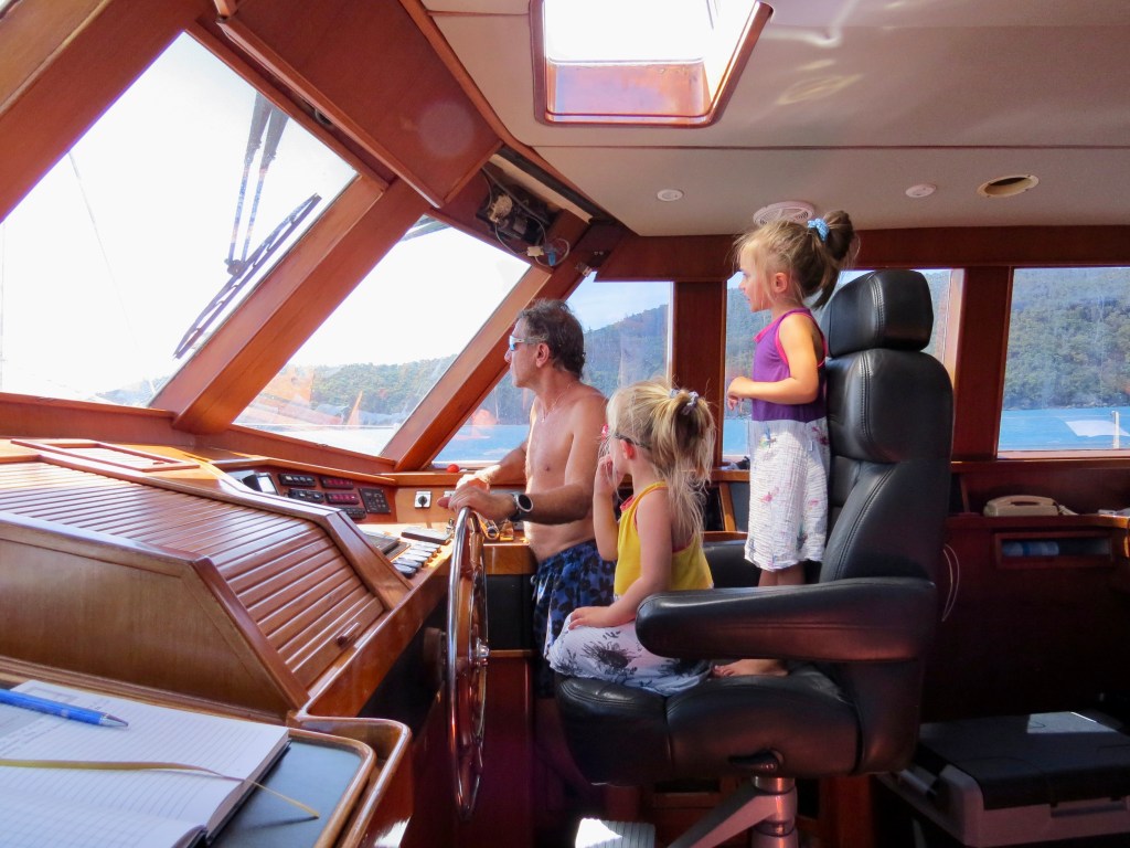 Over the next couple hours the captain was below deck trying his best to get the motor back on line. Fuel filters changed, fuel polished and still we could not get the motor to run for more than 5 minutes. Mother nature was helping us out now shining down on the solar panels and slowly bringing the boat back to life. Other boat members were moving food around and shutting down non essential components to conserve as much as we could. The ocean was calm and the winds were equally peaceful. Hours crawled by where it seemed like we were moving faster with the currents and tides than with the wind. The girls however had no indication that our situation was unplanned or not desirable. They continued on with their smiling faces, taking time throughout the day to colour, laugh, draw and practice their home schooling books with numbers and letters.