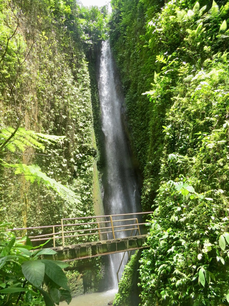 After jostling around the winding interior Bali roads we made it to our next stop at Krisik Waterfalls. This one, although still quiet was set up a little better for public access. We made the gradual 150 m descent down into the river bottom and took a short stroll through the water. The canyon walls were polished from the moving water over the centuries and a recent mud slide had eroded down a section of bamboo forest to my left. Circling the corner and over a rustic makeshift wooden bridge we were presented with the pristine falls from a second creek joining the river. For the adventurous few, you could explore further down the river through the dark and narrowing canyon walls into the unknown, but we were told that this was the end of the line for waterfalls.